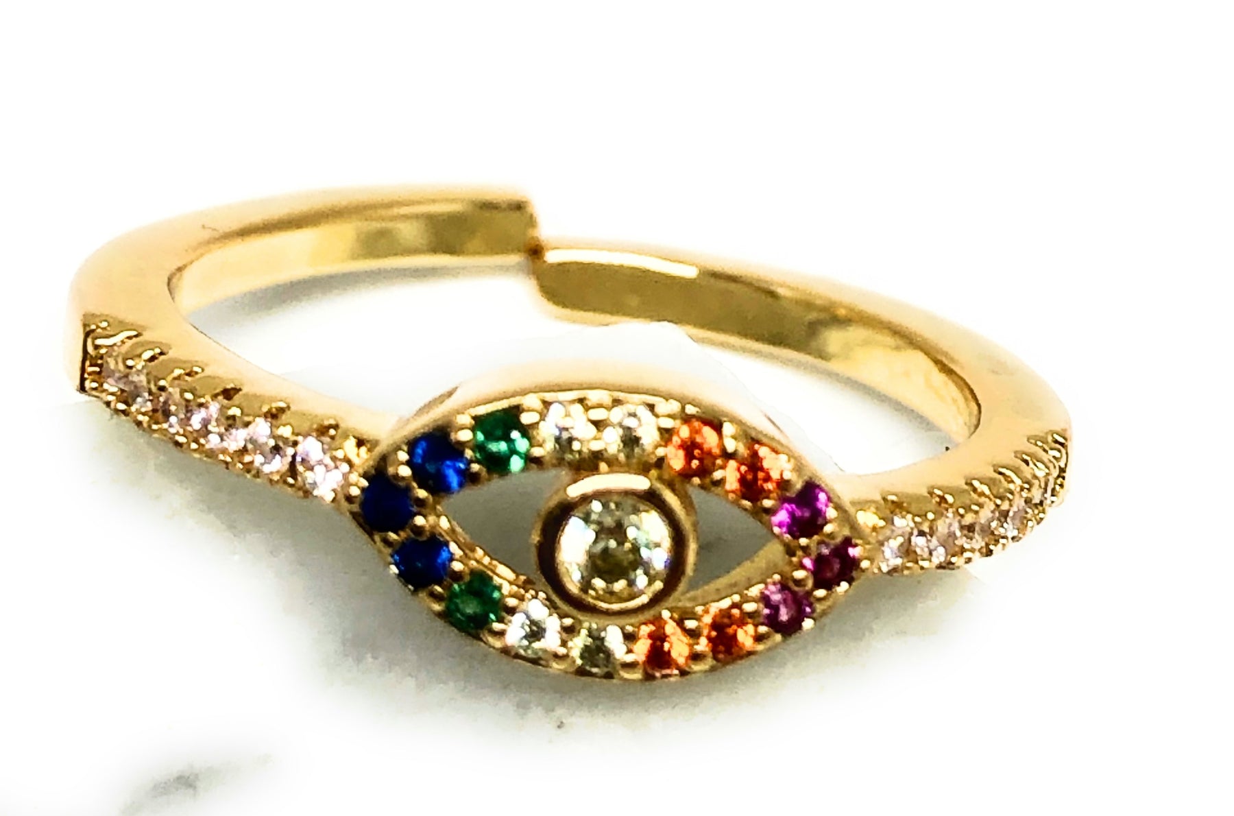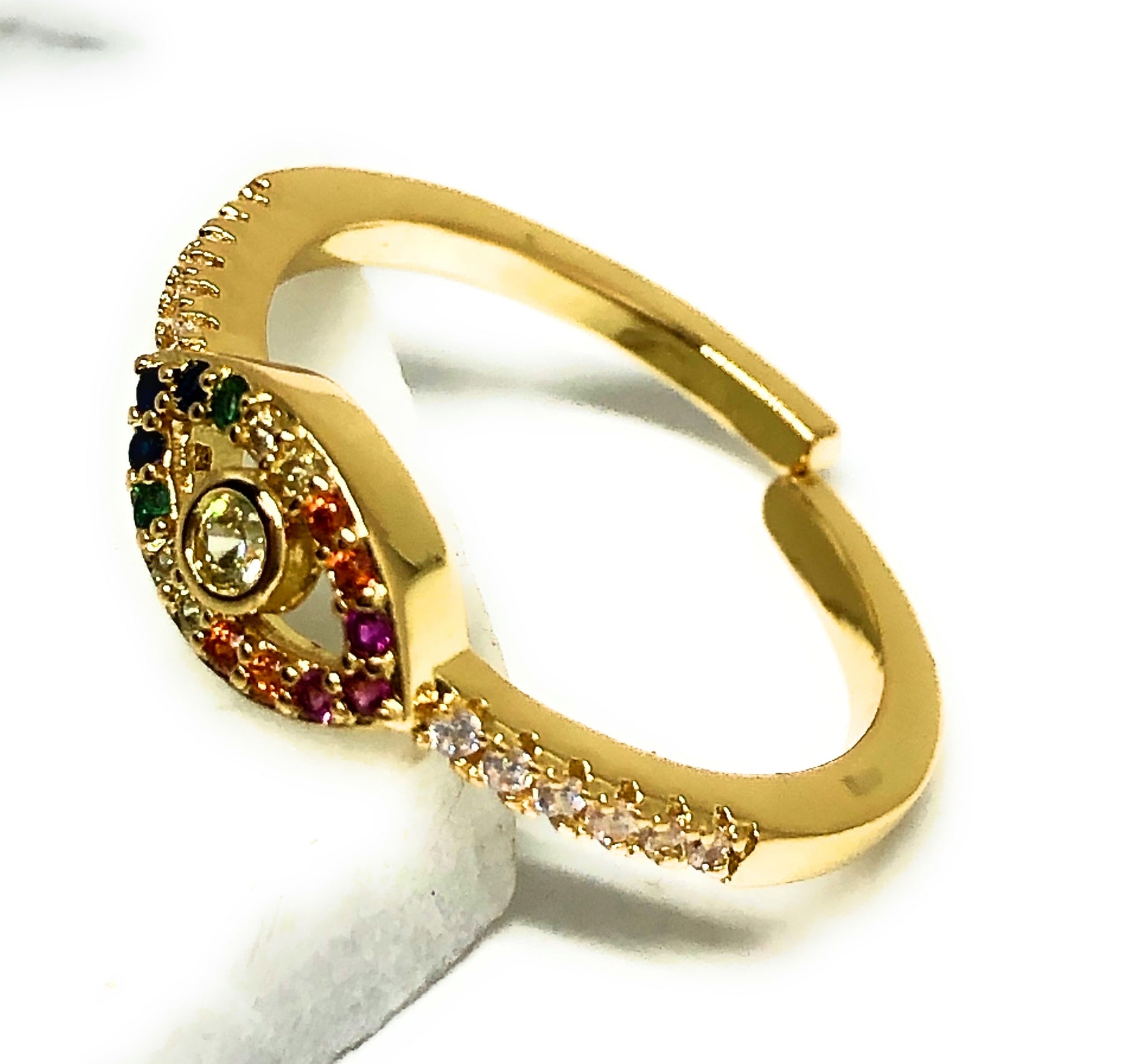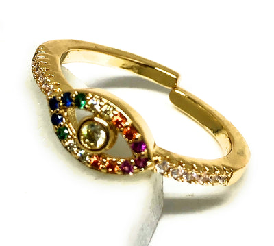 Gold Plated Colorful multi-color Stone Evil Eye Adjustable Ring Anillo