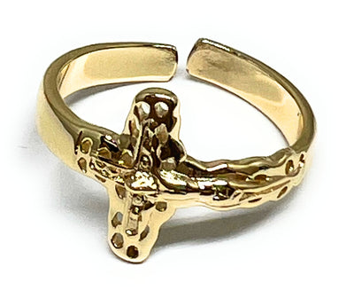 Gold Plated Jesus Crucifix Cross Ring Anillo Adjustable