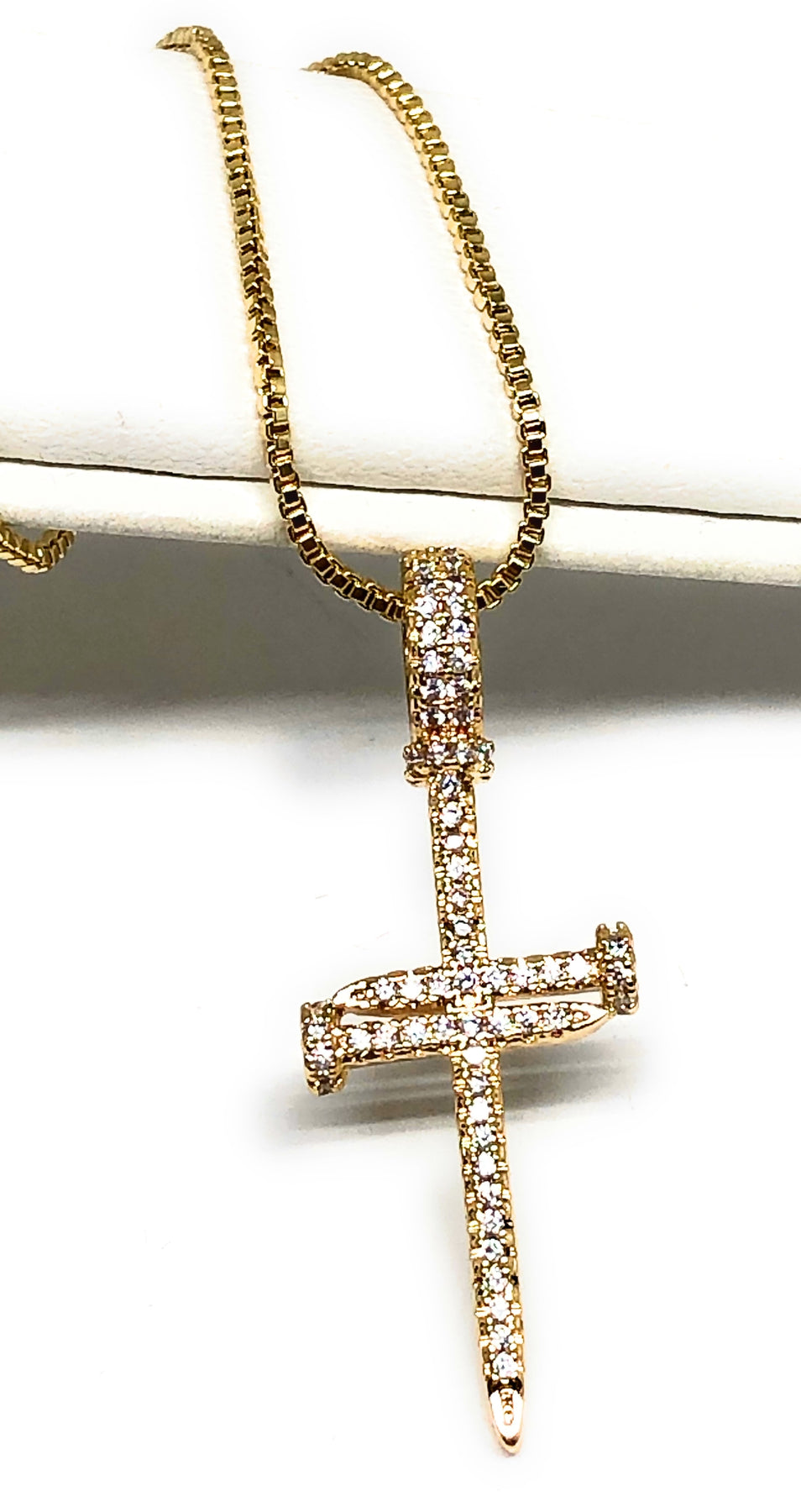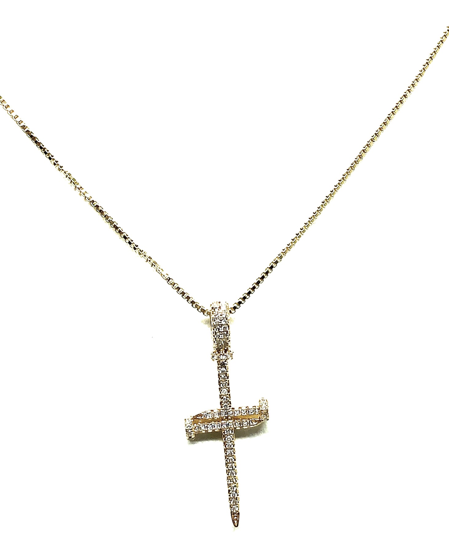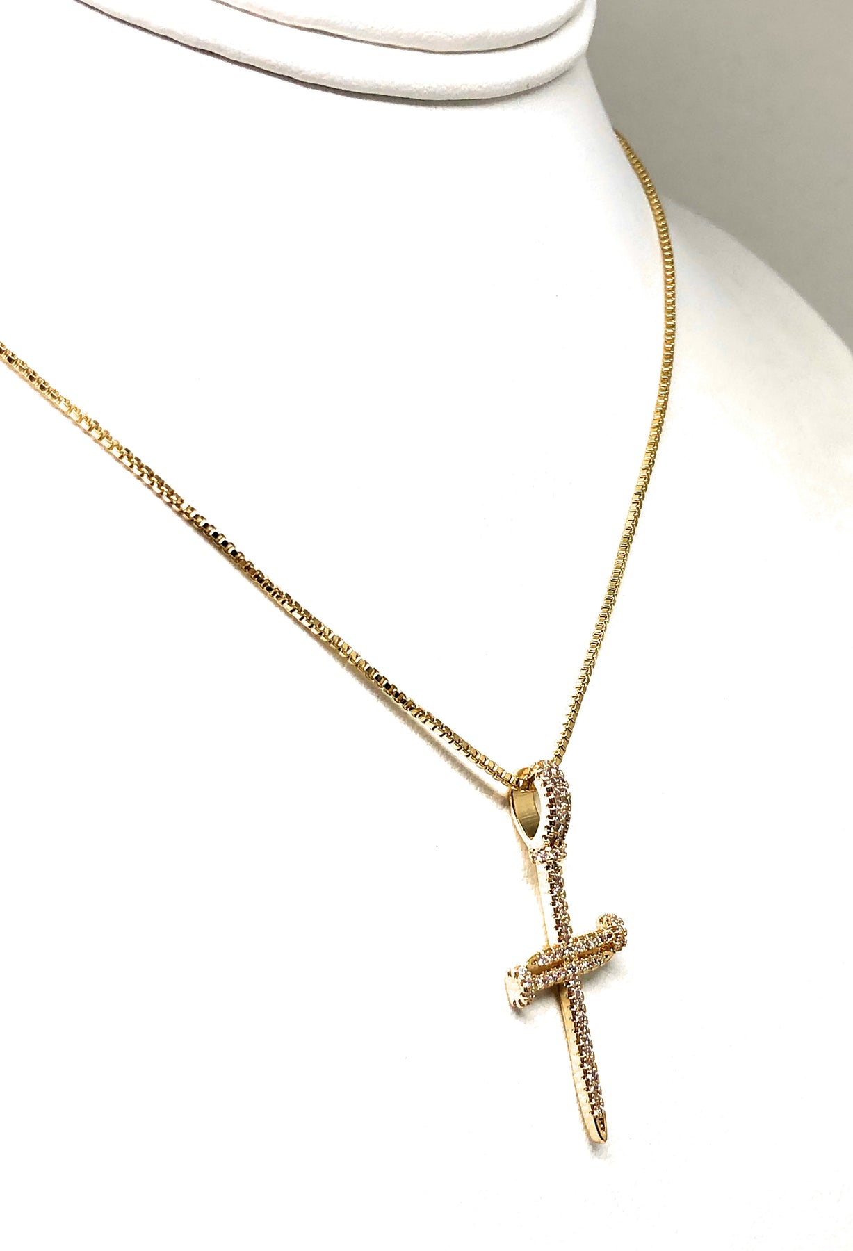 Gold Plated Cubic Zirconia Nail Cross 18” Necklace Cruz