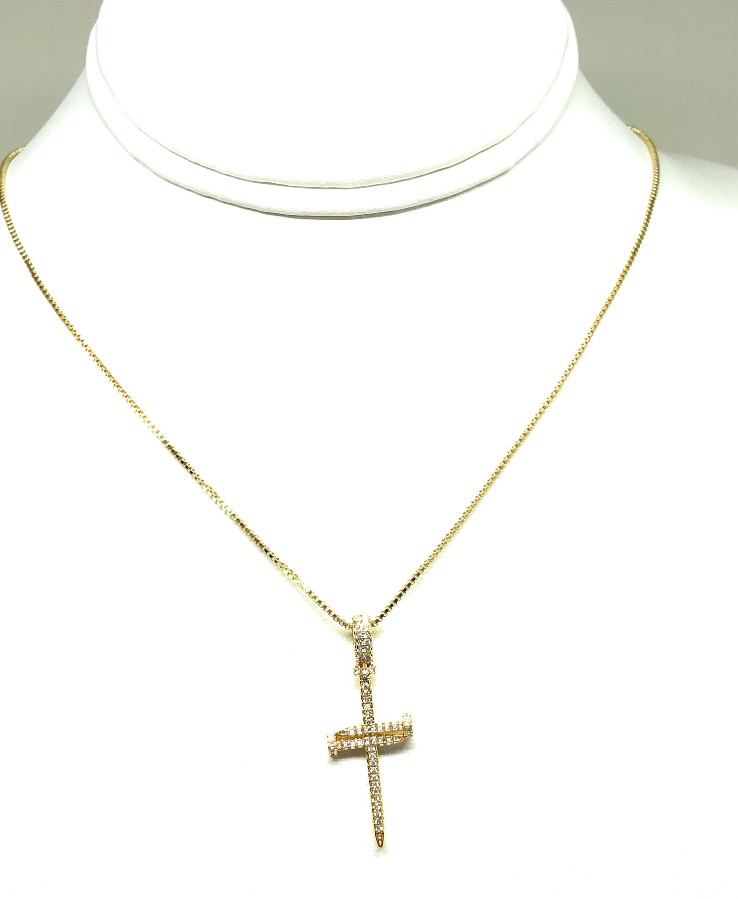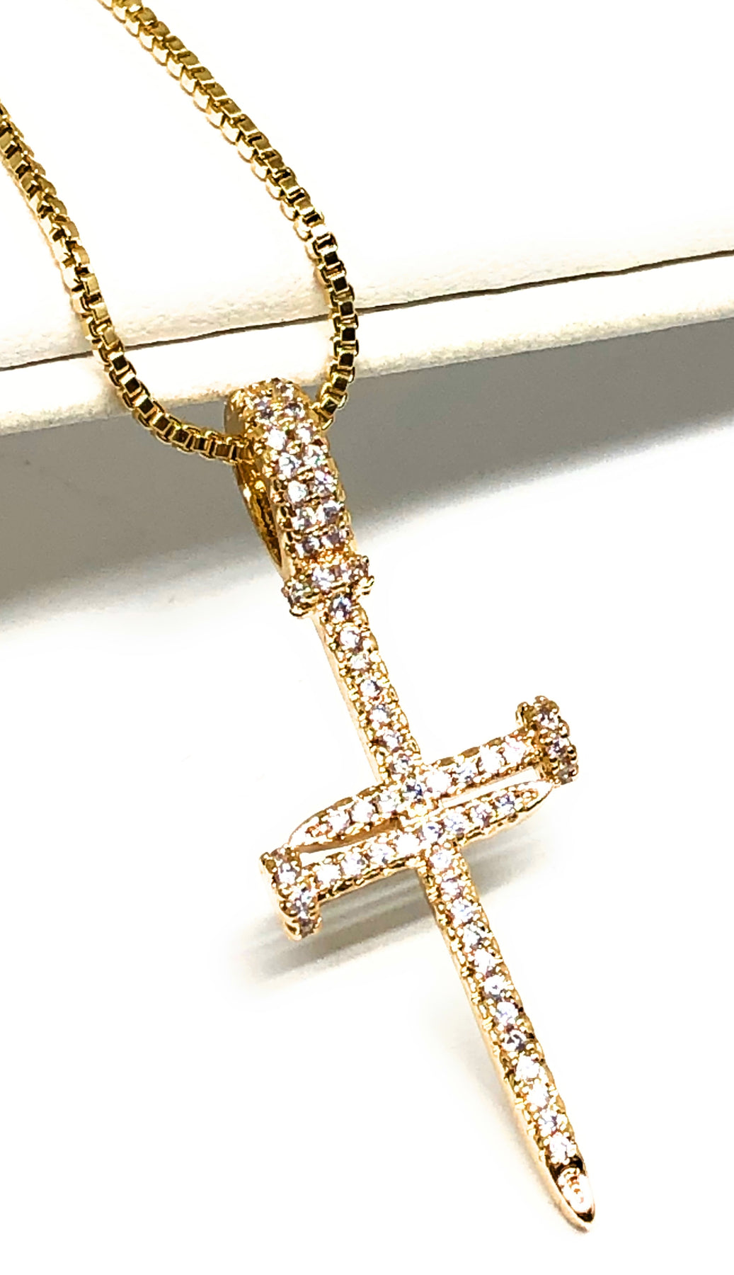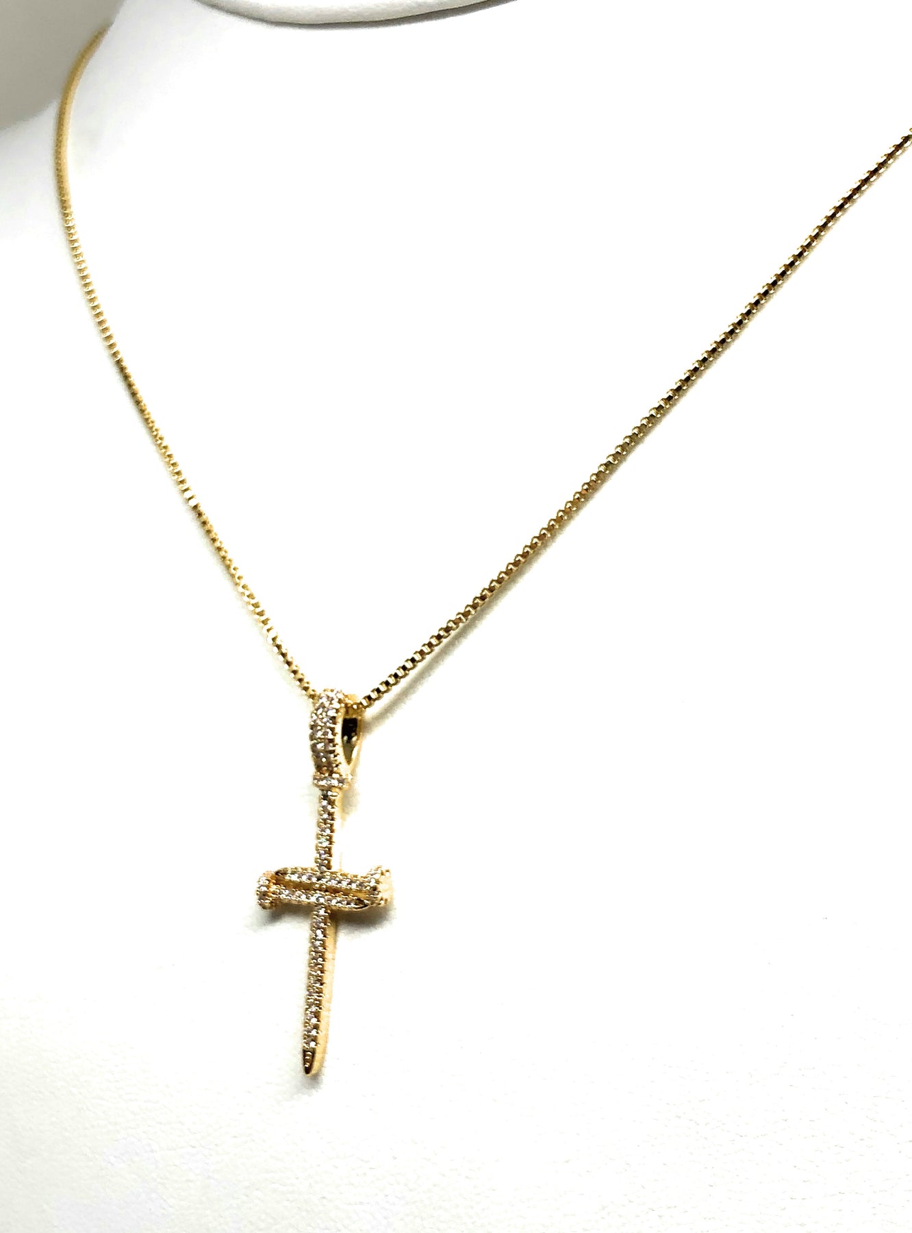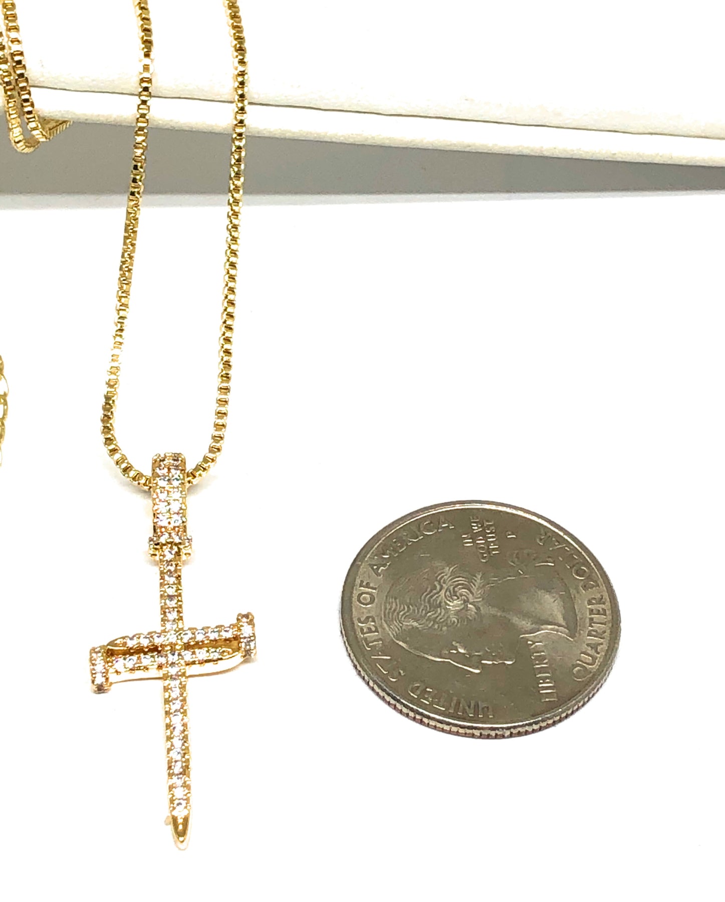 Gold Plated Cubic Zirconia Nail Cross 18” Necklace Cruz
