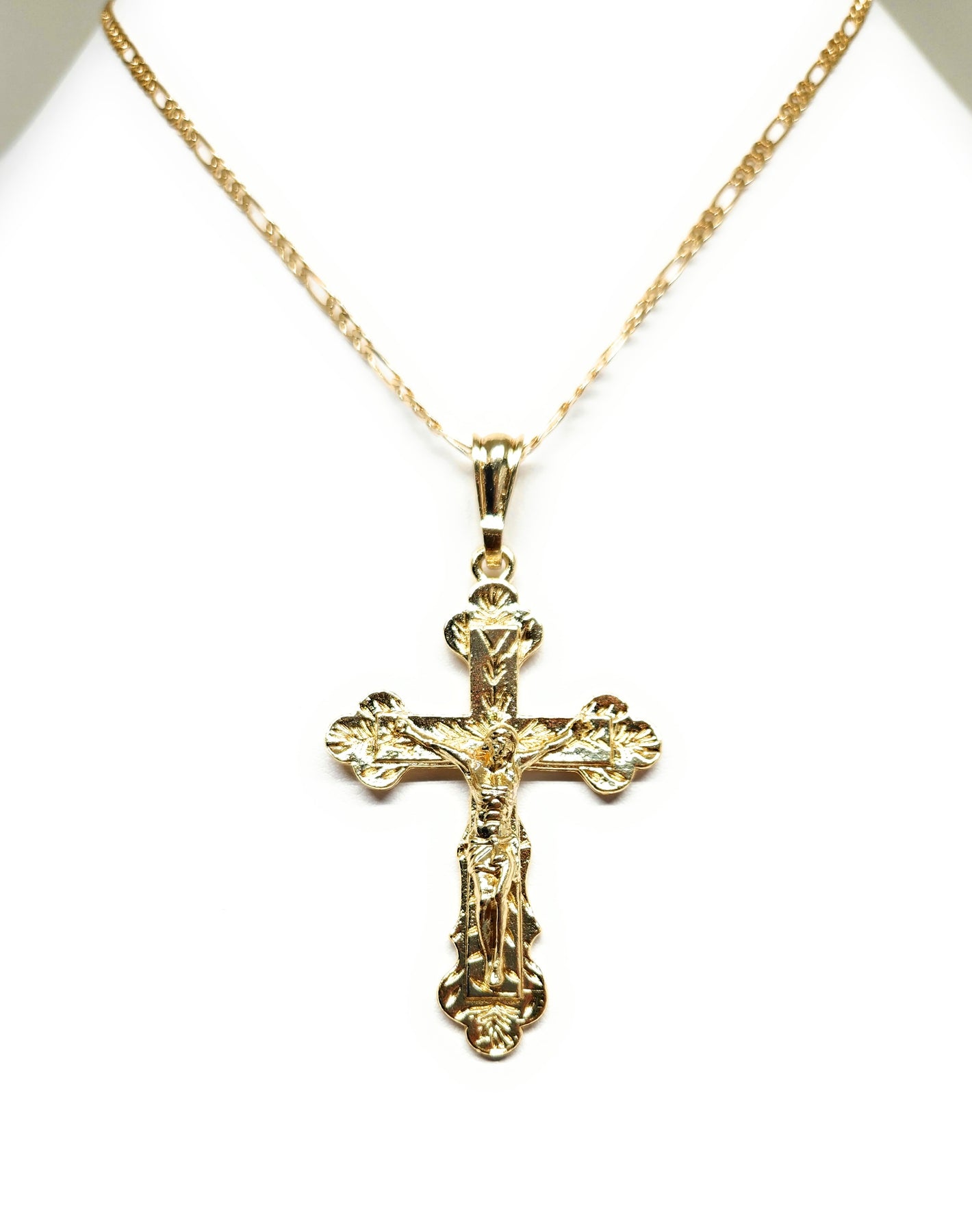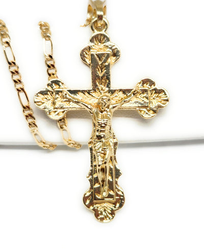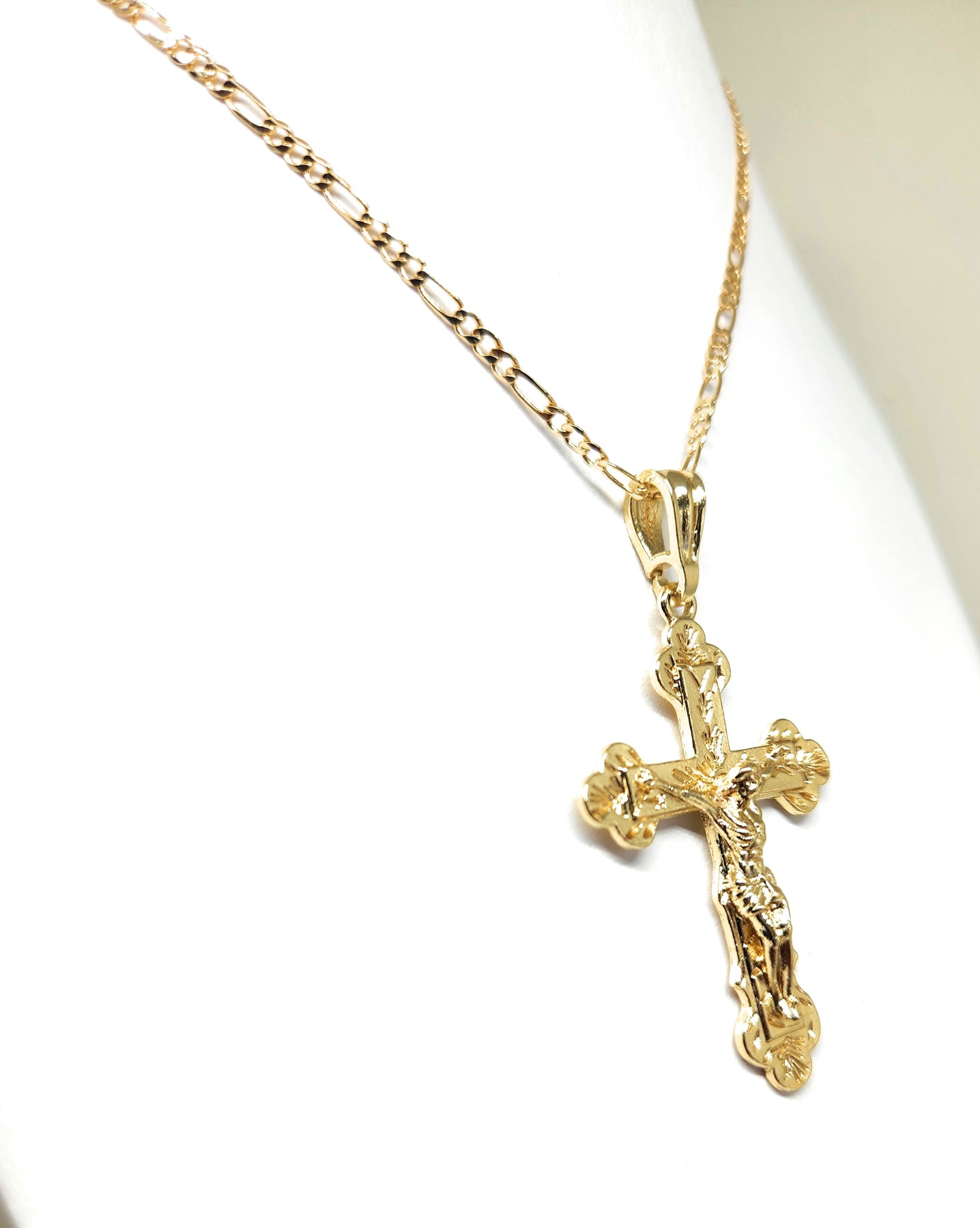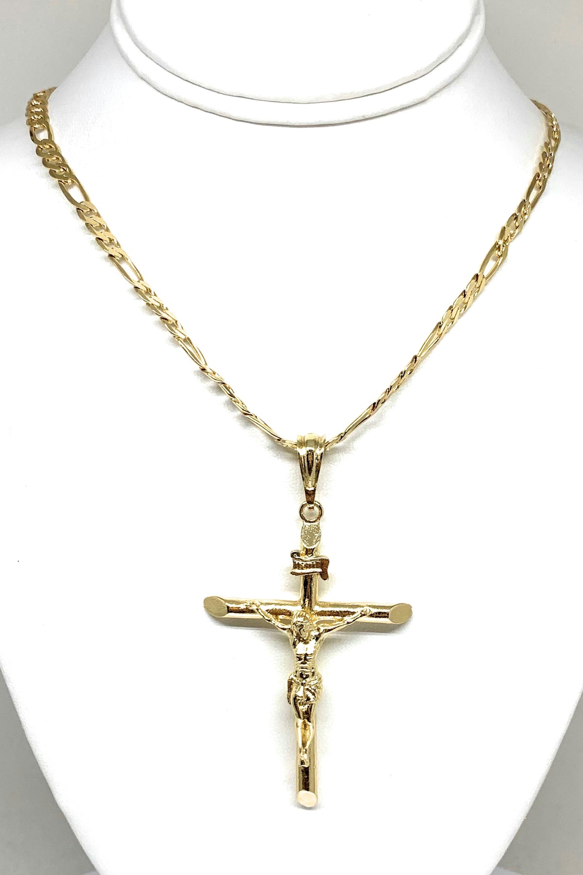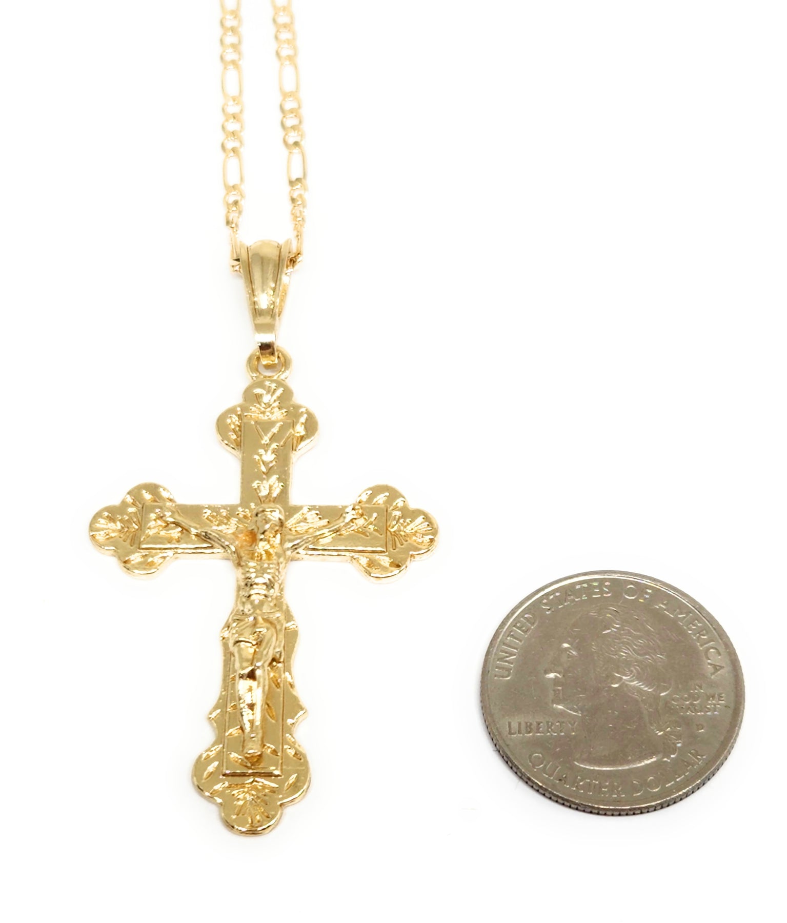 Gold Plated Classic Cross Jesus Crucifix 24" Chain Cruz Crucifijo 24"