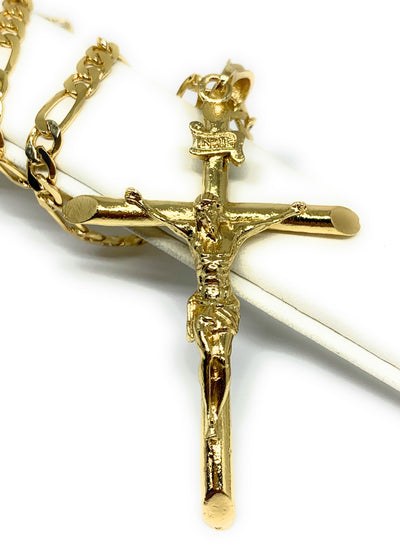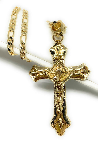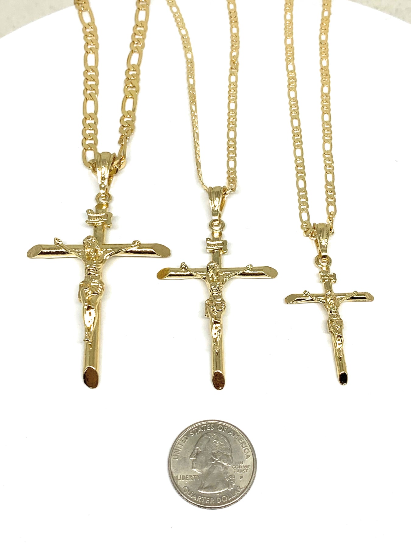 Gold Plated Classic INRI Cross Jesus Crucifix 24" Chain Cruz Crucifijo (SM,MED,LG)