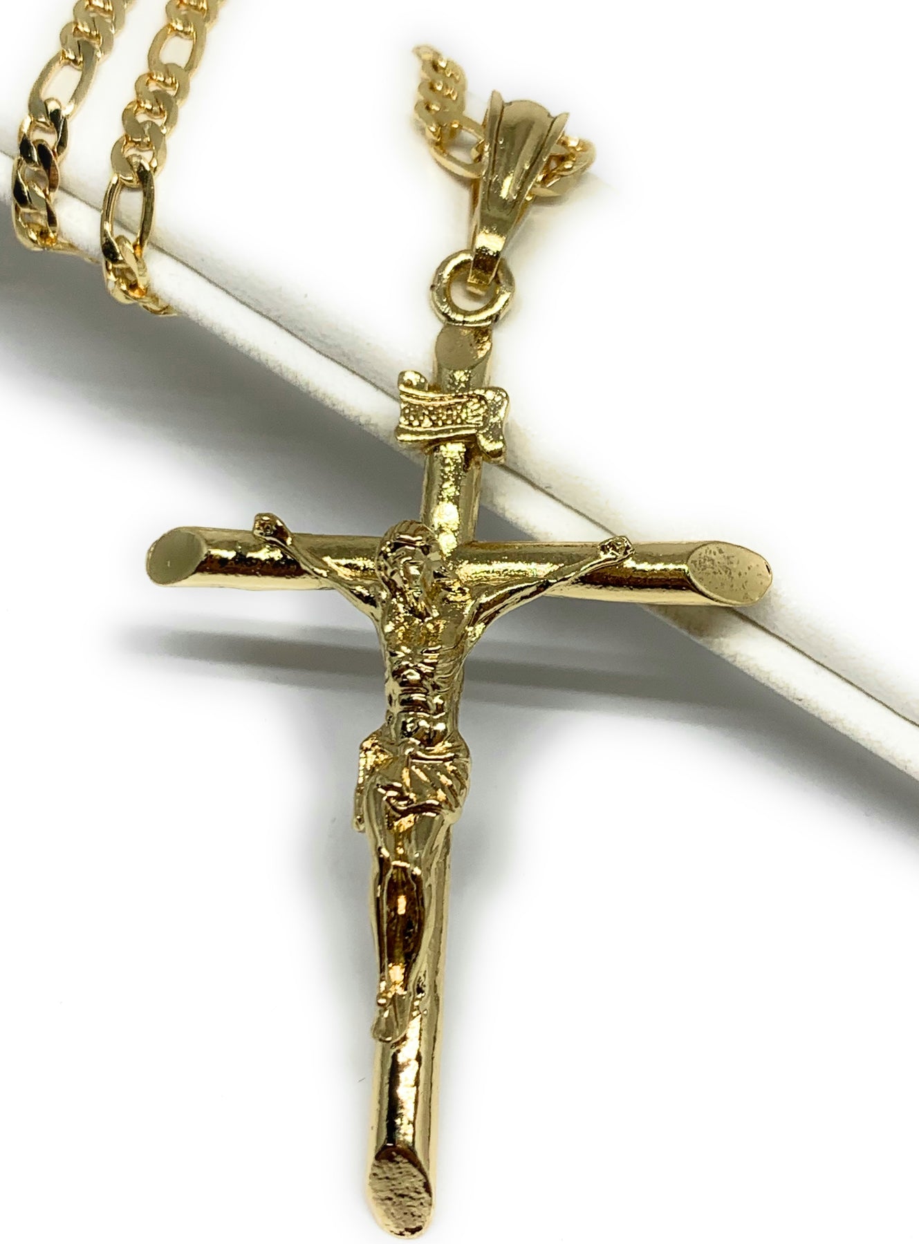 Gold Plated CLASSIC Jesus Cross Crucifix 24” Necklace Cruz Crucifijo