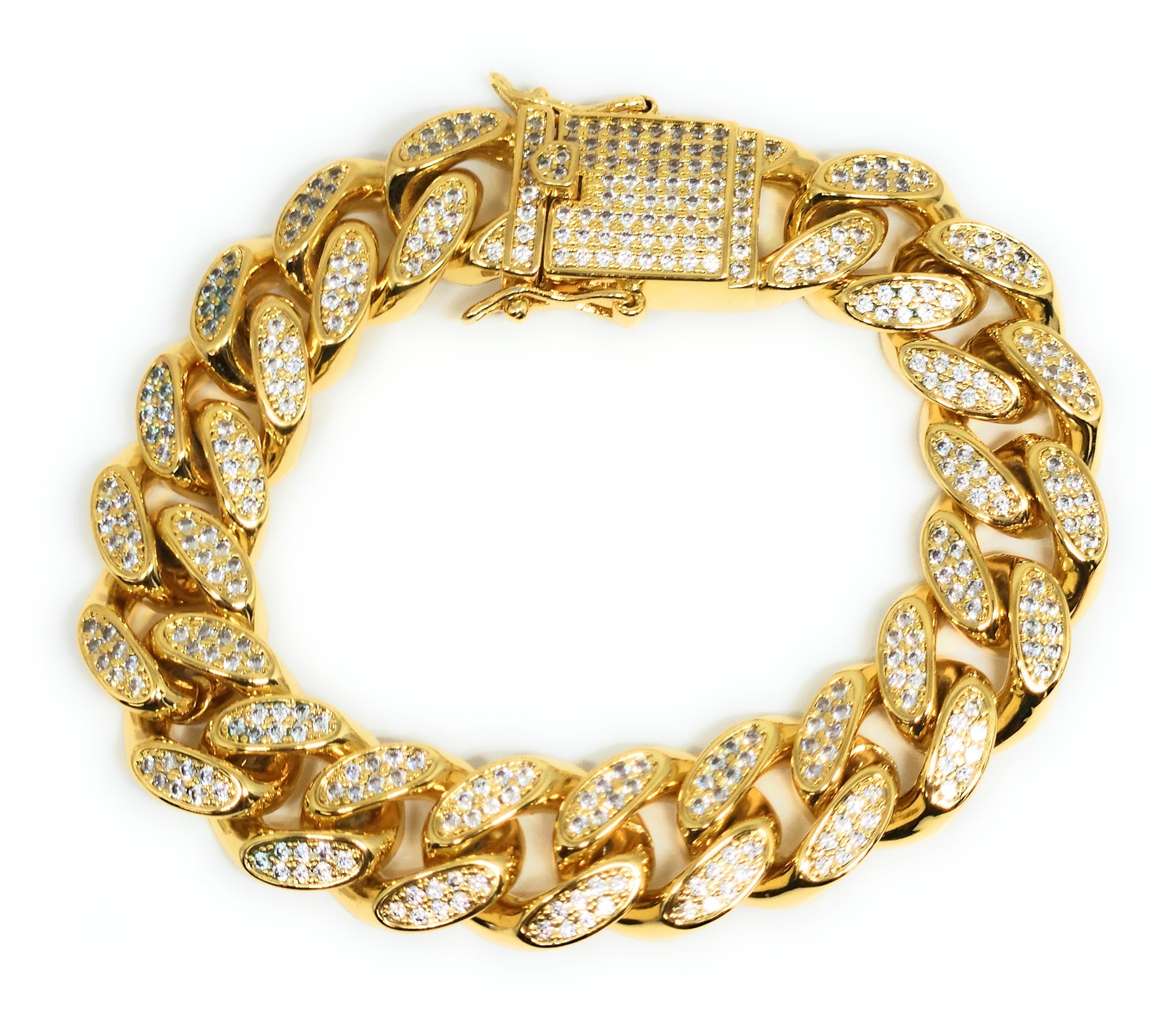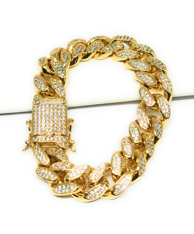 Gold Plated MIAMI CUBAN LINK ICED OUT CZ Bracelet 8-8.5" 15MM Width