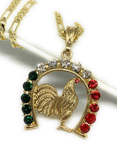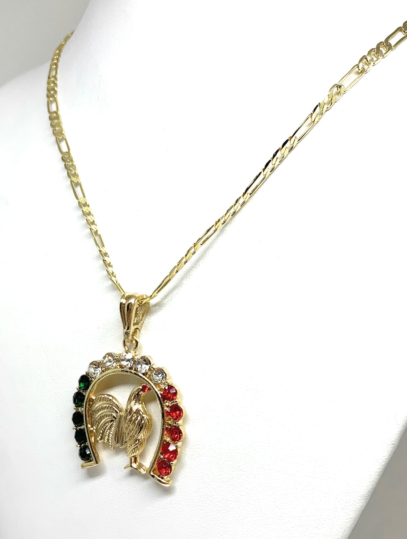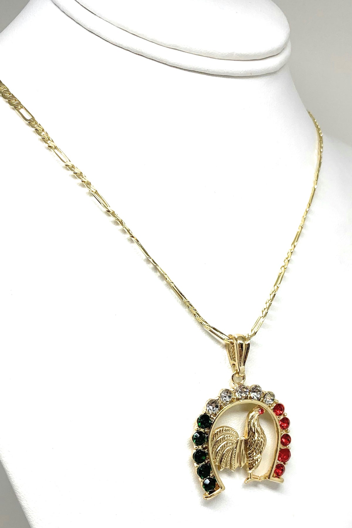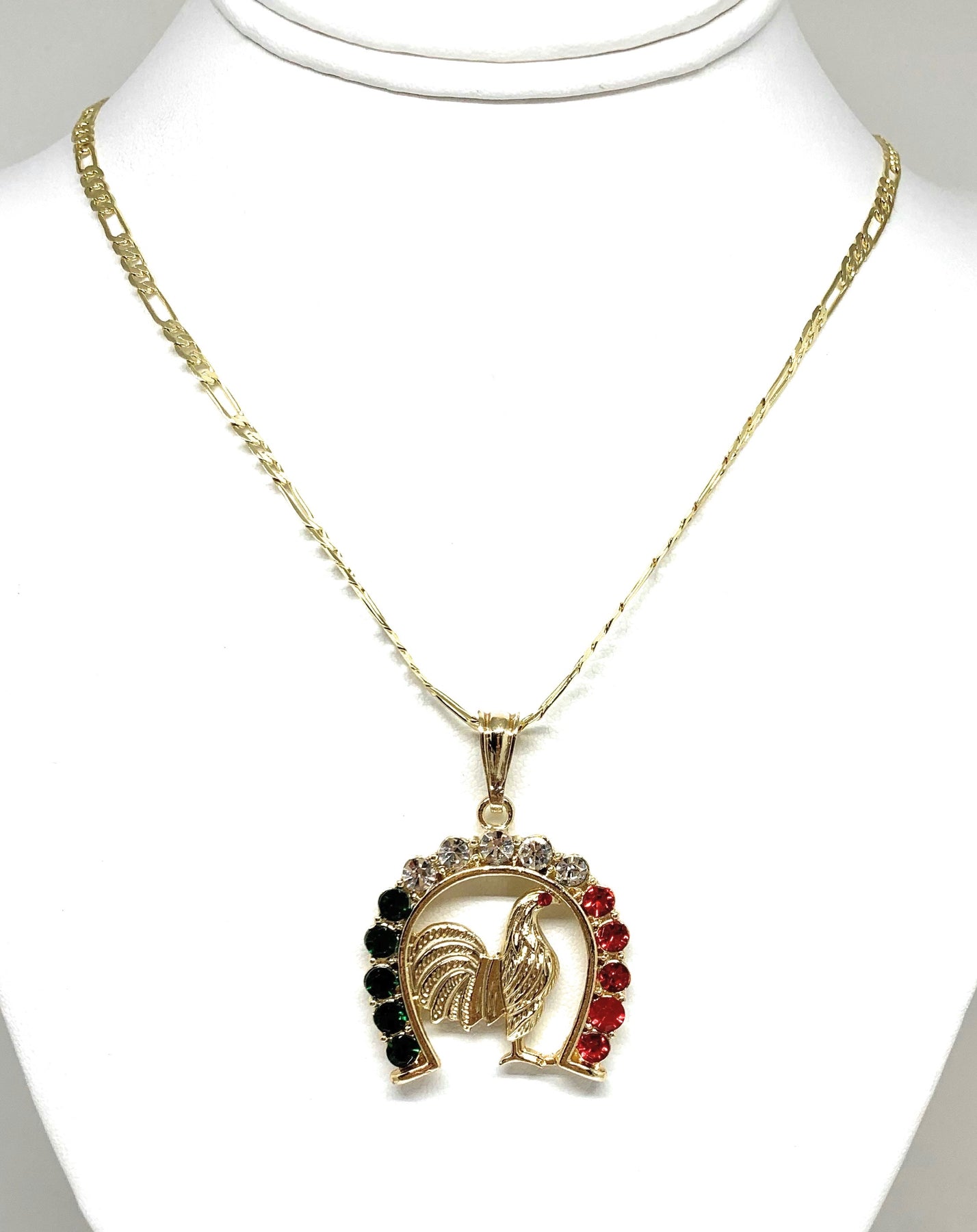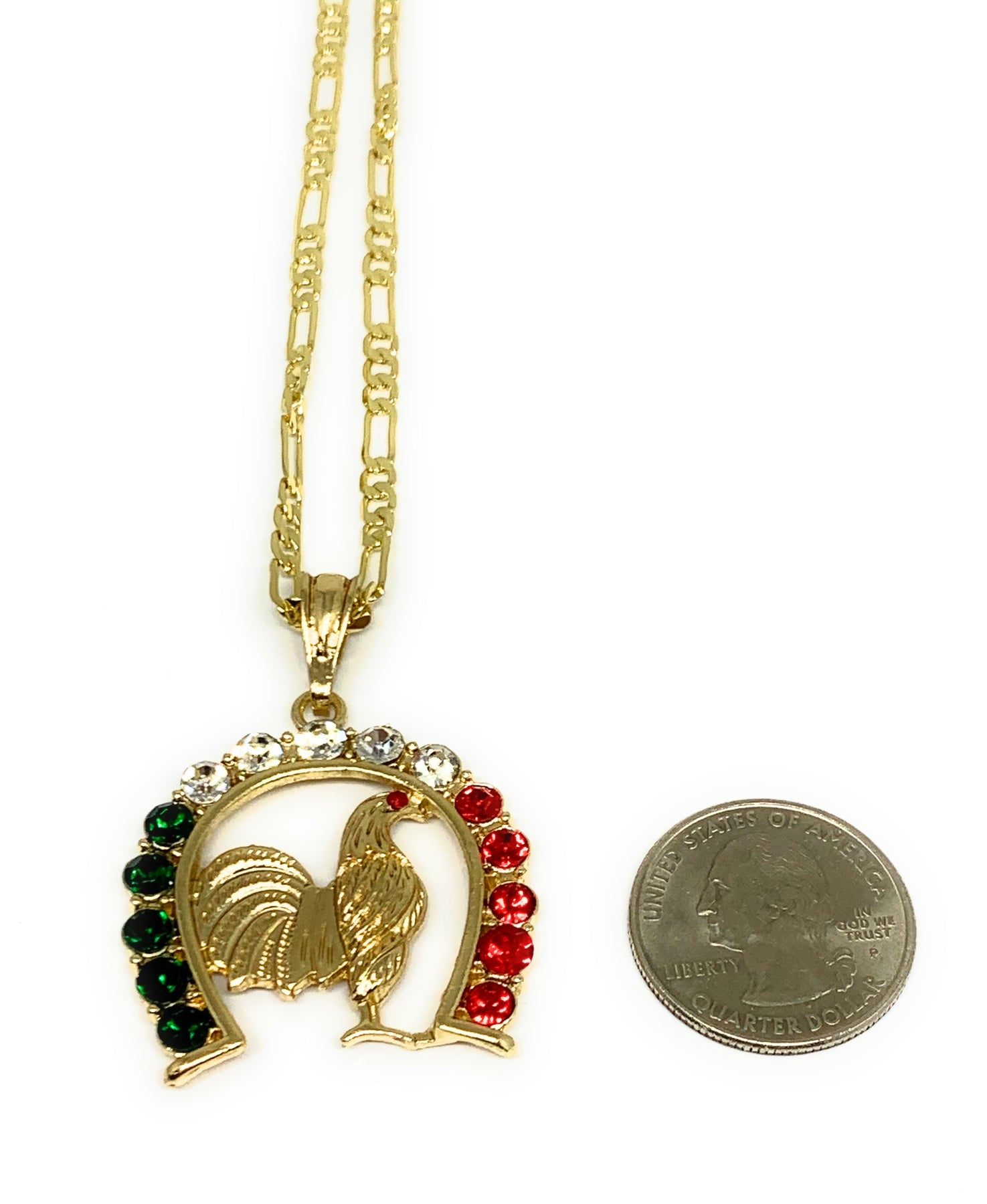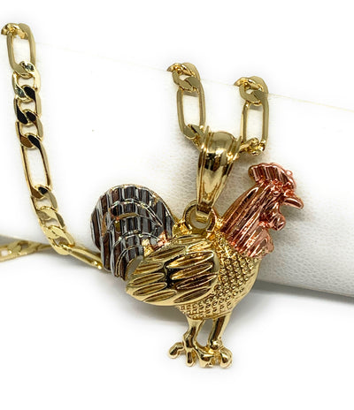 Gold Plated Chicken Rooster Pendant Necklace Figaro 24" 4mm Gallo Medalla Oro Laminado