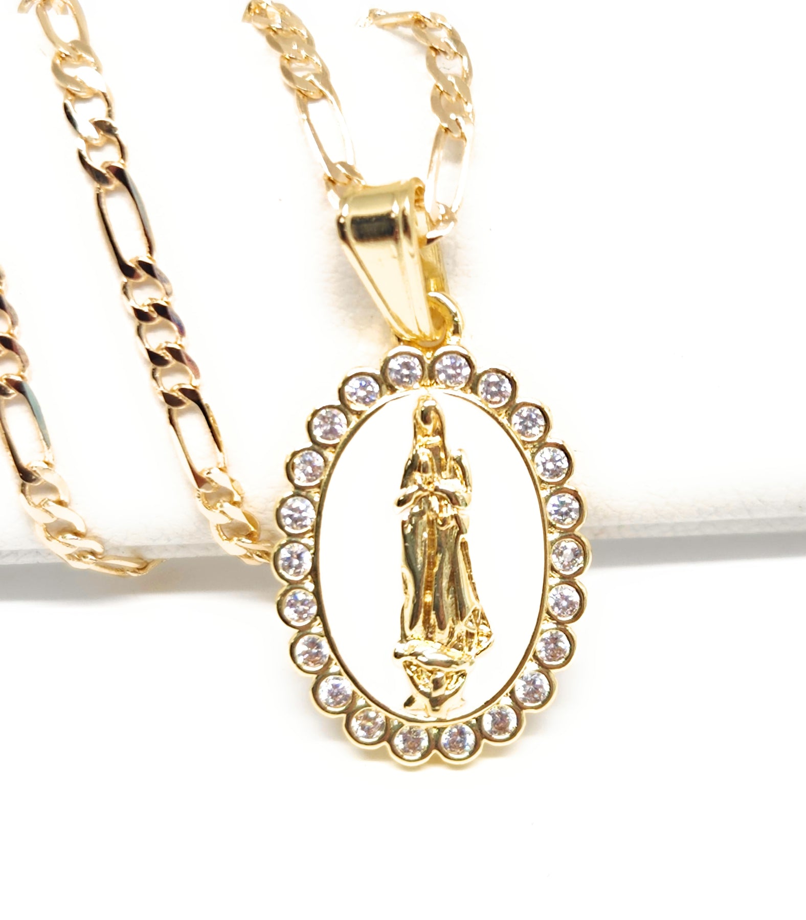 Gold Plated DAINTY Virgin Mary OVAL Pendant Necklace 18" Virgen Guadalupe Medalla