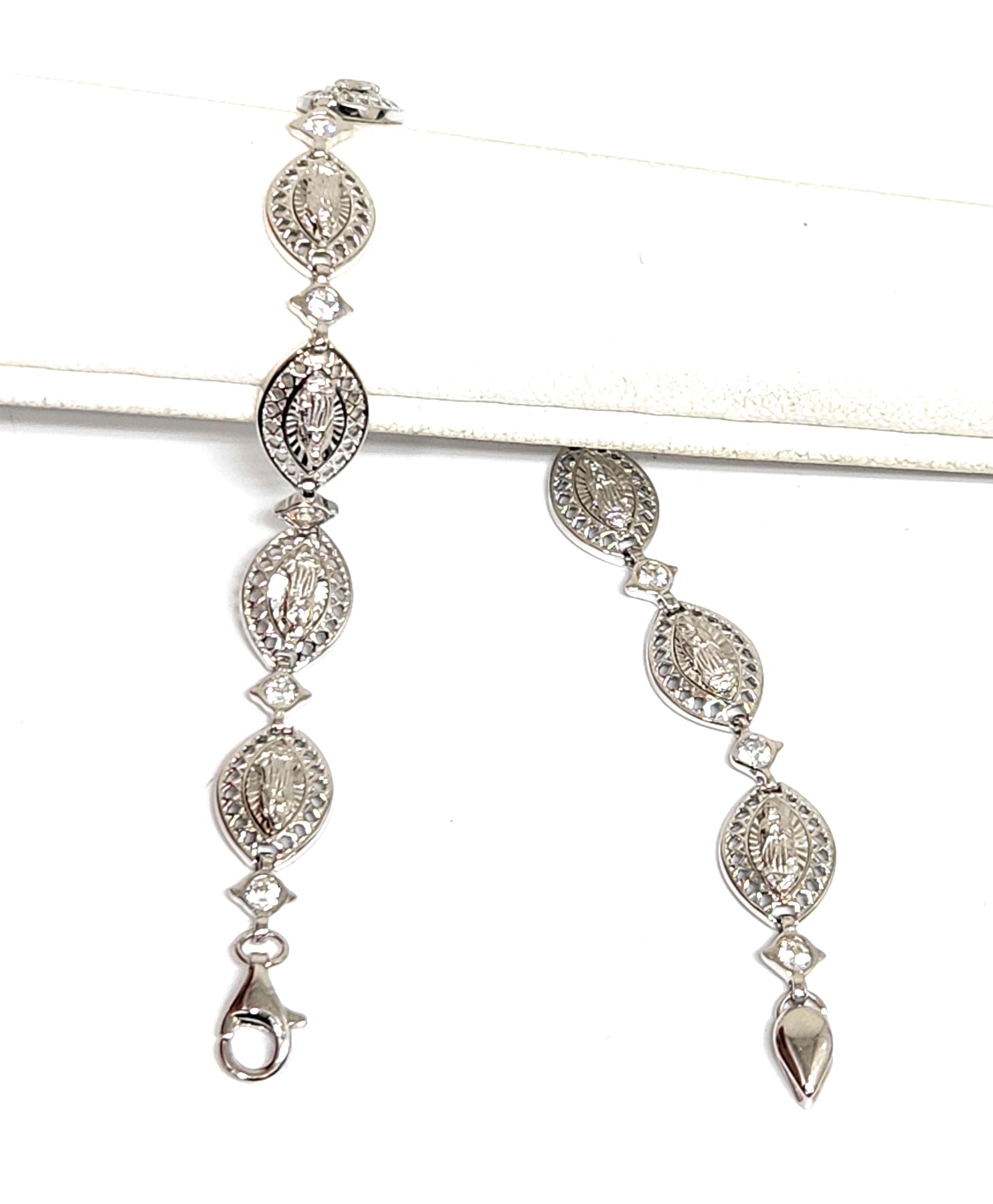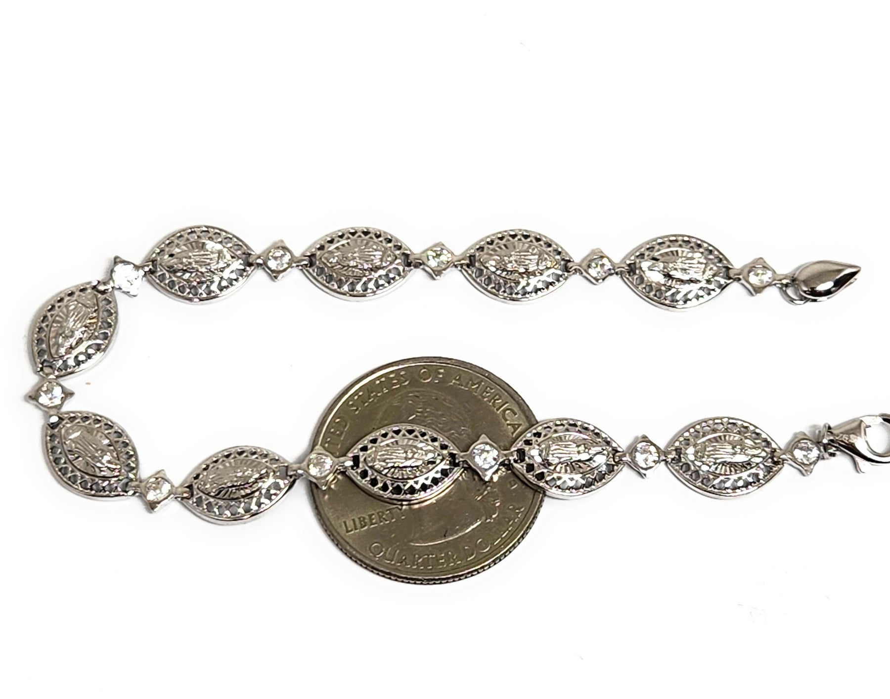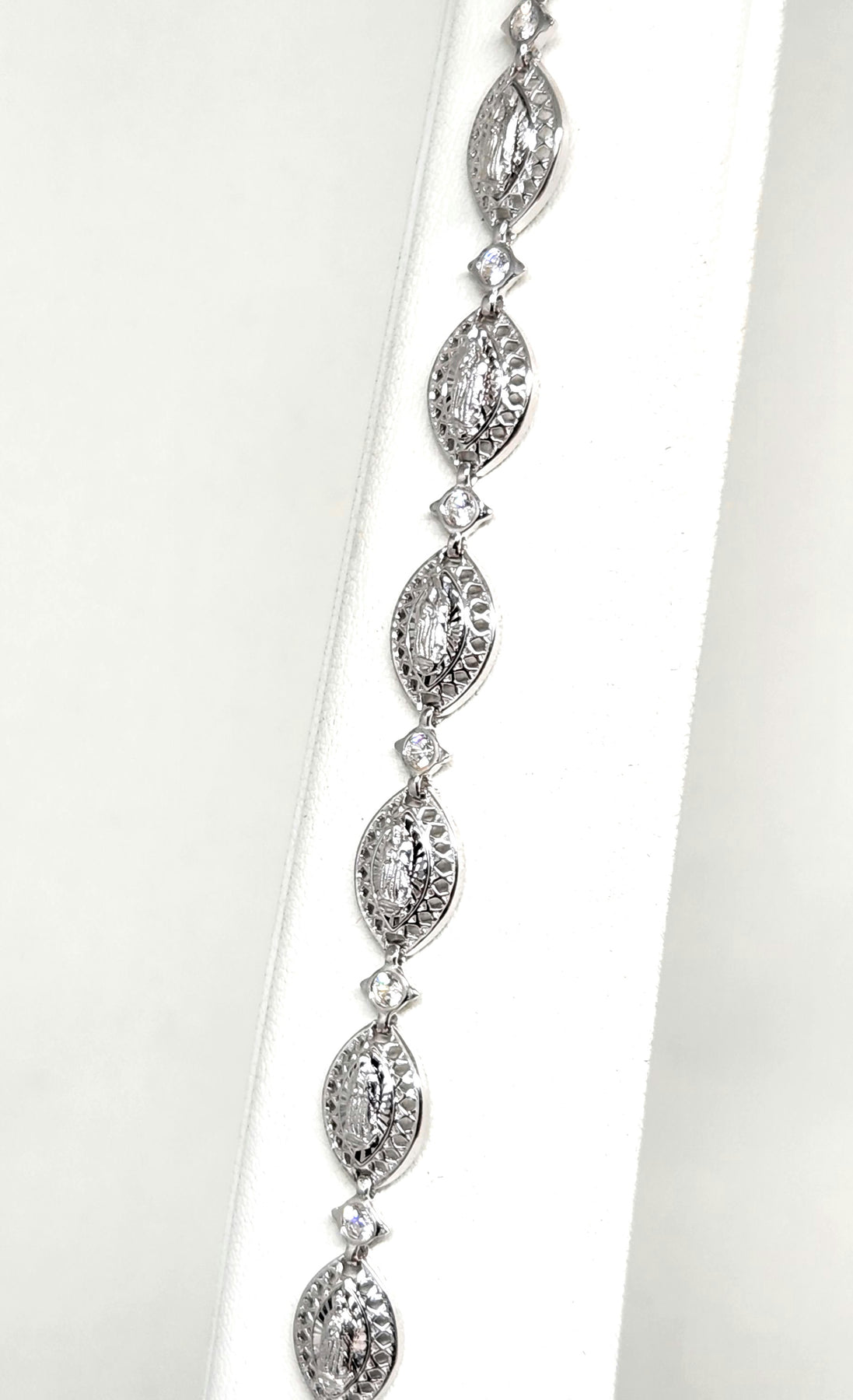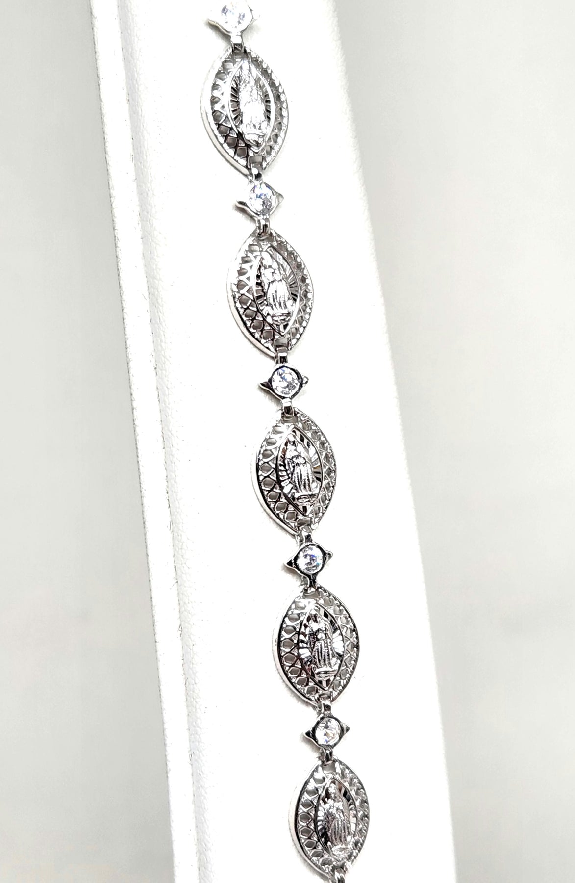 • Silver virgin Mary CZ bracelet is .925 sterling silver guaranteed.