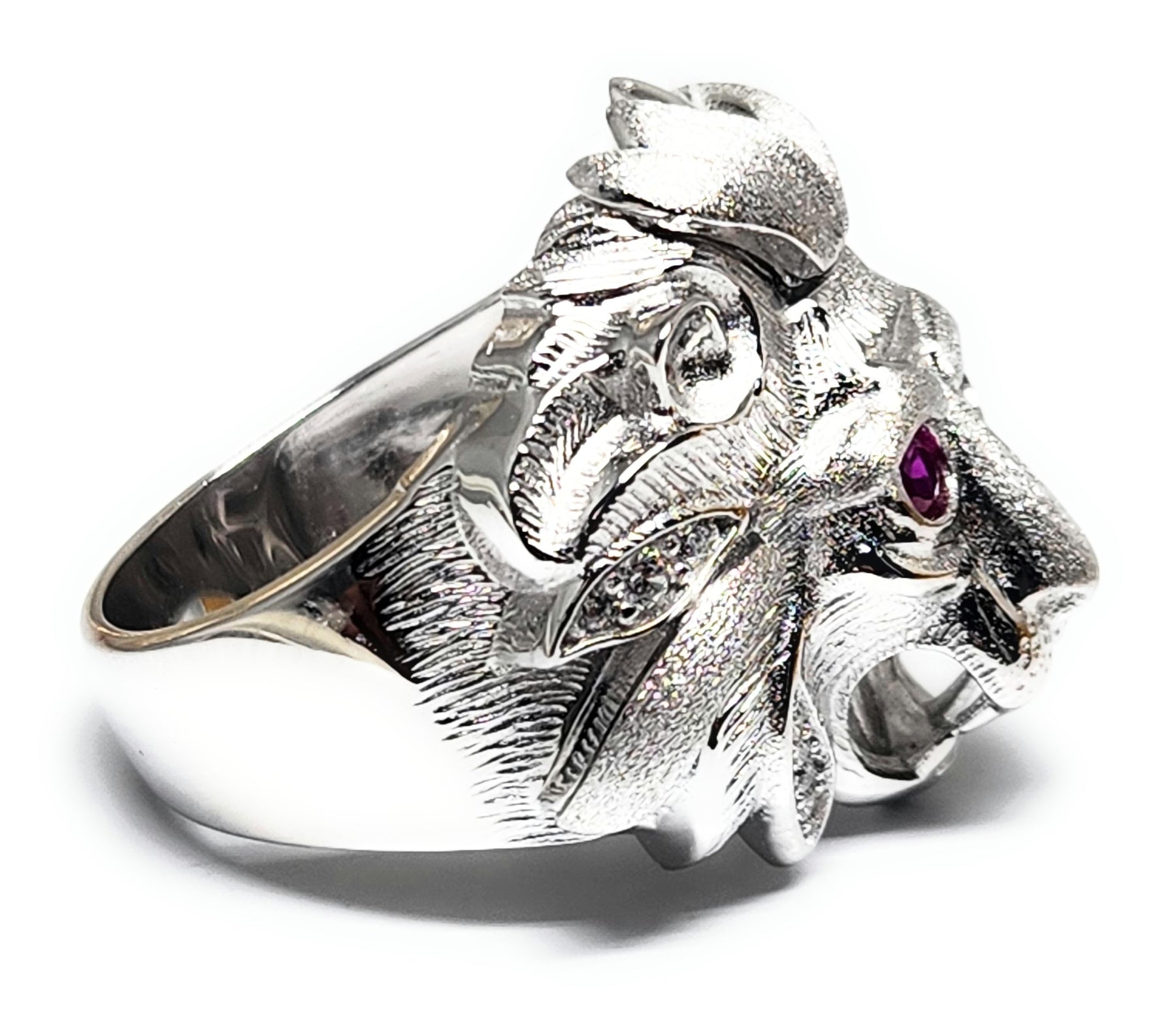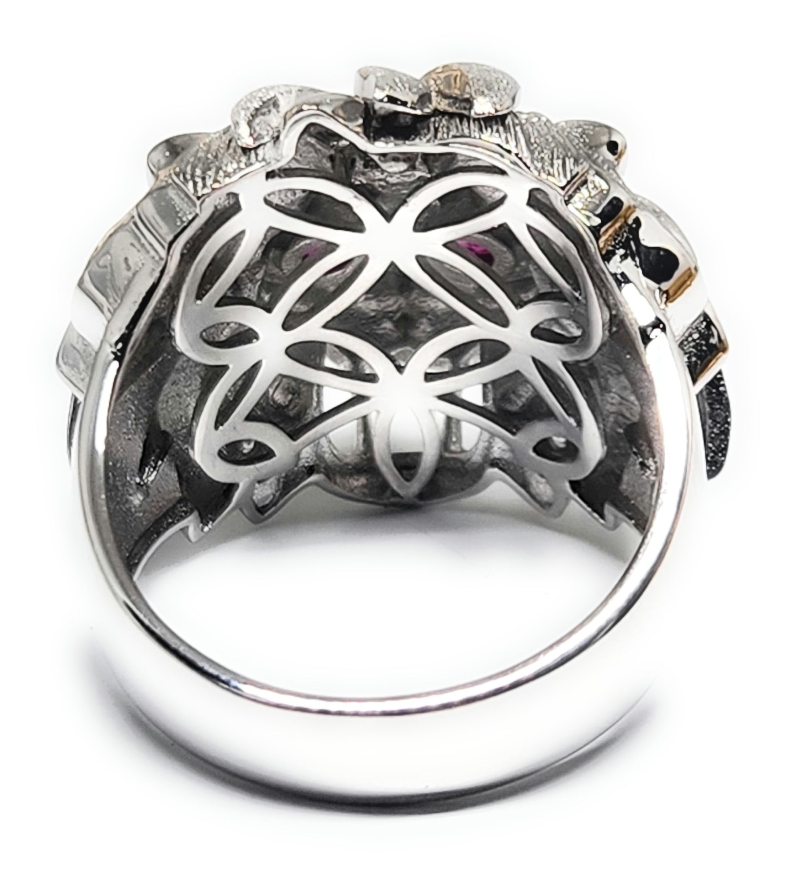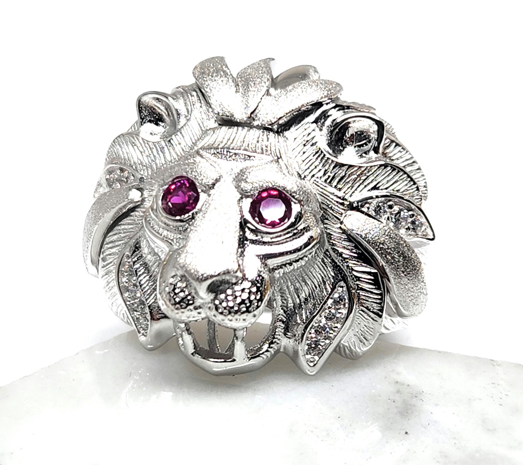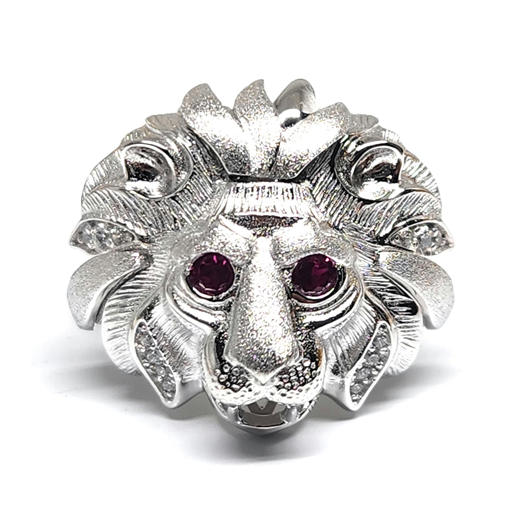 LION HEAD ring is beautifully textured and layered with CZ stones.