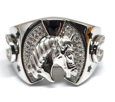 .925 Silver Viirgin Mary Virrgen Guadalupe Cubic Zirconia Horse & Horseshoe Ring