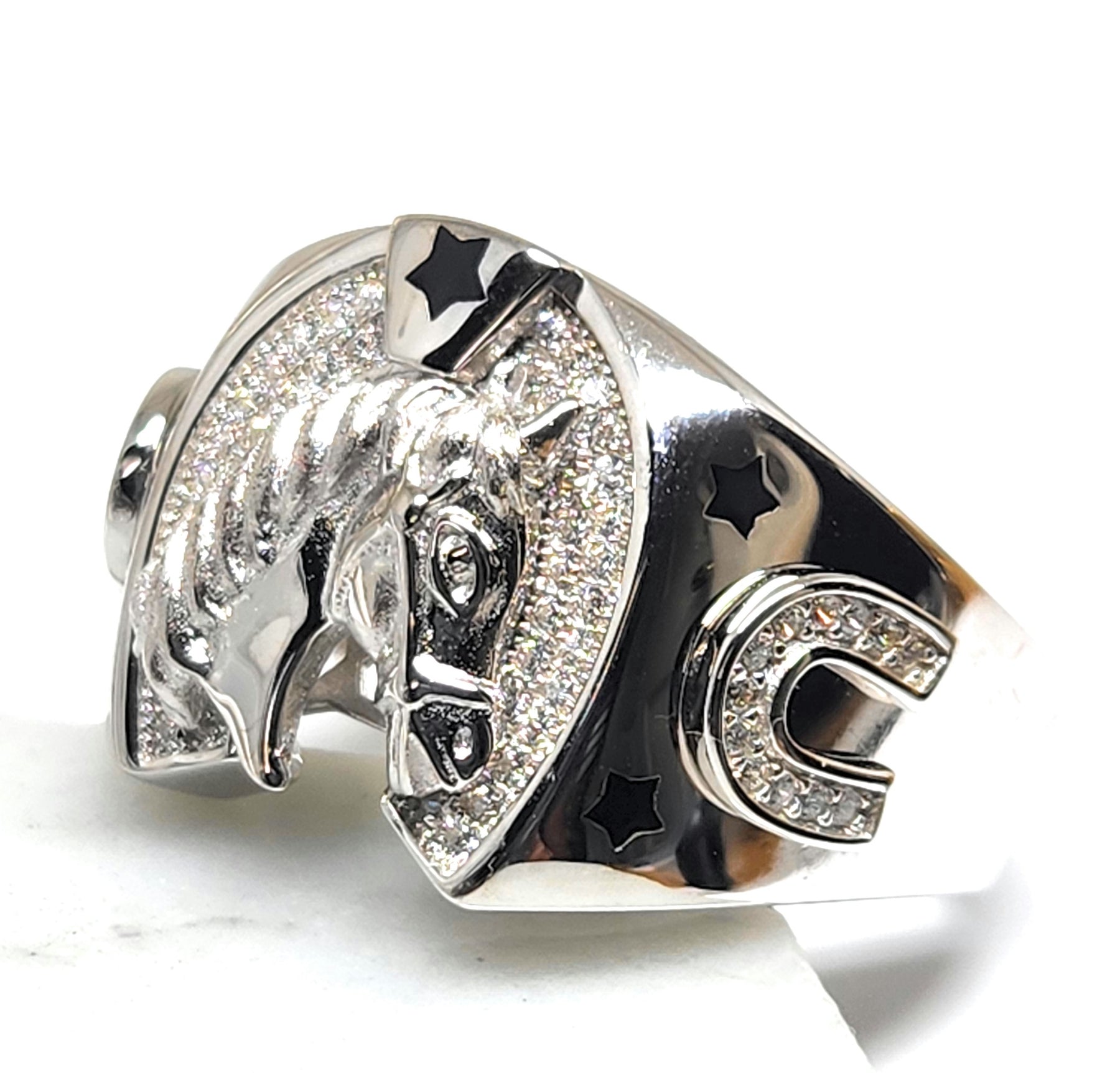 HORSE AND HORSESHOE ring is .925 sterling silver guaranteed.