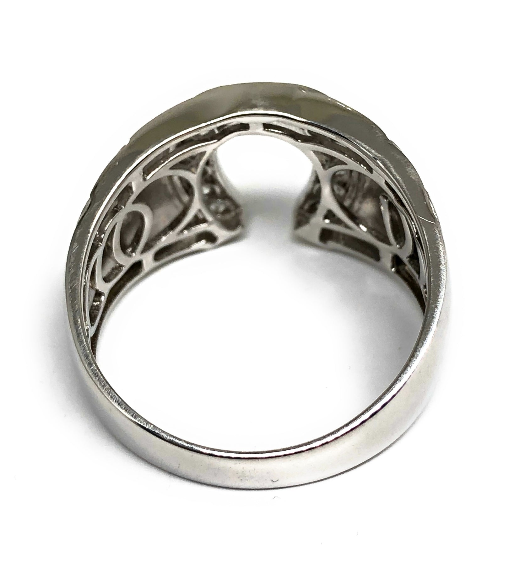 Classic ring is textured and layered to the make the image come out and cubic zirconia stones.