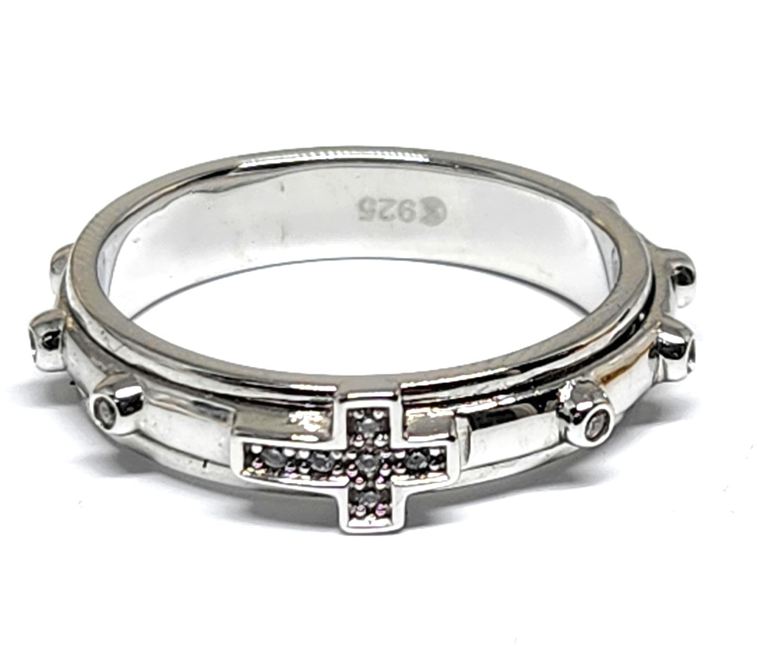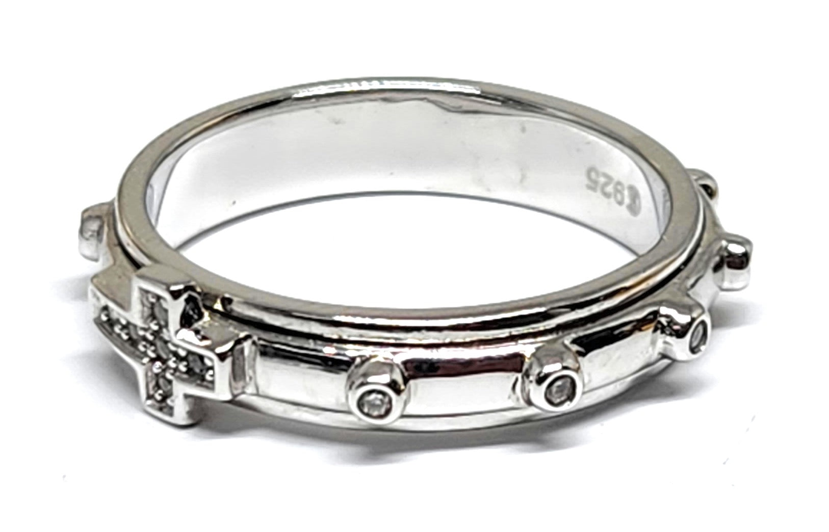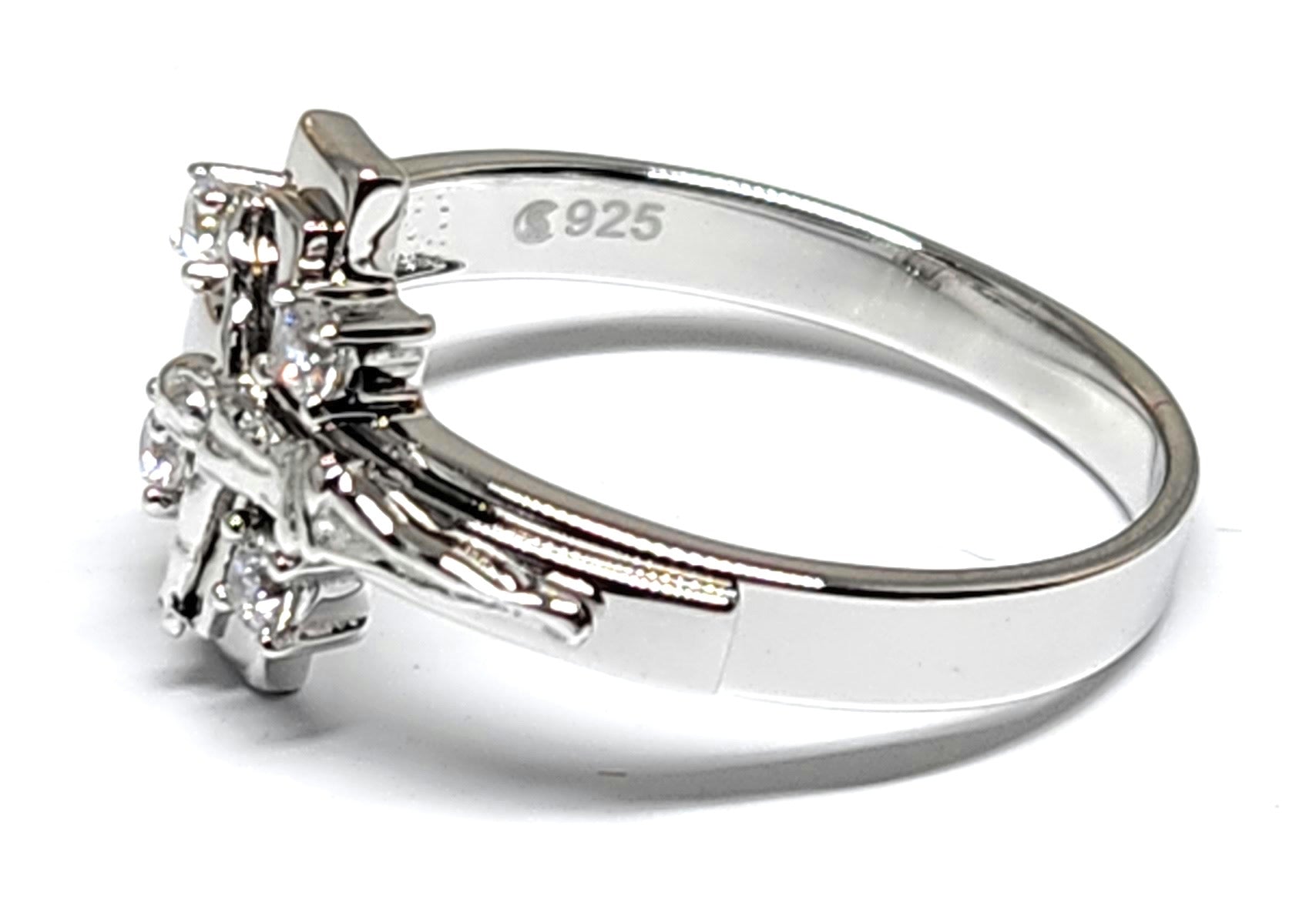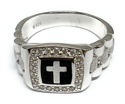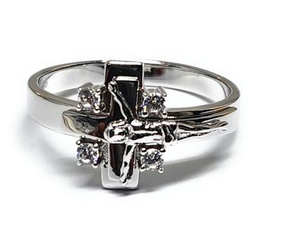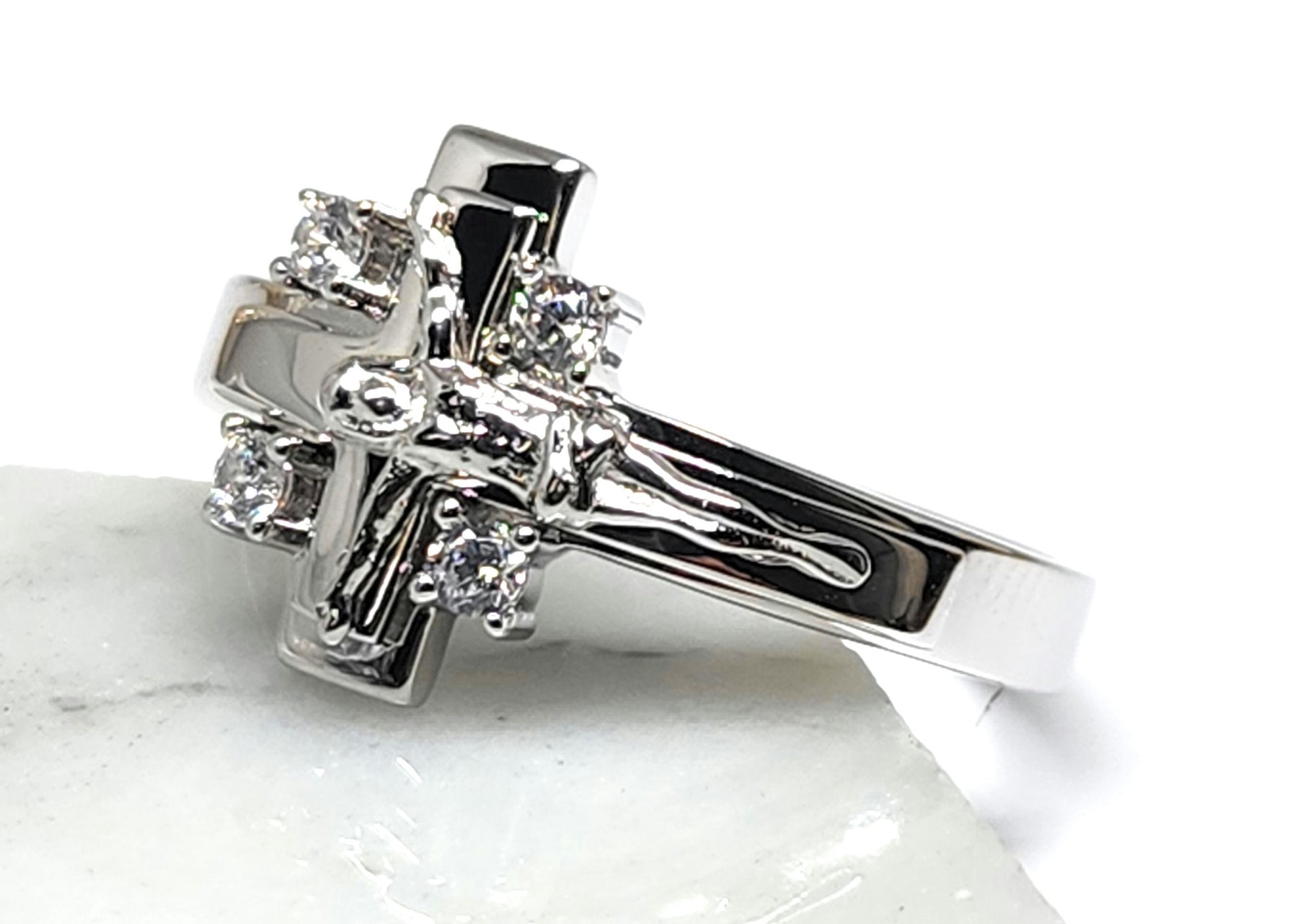 .925 Silver Cross CRUCIFIX JESUS CZ Ring