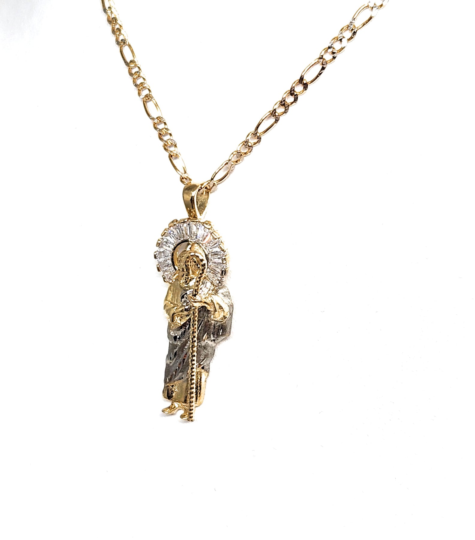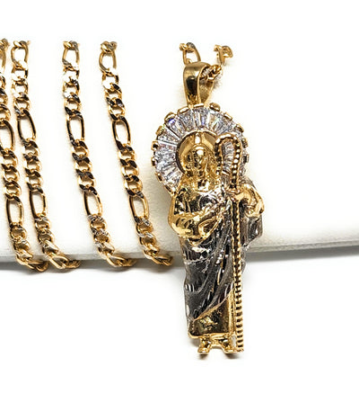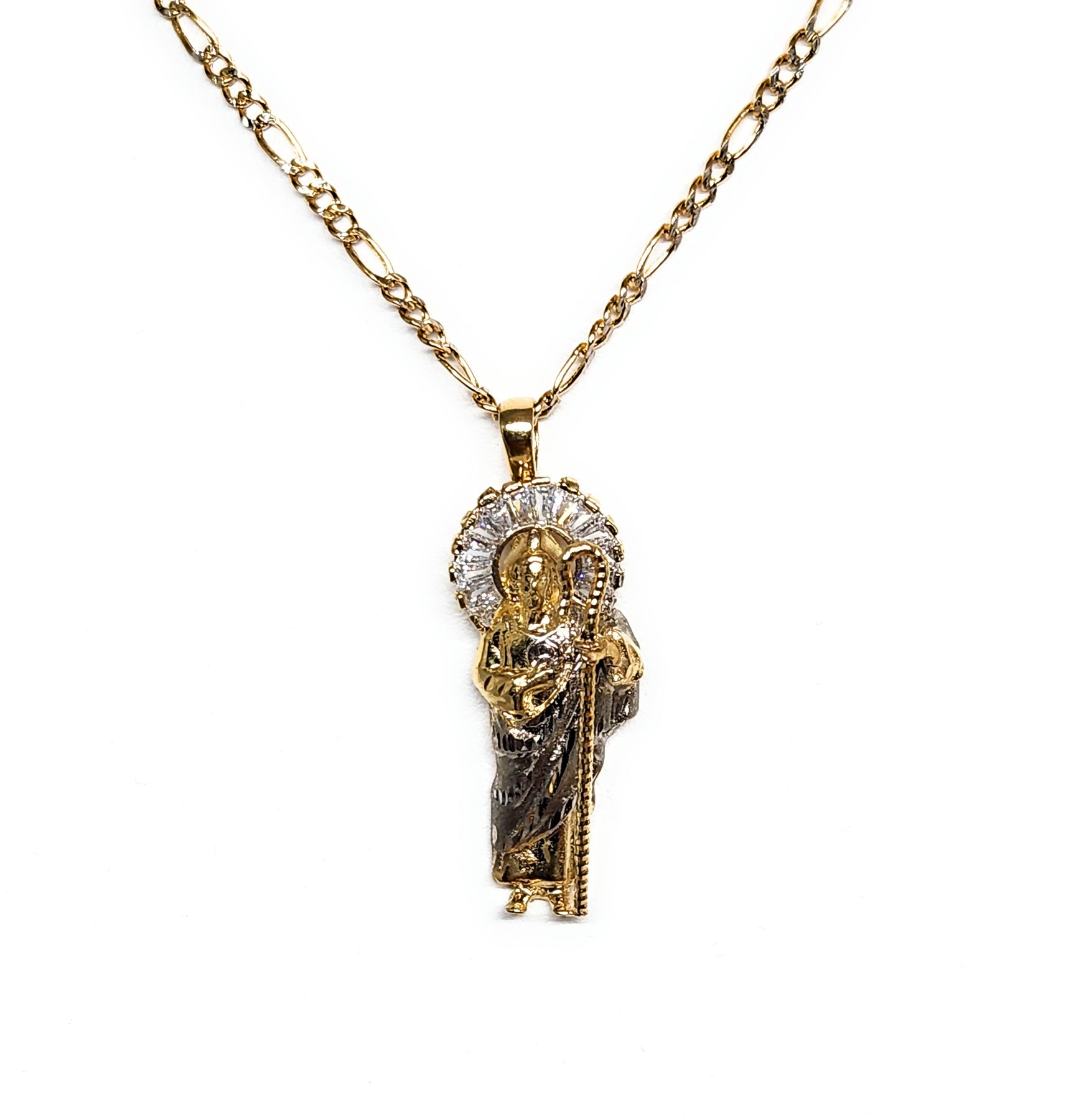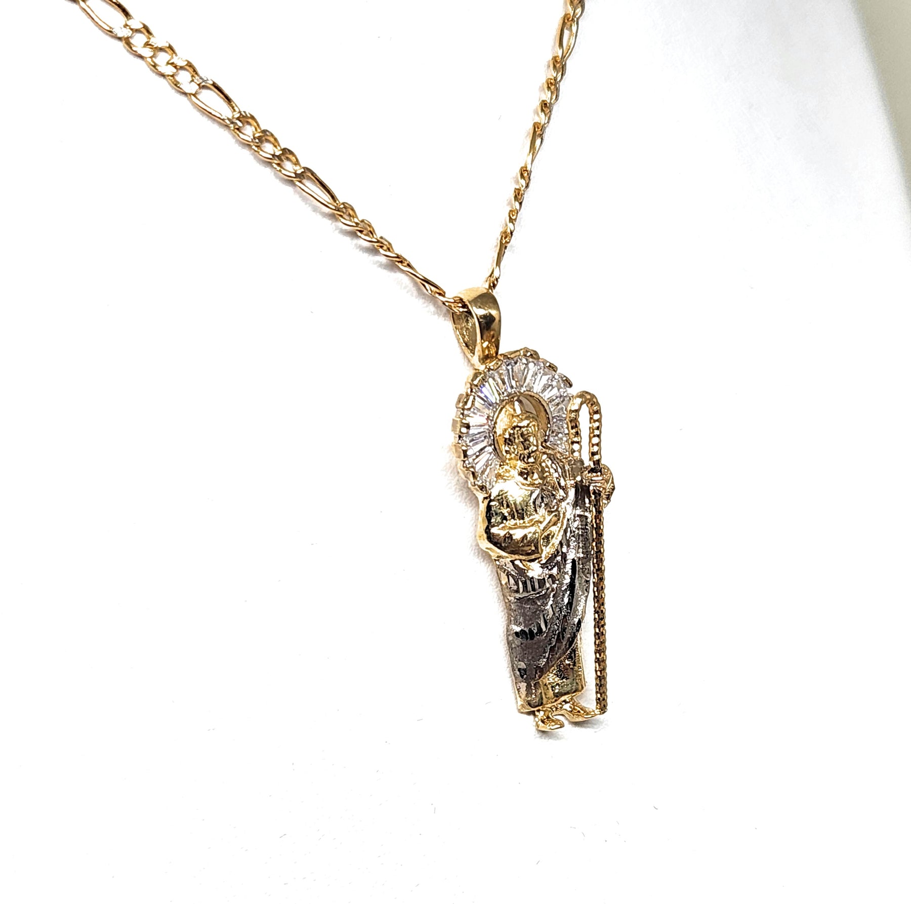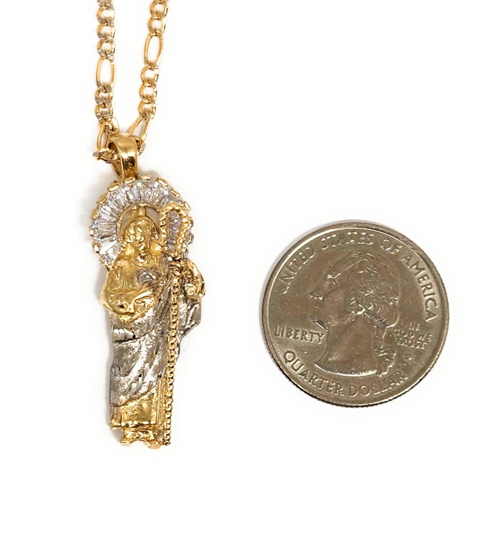 10k Solid 2-Tone Gold SAAN JUDAS SAAINT JUDE CZ Pendant Necklace (MADE IN MX)