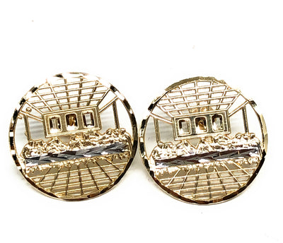 10k Solid Gold 2-Tone Round Last Supper Stud Earrings