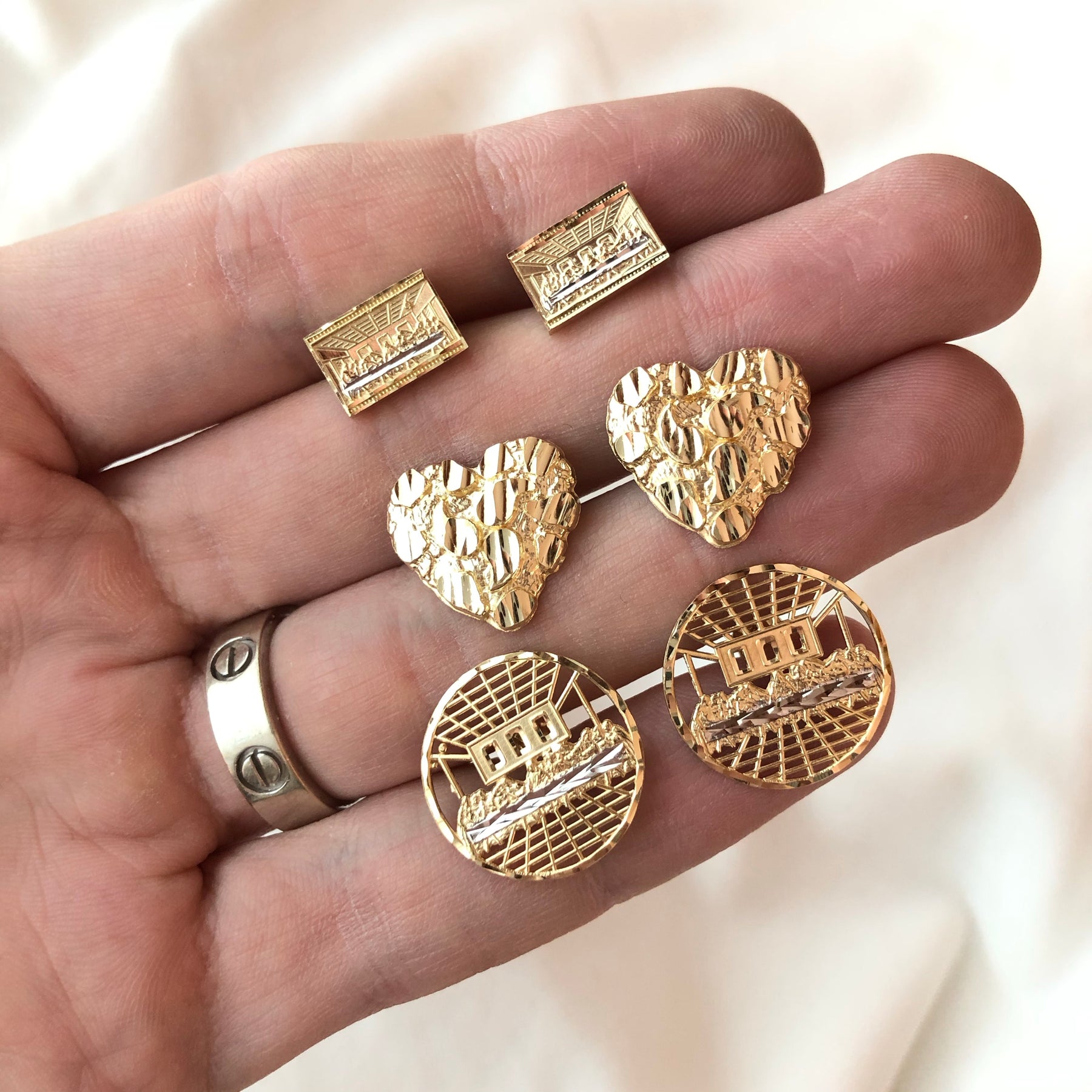 - 2-Tone last supper round stud earrings 10k solid gold guaranteed.