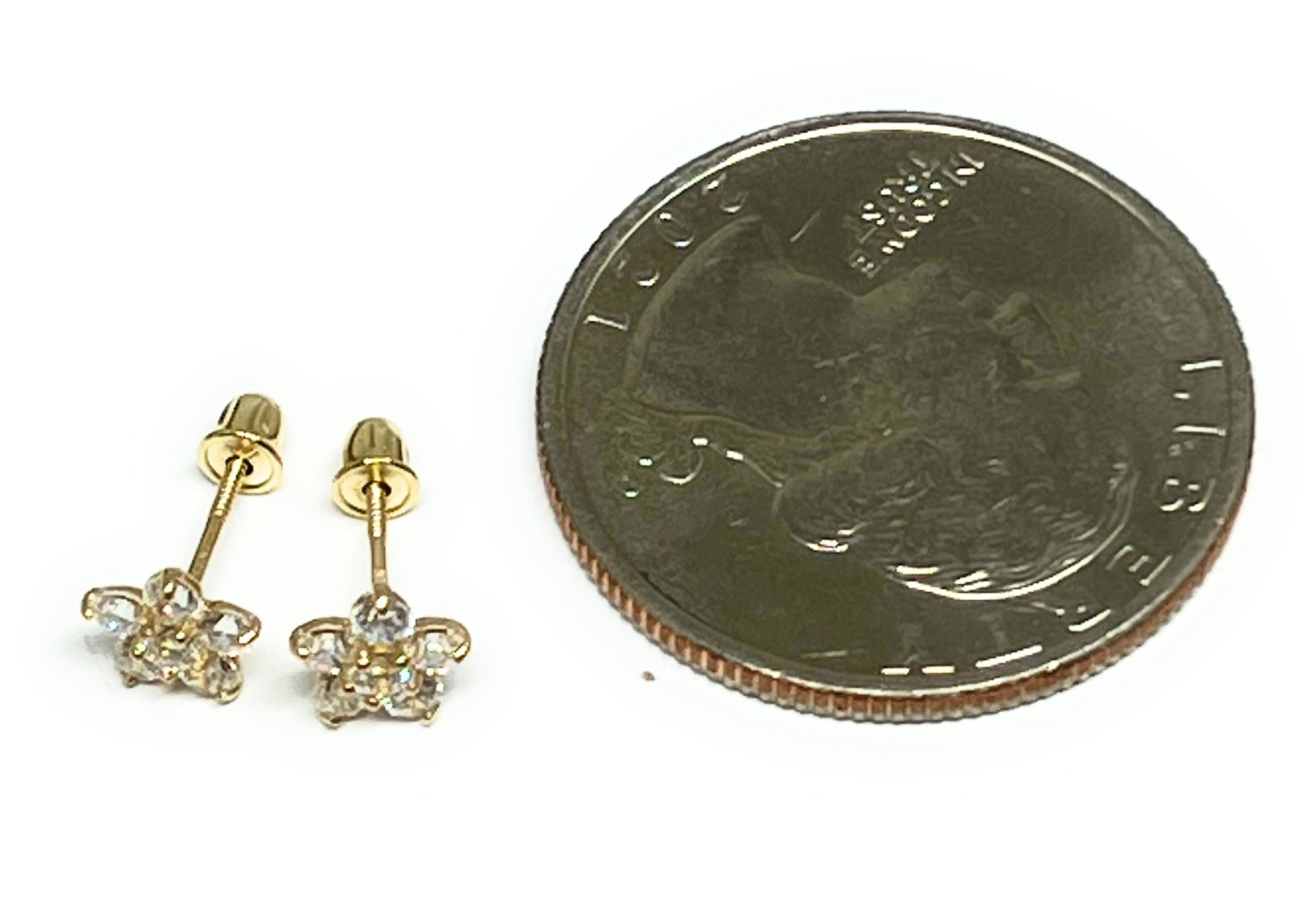 10k Solid Gold Cubic Zirconia Flower Mini Dainty Stud Earrings (FCE 03)