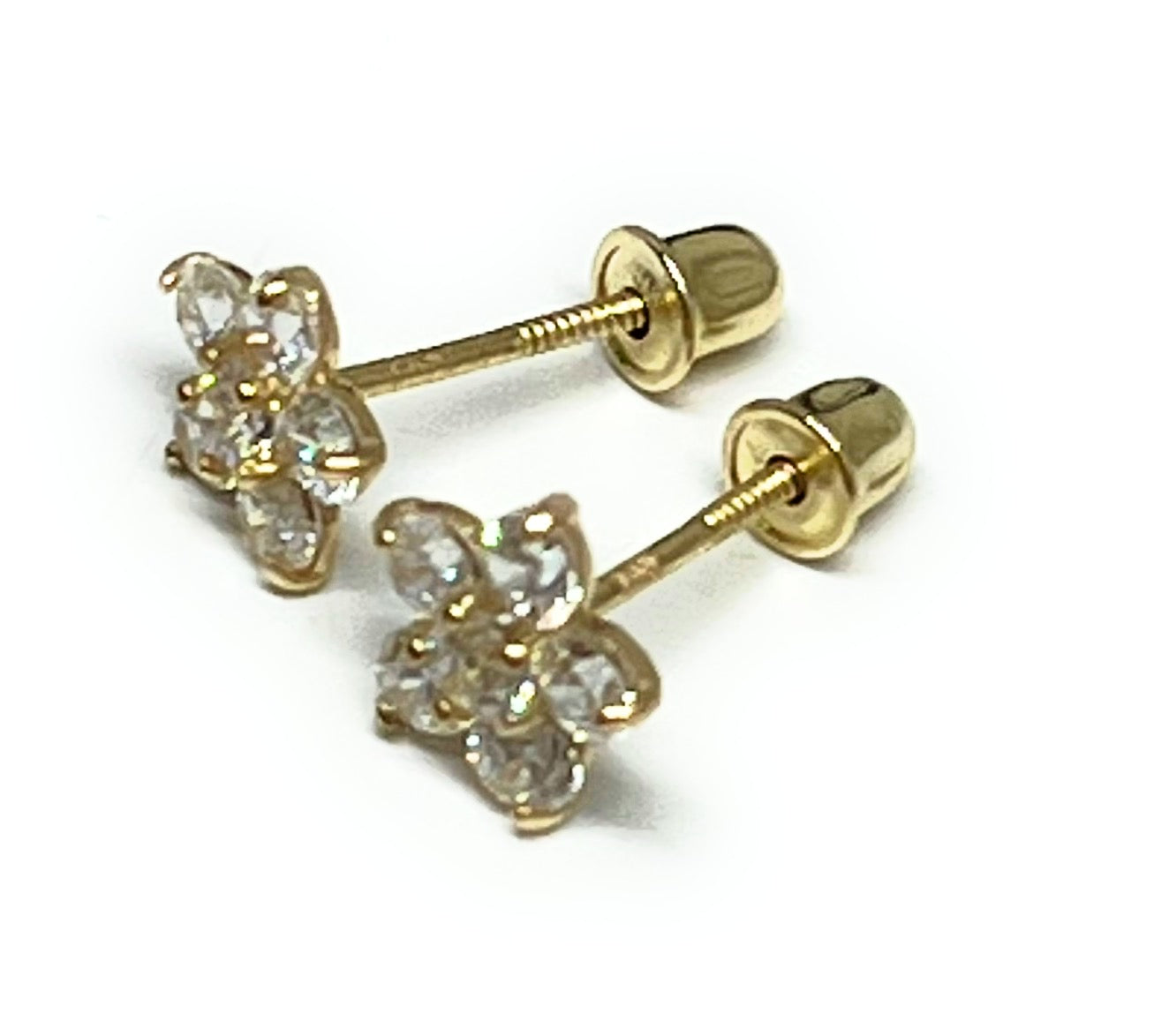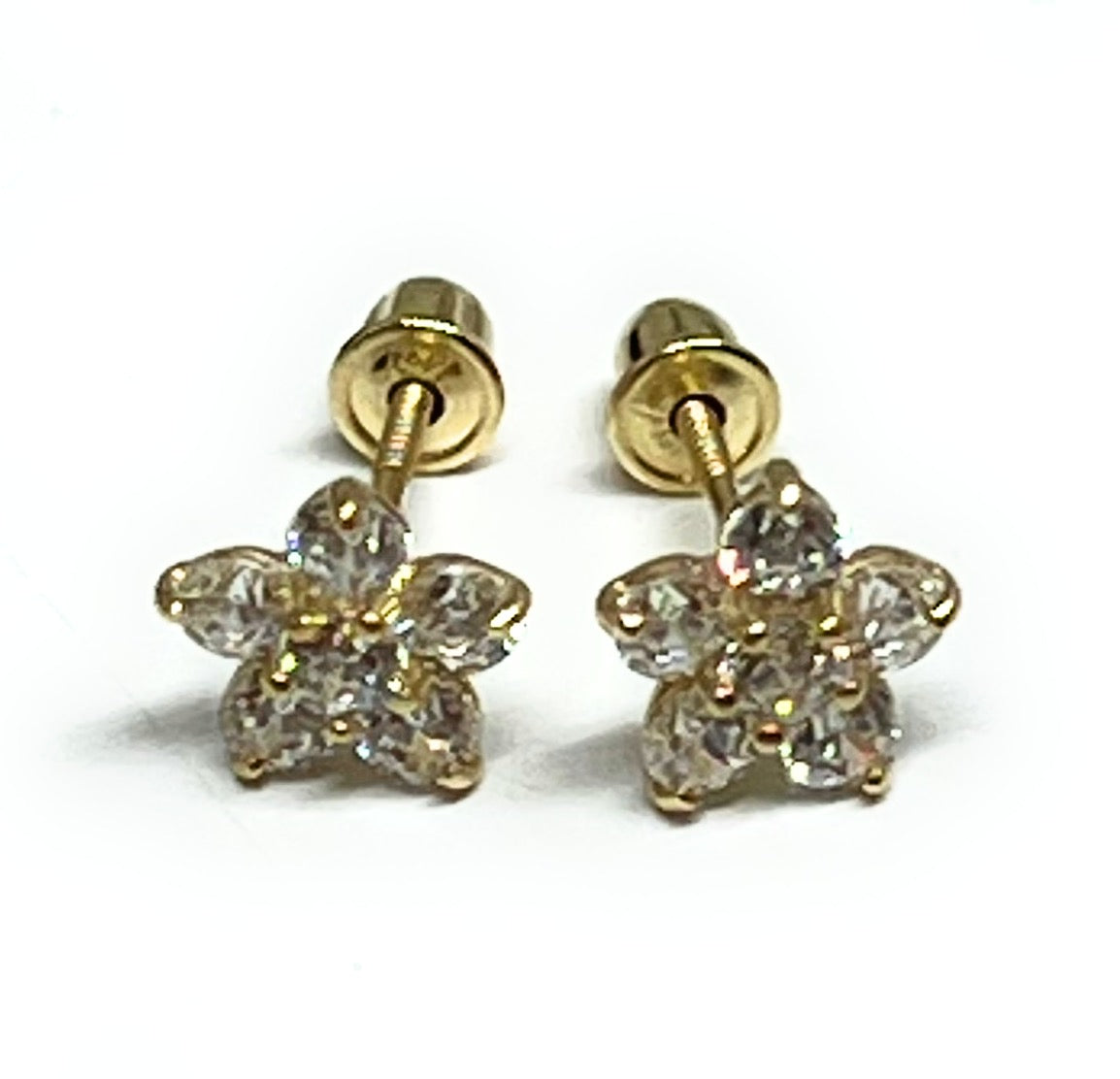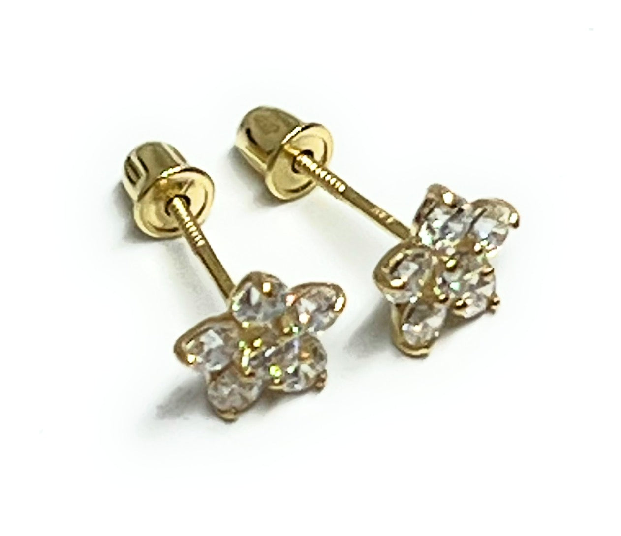 - Mini flower Cubic Zirconia studs10k solid gold guaranteed.