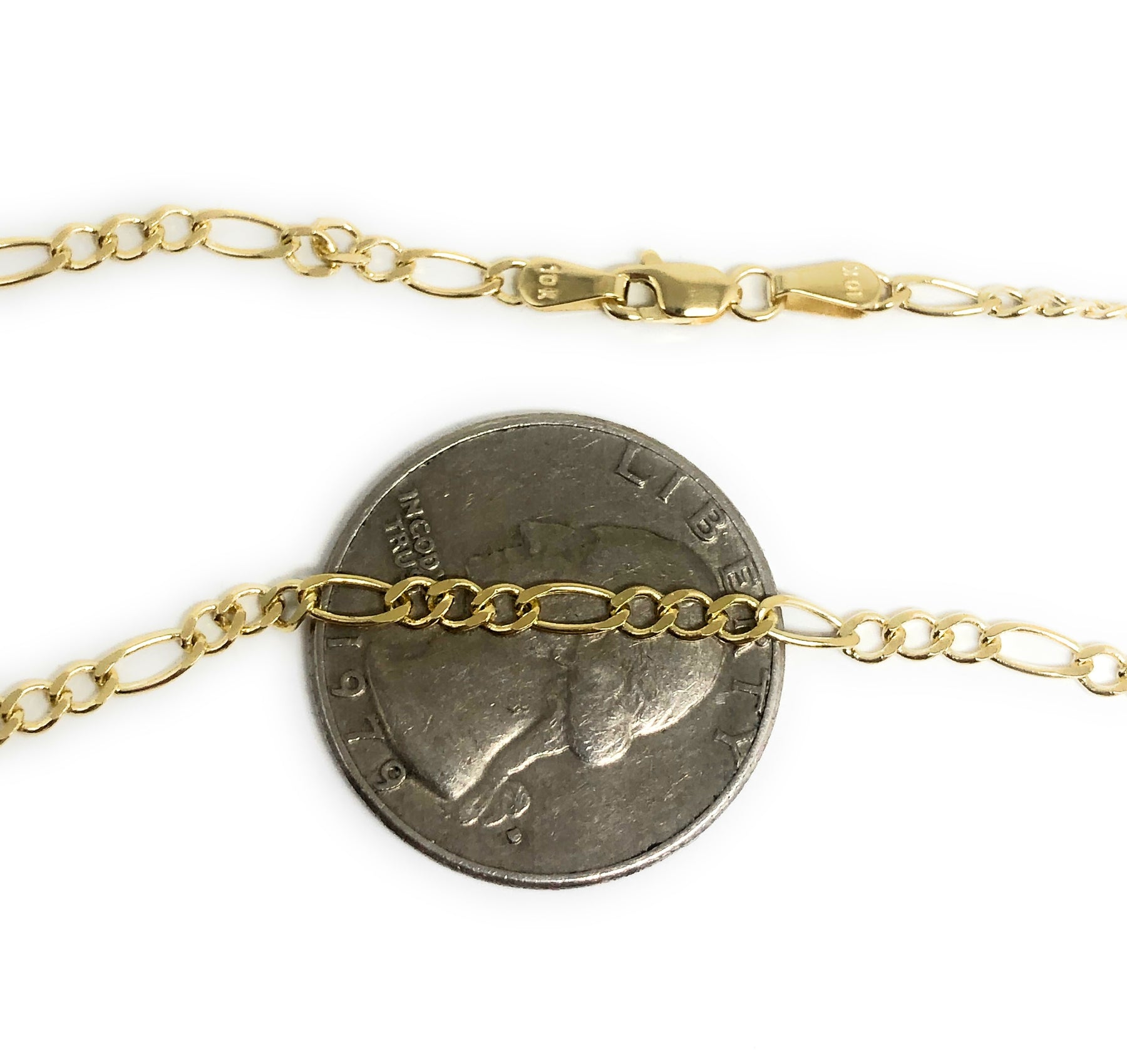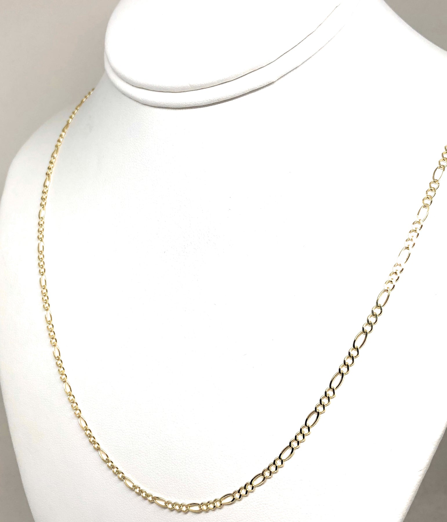 10k Solid Gold Figaro Chain 16-24 inches 2.5mm (Full Solid Style)