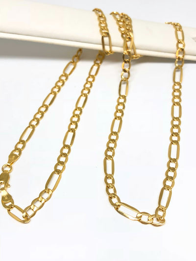 10k Solid Gold Figaro Chain 18-28 inches 4.5mm (Semi-Hollow Style)