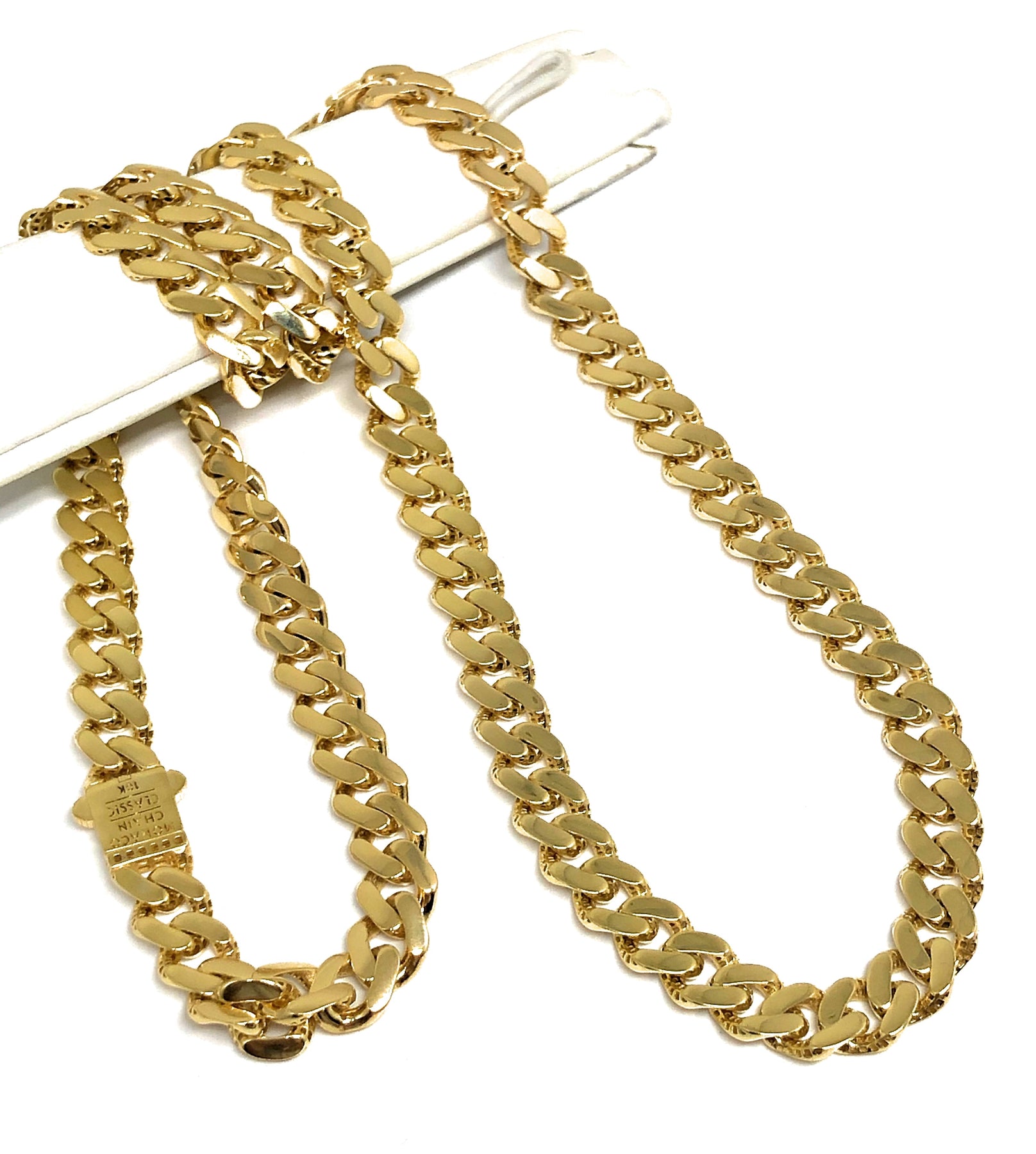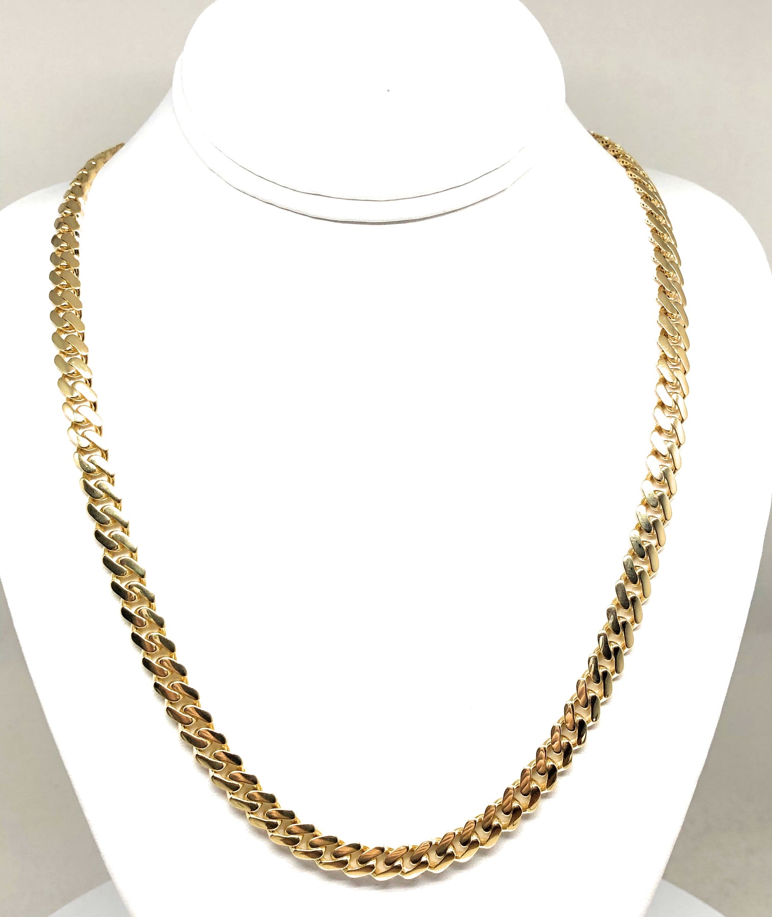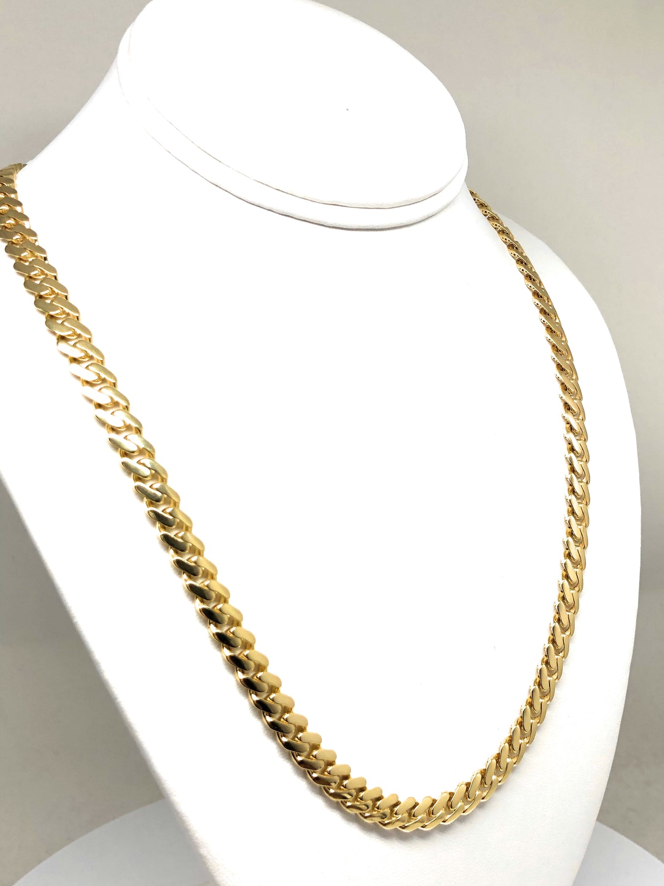 10k Solid Gold Monaco Miami Cuban Link Chain 24-26 inches 7.7mm (Semi-Hollow) 24-26g