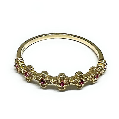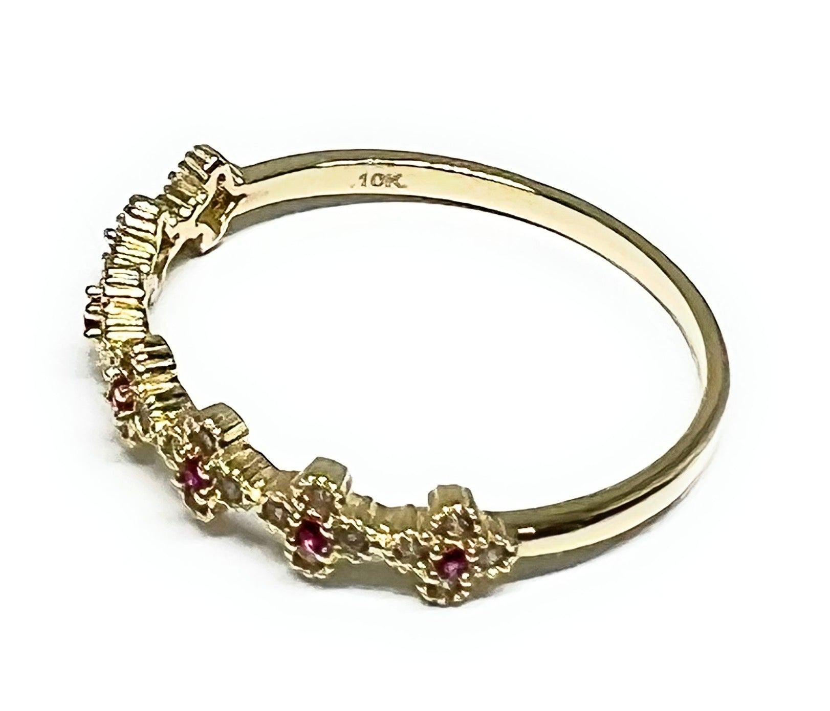 10K SOLID GOLD RED & WHITE CZ FLOWER CZ BAND RING (FC 241)