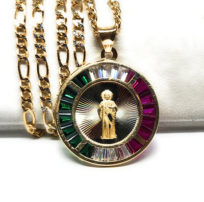 10k Solid Gold SAAN JUDAS SAAINT JUDE CZ Pendant Necklace (MADE IN MX)