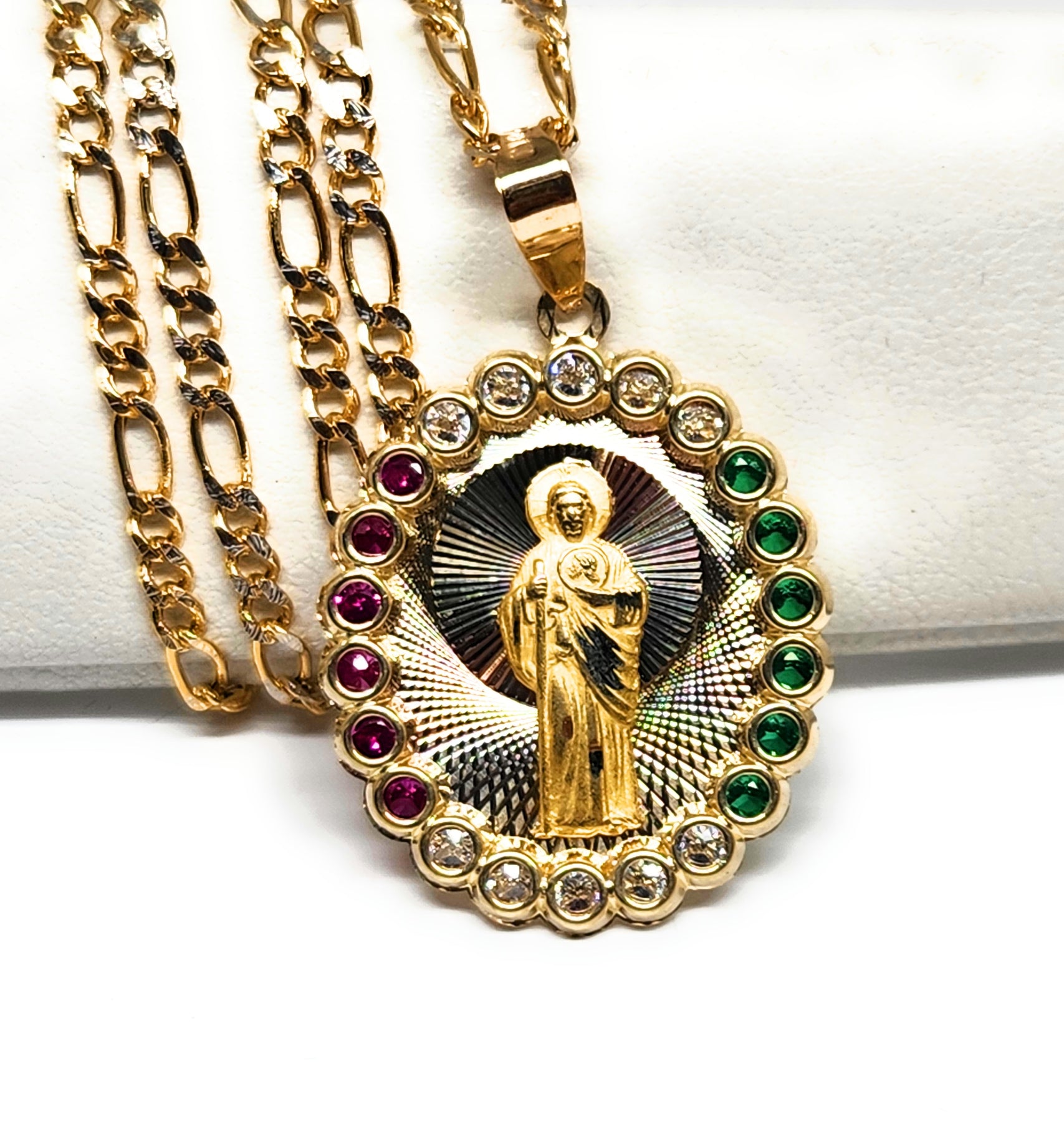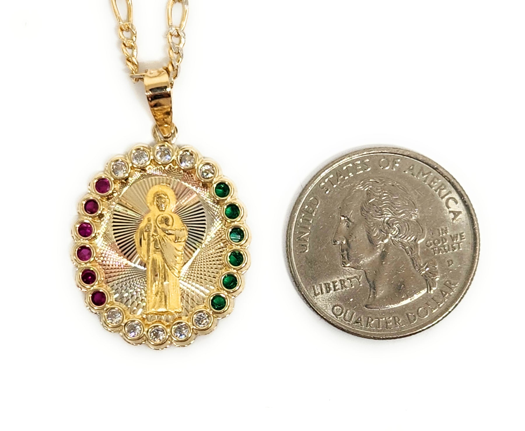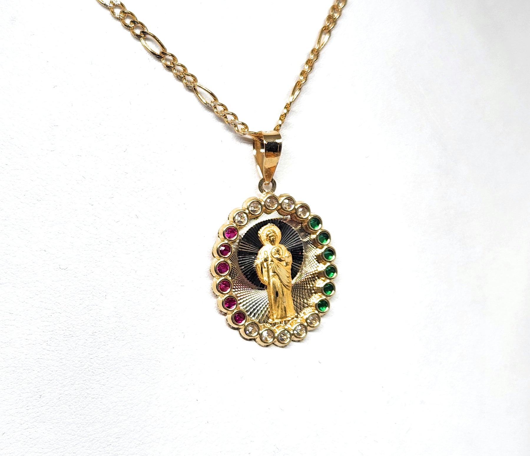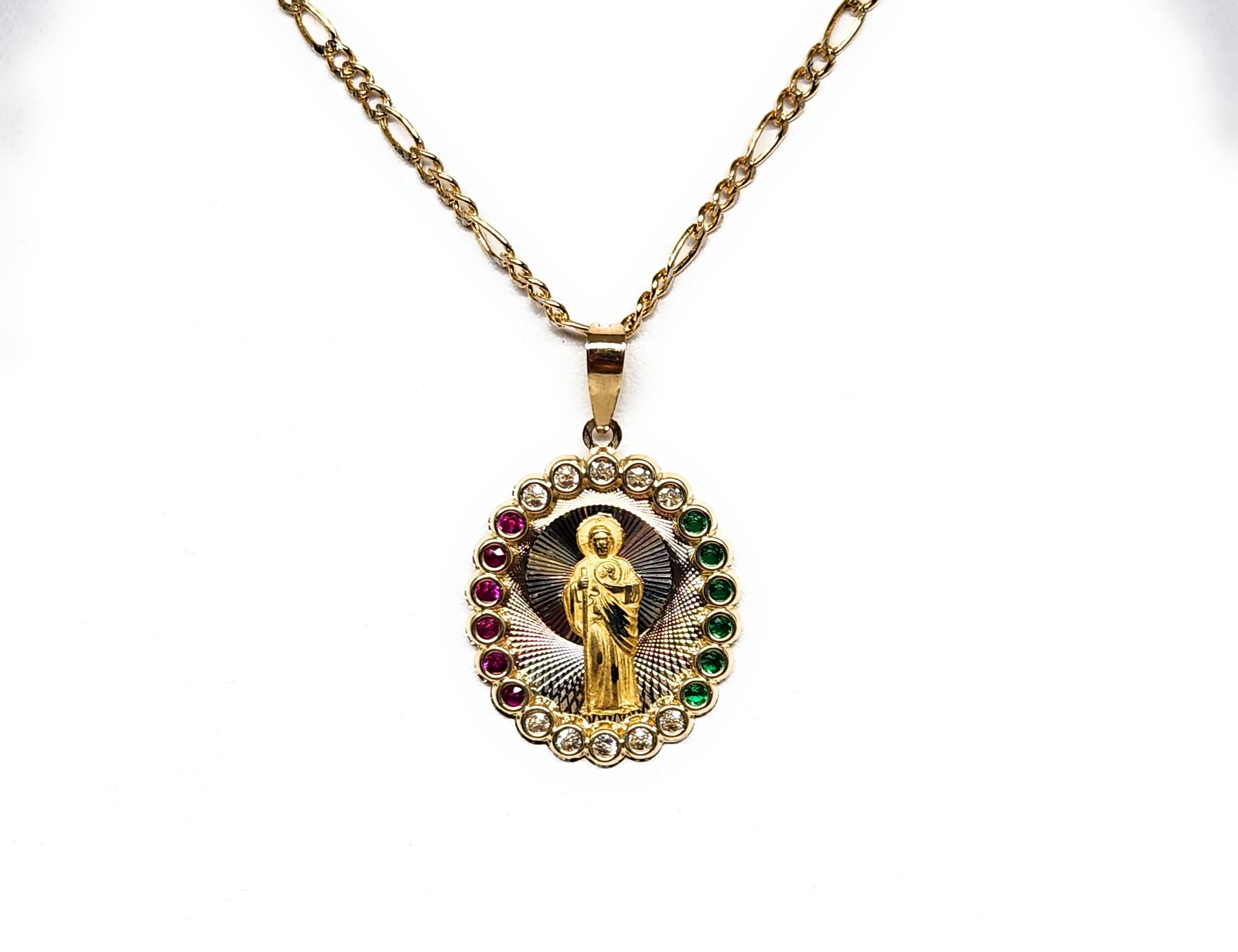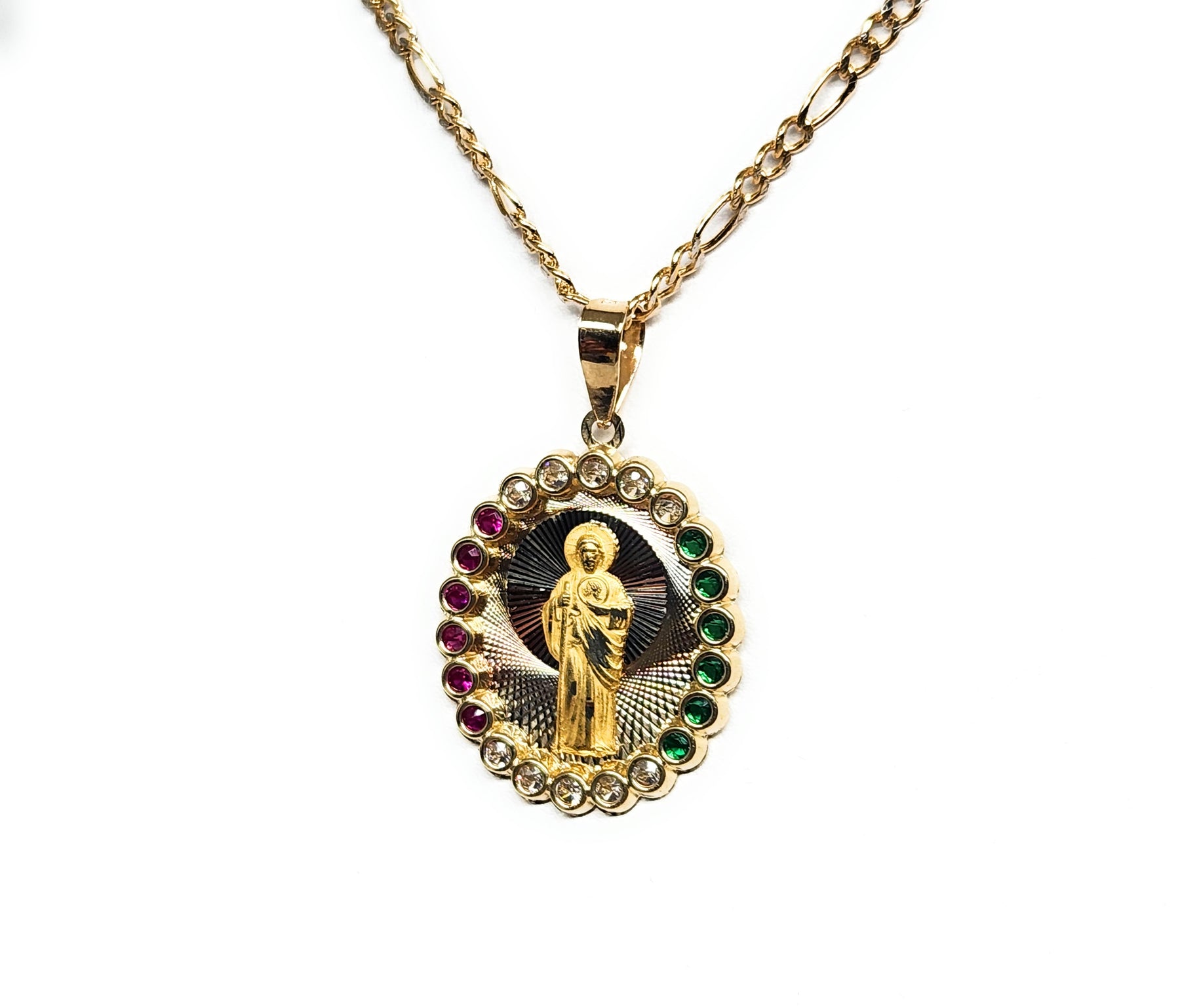 10k Solid Gold SAAN JUDAS SAAINT JUDE CZ Pendant Necklace (MADE IN MX)