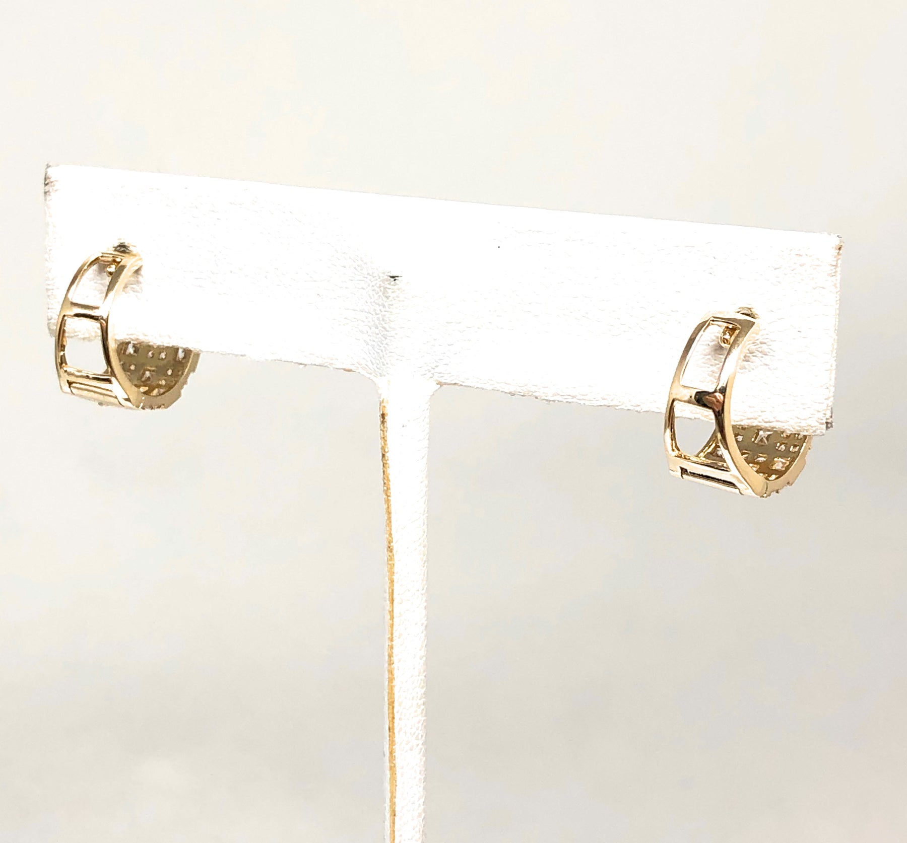 10k Solid Gold Small Cubic Zirconia Huggie Earrings (FC)