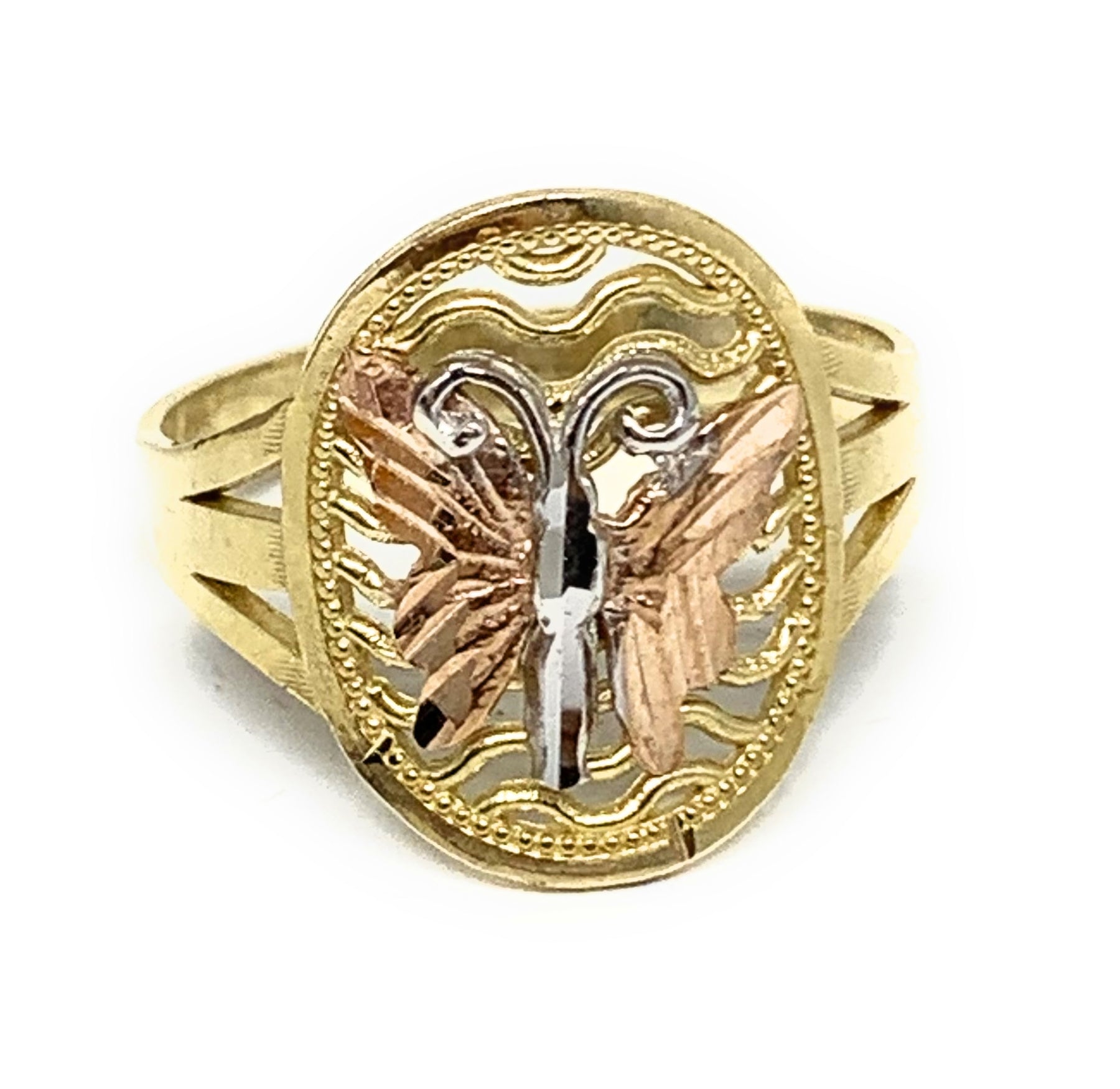 - Tri-Color Gold butterfly Ring 10k solid gold guaranteed.