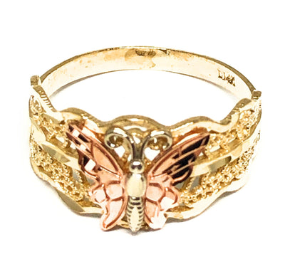 10k Solid Gold Tri-Color Butterfly Ring (FC 144)