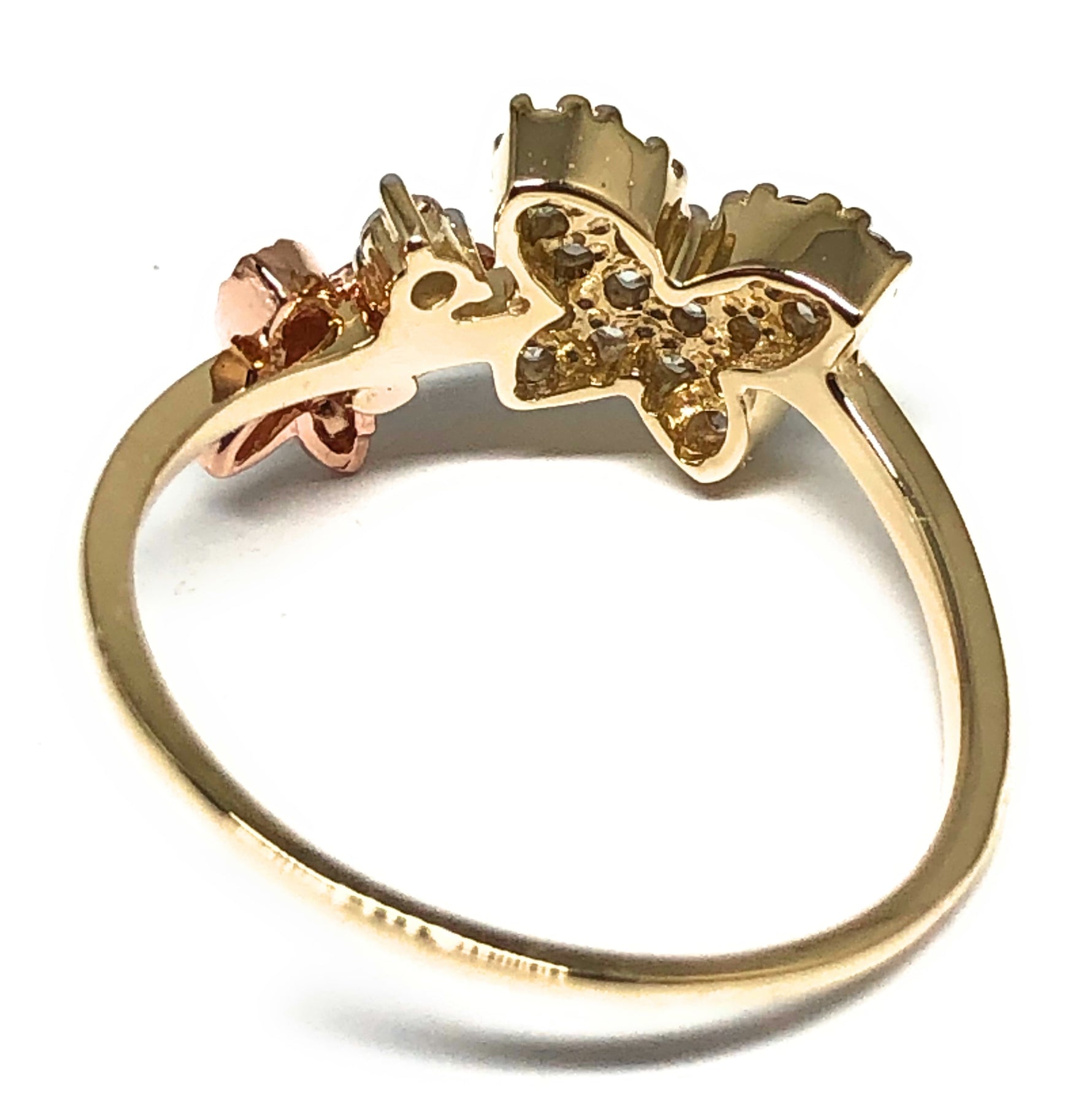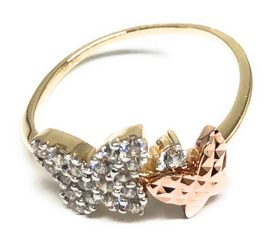 10k Solid Gold Tri-Color CZ Butterfly Ring (FC 54)