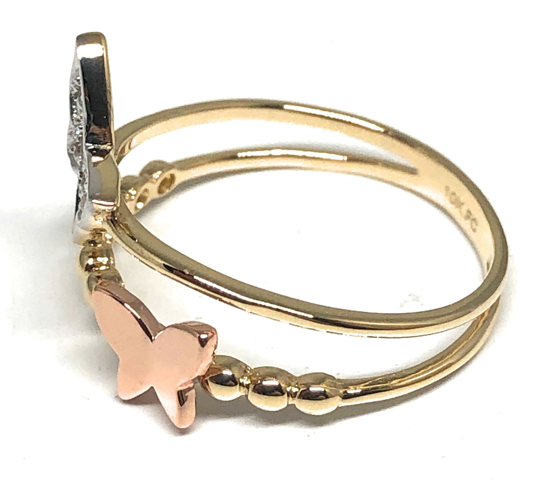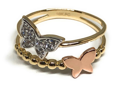 10k Solid Gold Tri-Color CZ Butterfly Ring (FC 58)