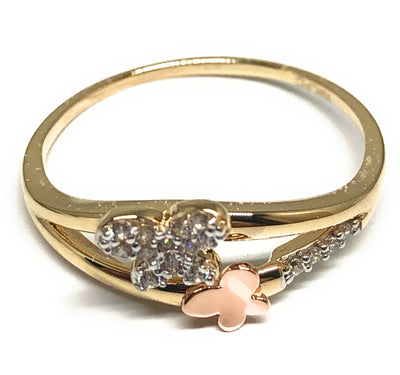10k Solid Gold Tri-Color CZ Butterfly Ring (FC 60)
