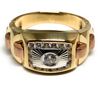 10k Solid Gold Tri-Color CZ PUFFED OUT Ring (7.0g) (FC 129)
