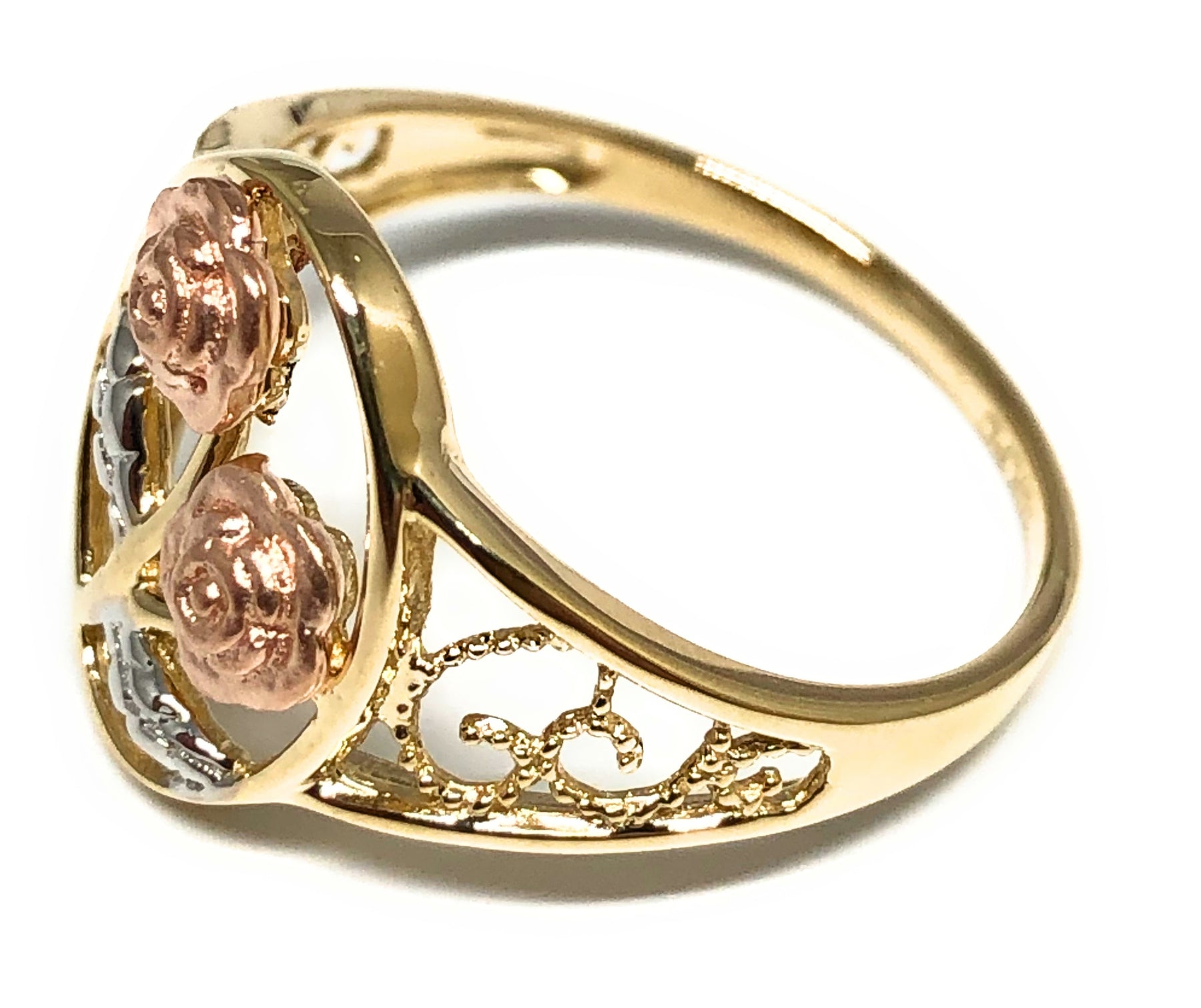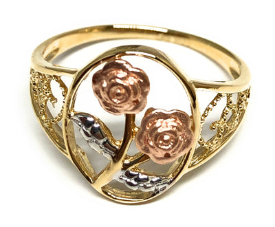 10k Solid Gold Tri-Color Double Flower Ring (FC 33)