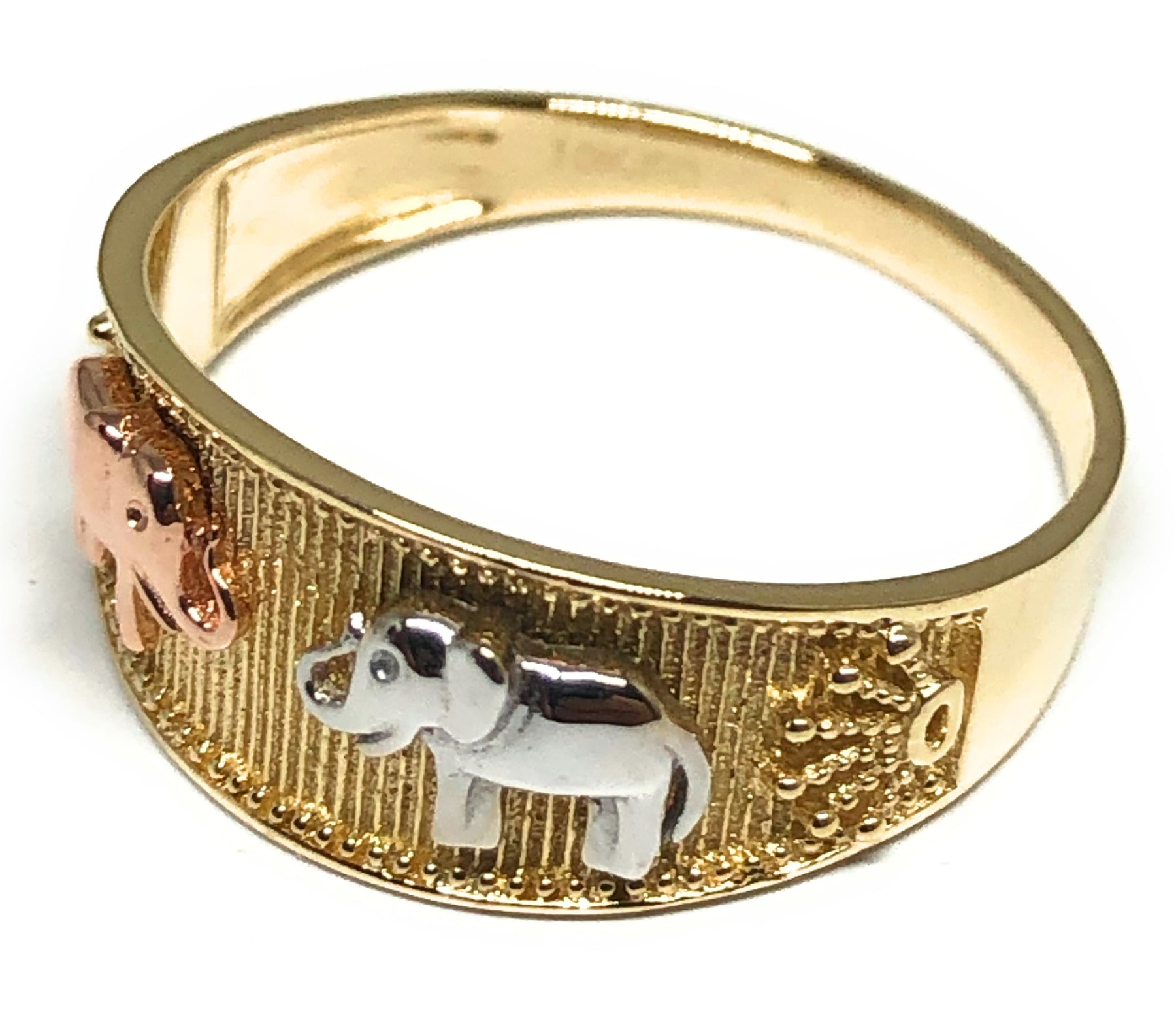 10k Solid Gold Tri-Color Elephant Ring (FC 88)