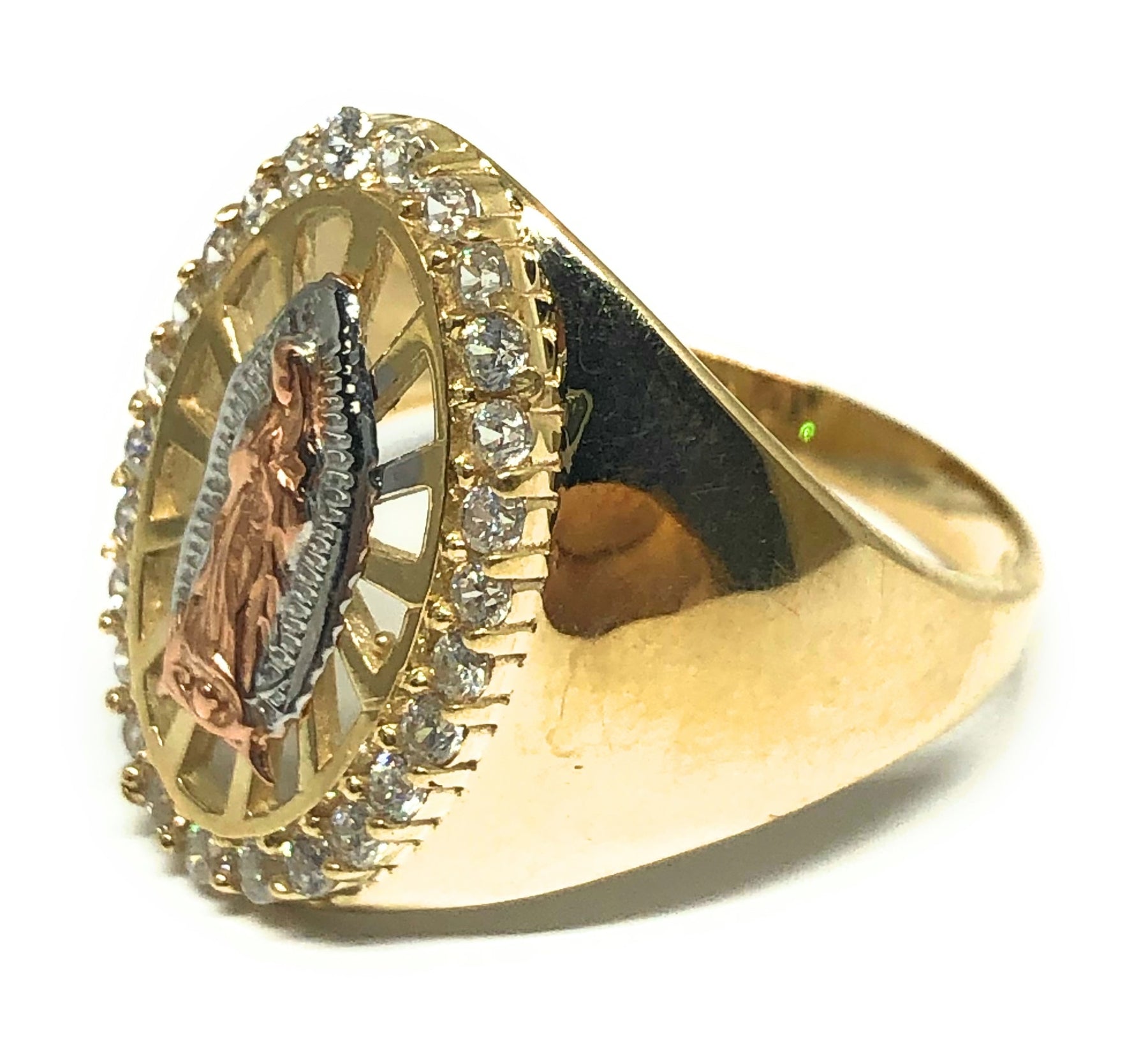 - Tri-Color Gold Virgin Mary CZ Ring 10k solid gold guaranteed.
