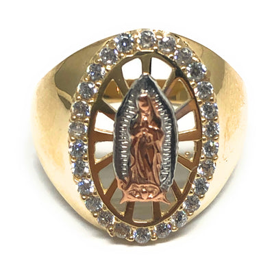 10k Solid Gold Tri-Color Gold Virrgin Mary CZ Ring