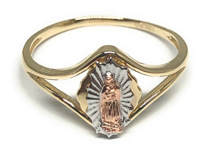 10k Solid Gold Tri-Color Gold Virrgin Mary Ring (FC 27)