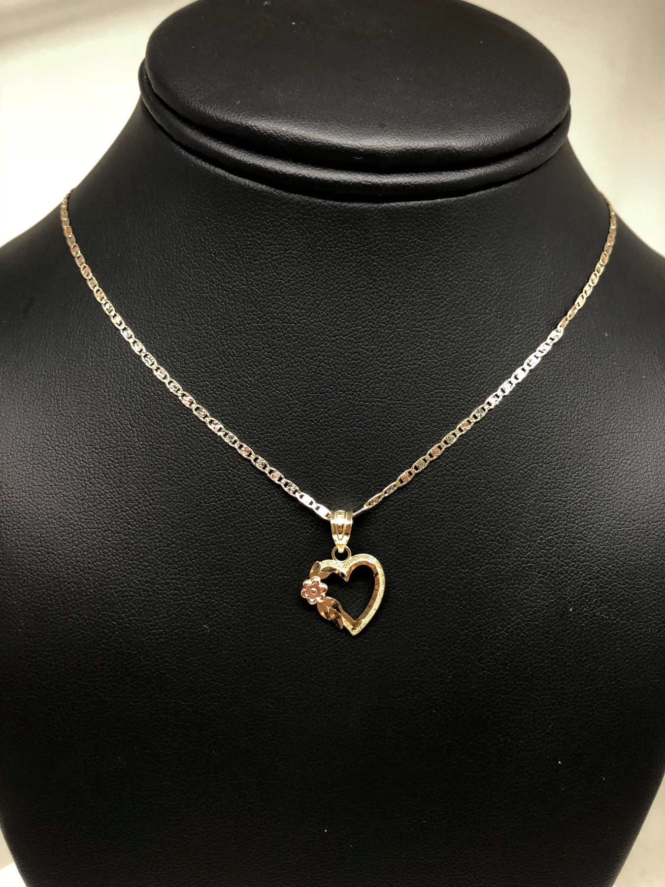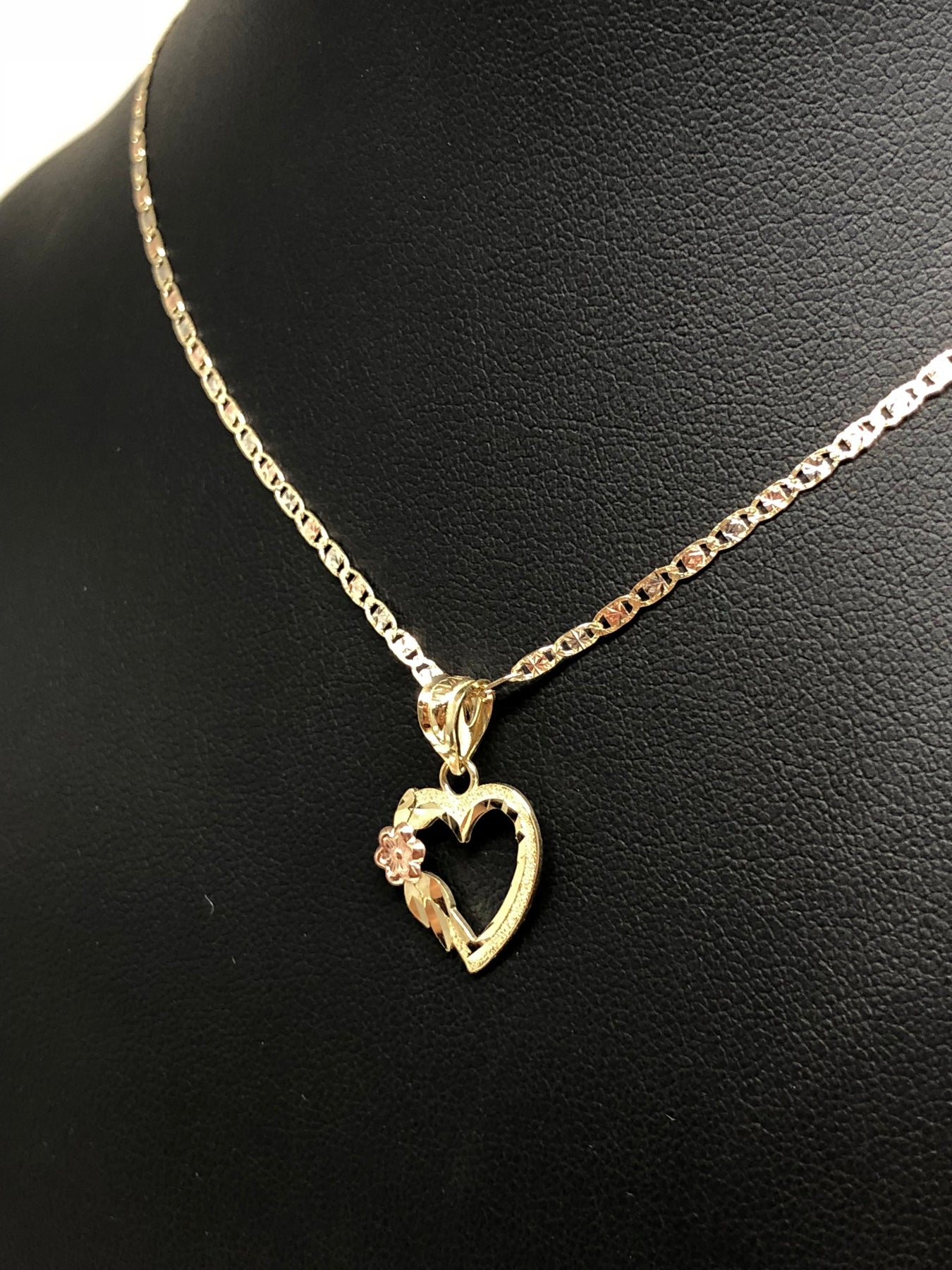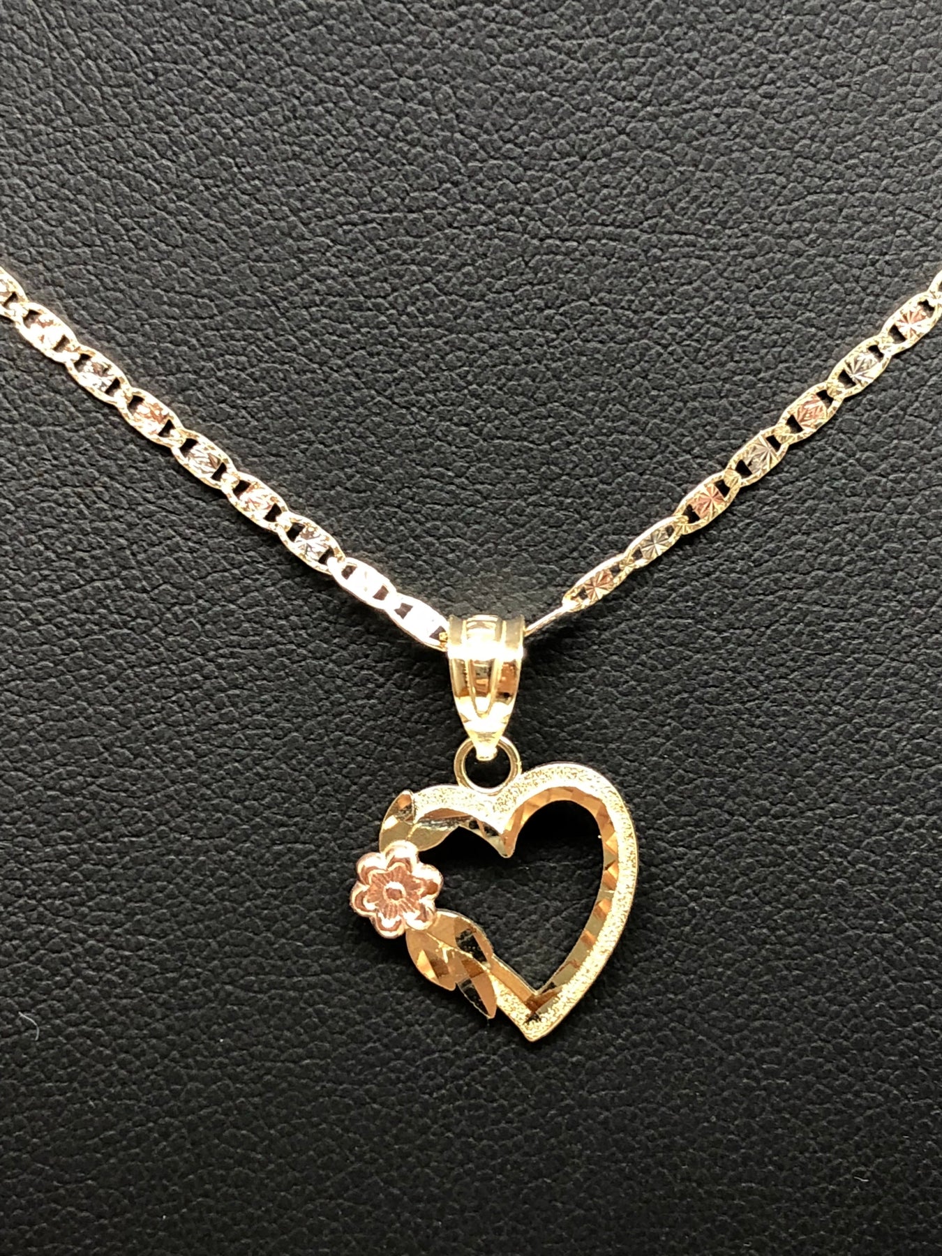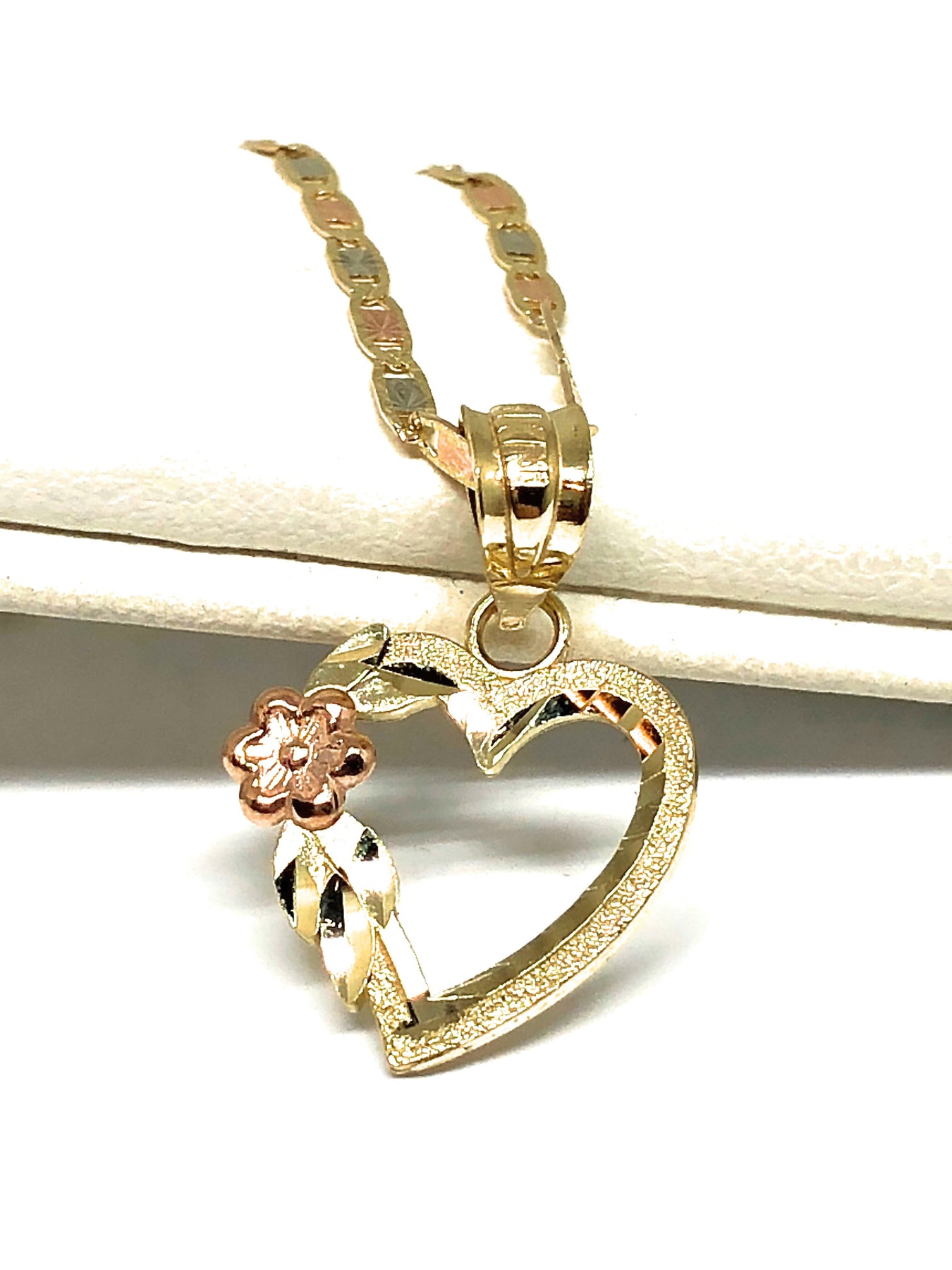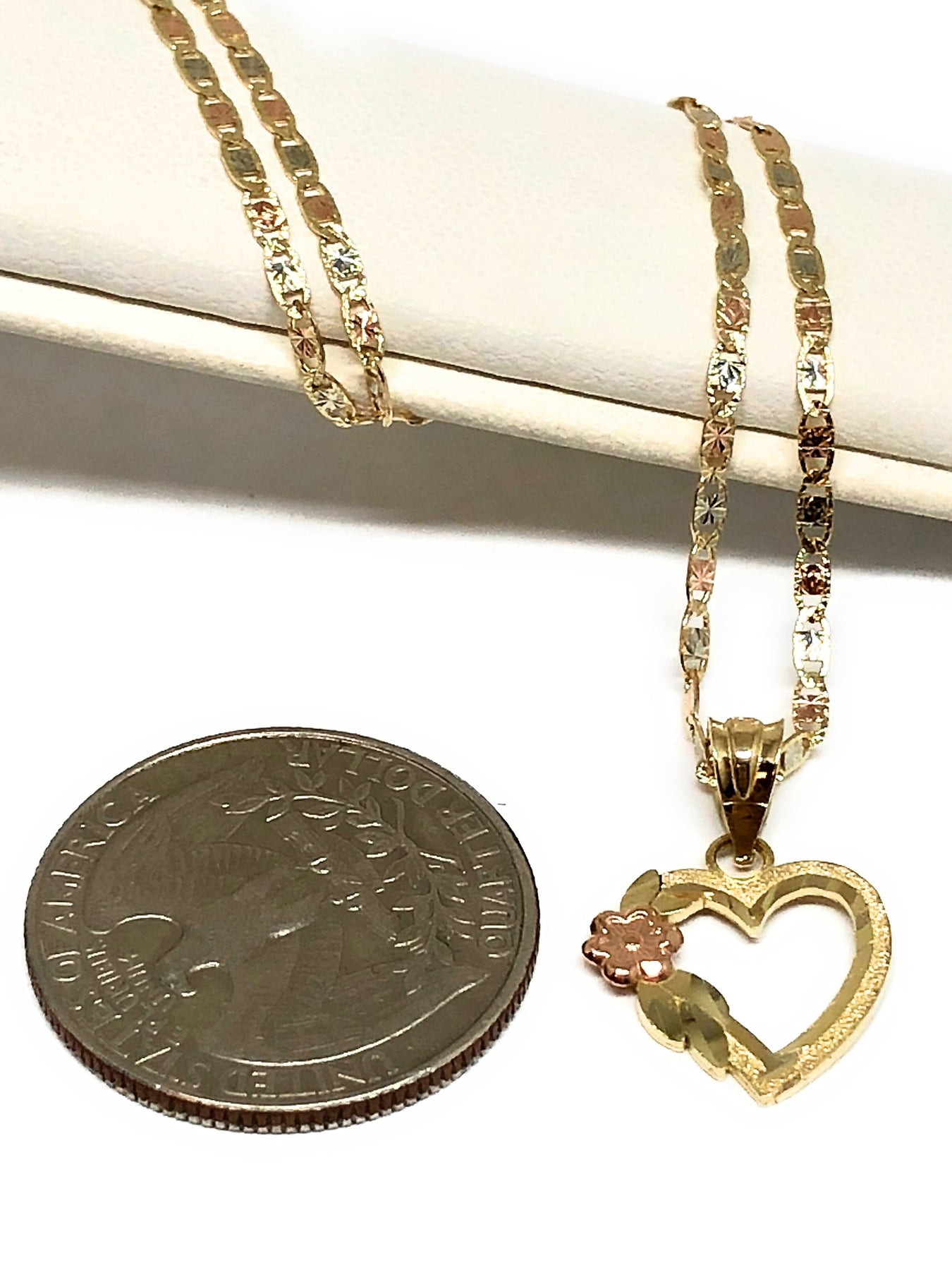 10k Solid Gold Tri-Color Heart Pendant Necklace Tri-Color Valentina Chain