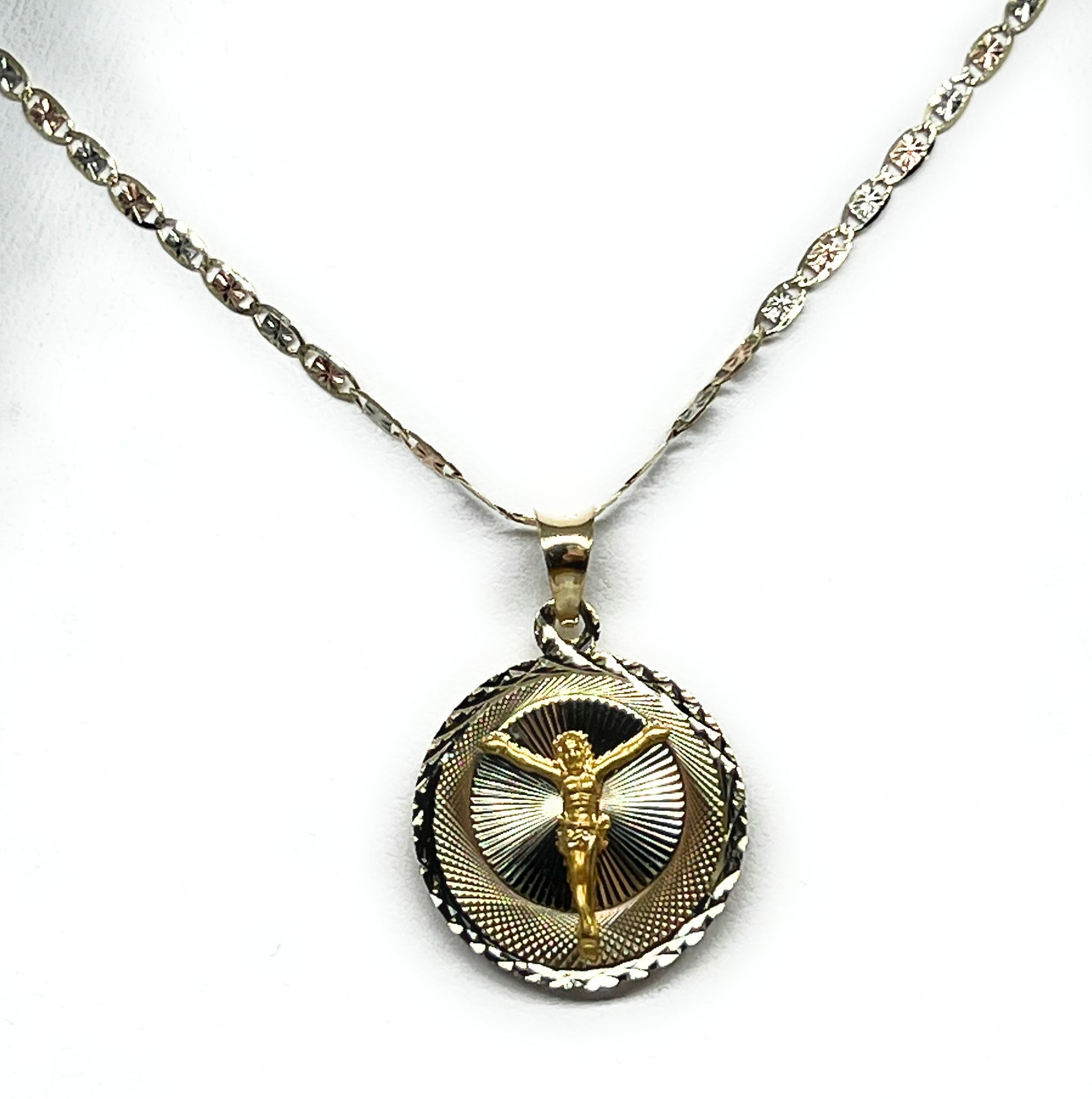 - Jesus Body Crucifix & Virgin Mary Double Sided pendant and chain and 10k solid gold guaranteed.