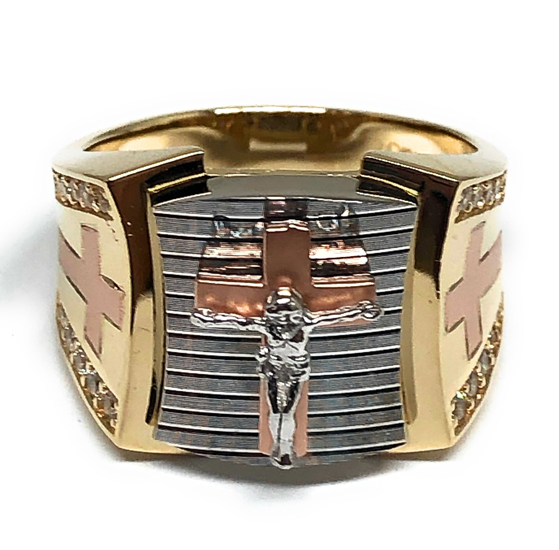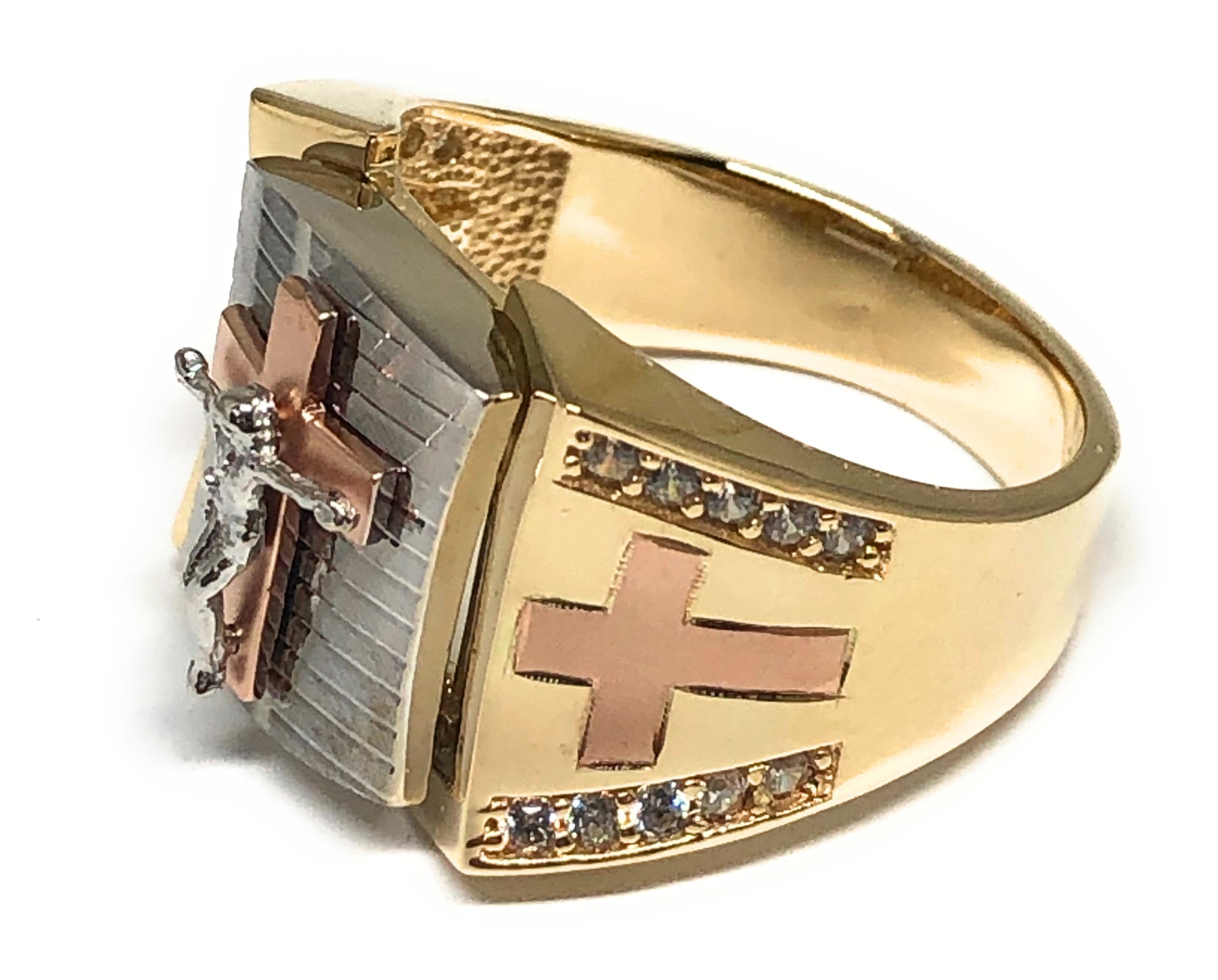 10k Solid Gold Tri-Color Jesus Crucifix Ring (9.1g) (FC 128)
