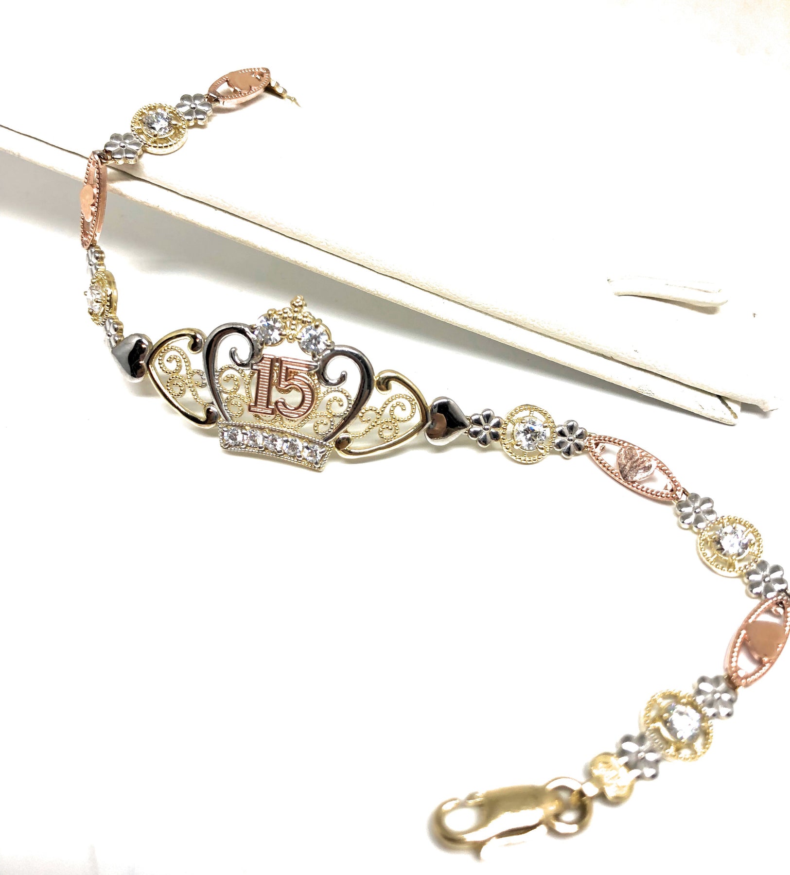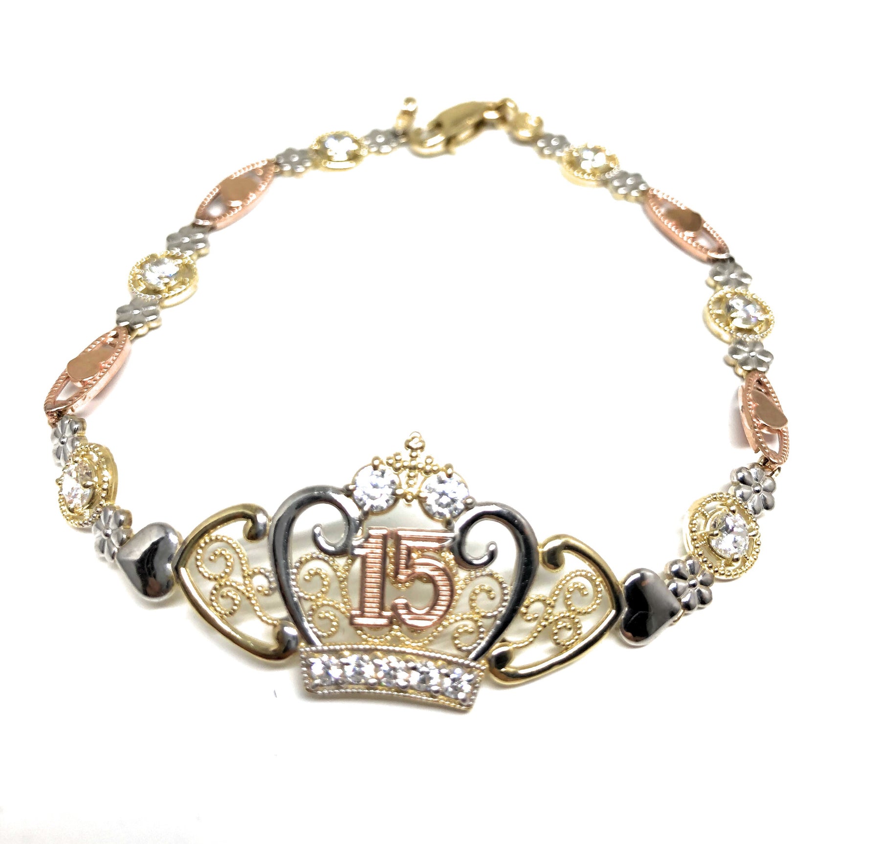 • Tri-Color 15 Anos Bracelet is 10k solid gold guaranteed.