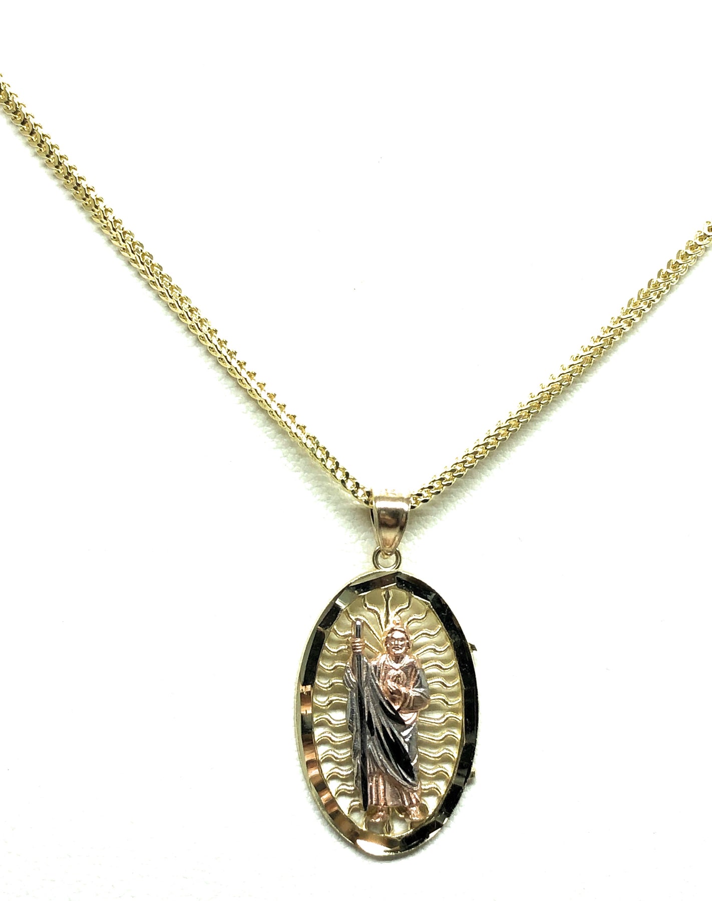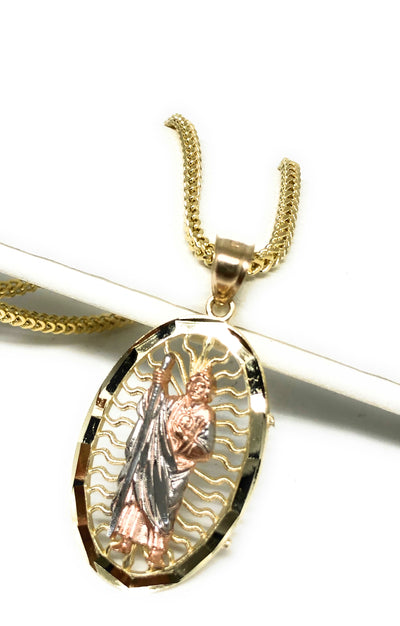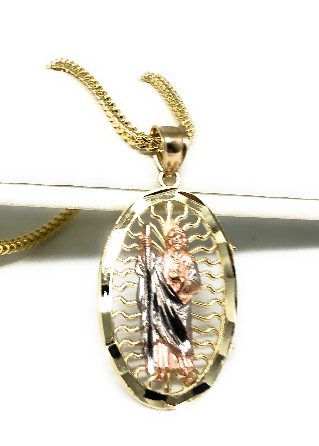 10k Solid Gold Tri-Color Saan Judas Saaint Jude Pendant Necklace with Chain Options