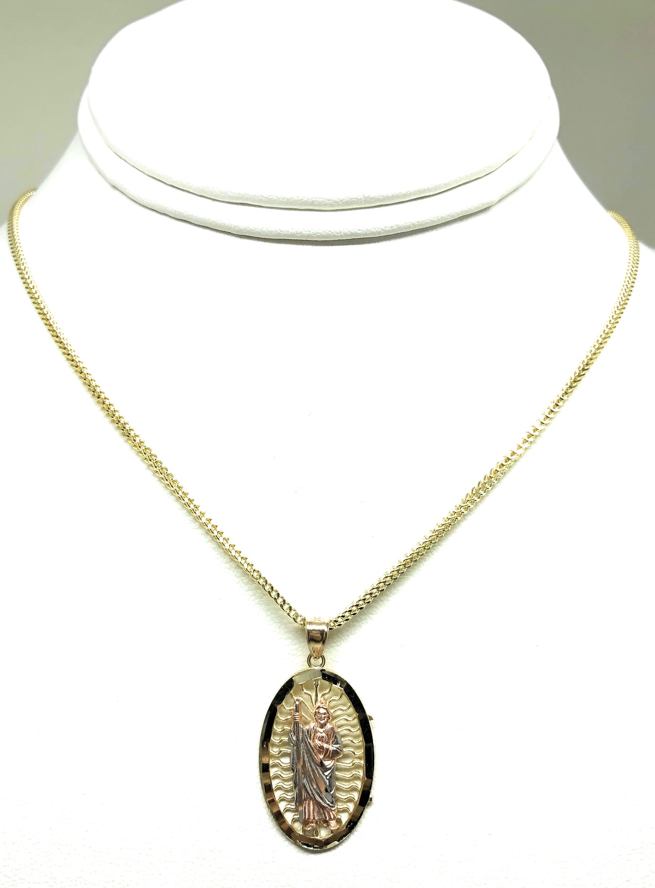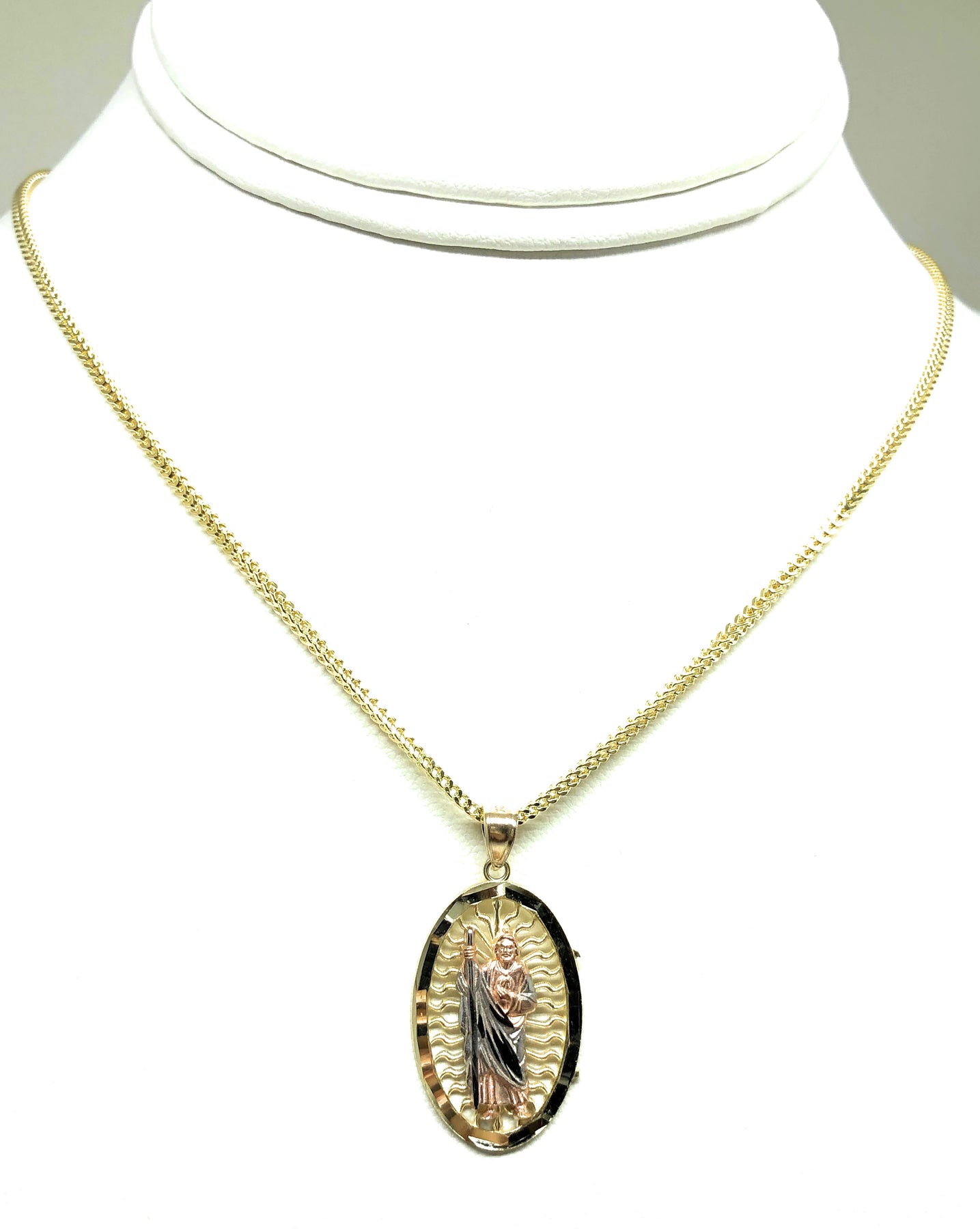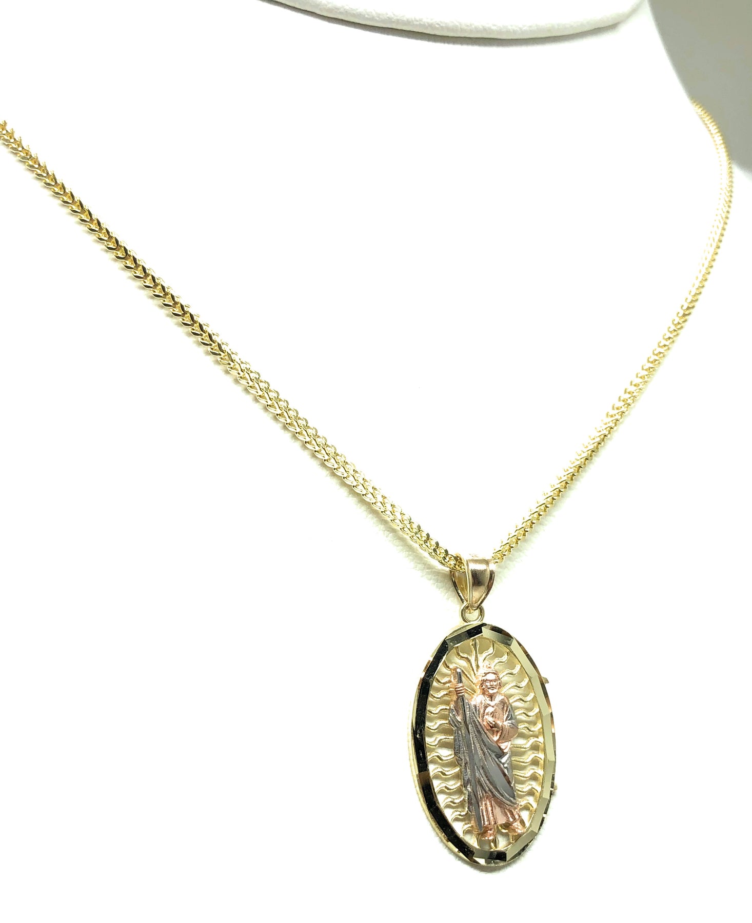 10k Solid Gold Tri-Color Saan Judas Saaint Jude Pendant Necklace with Chain Options