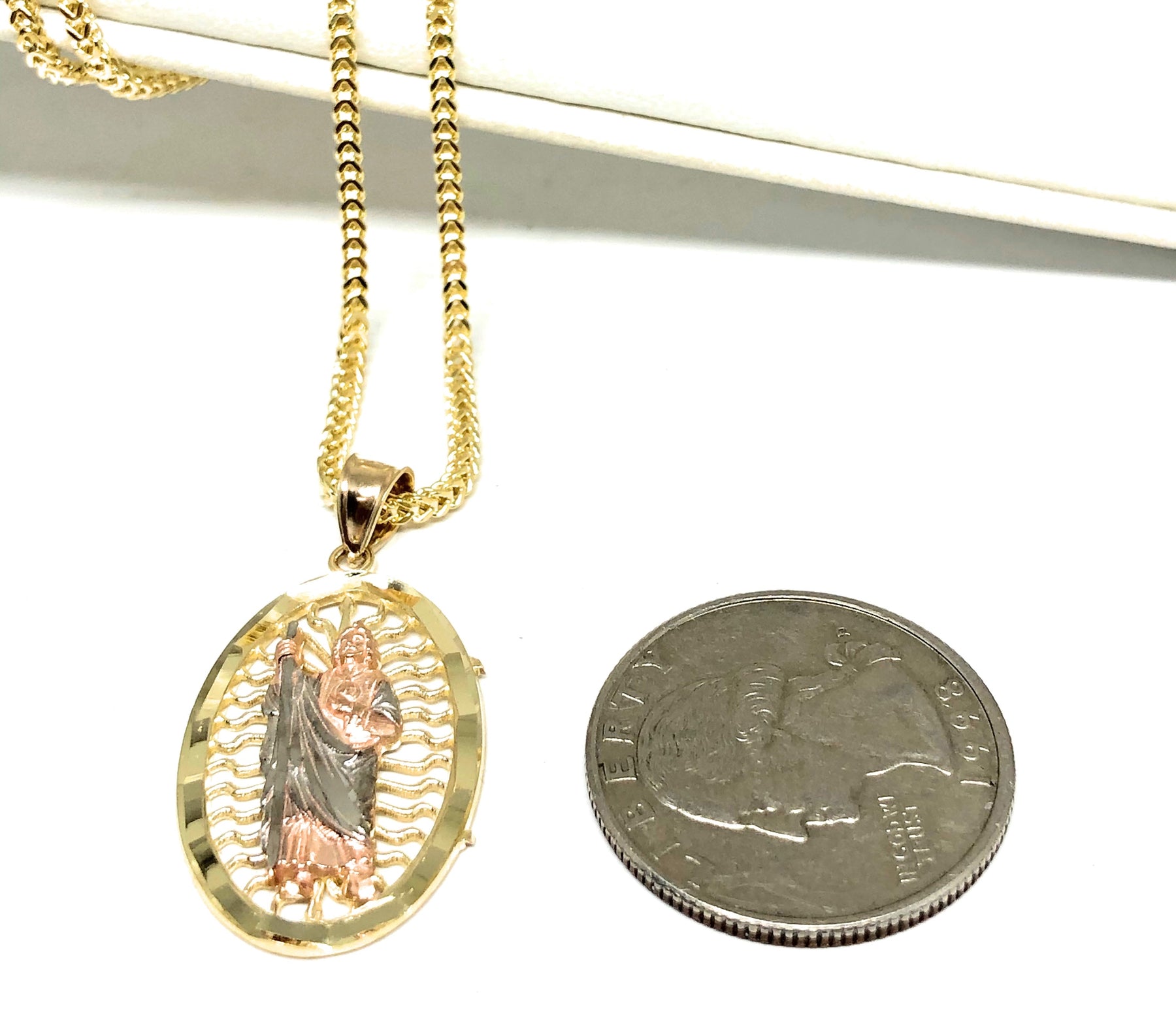 • San Judas Saint Jude Pendant with Chain are 10k solid gold guaranteed.