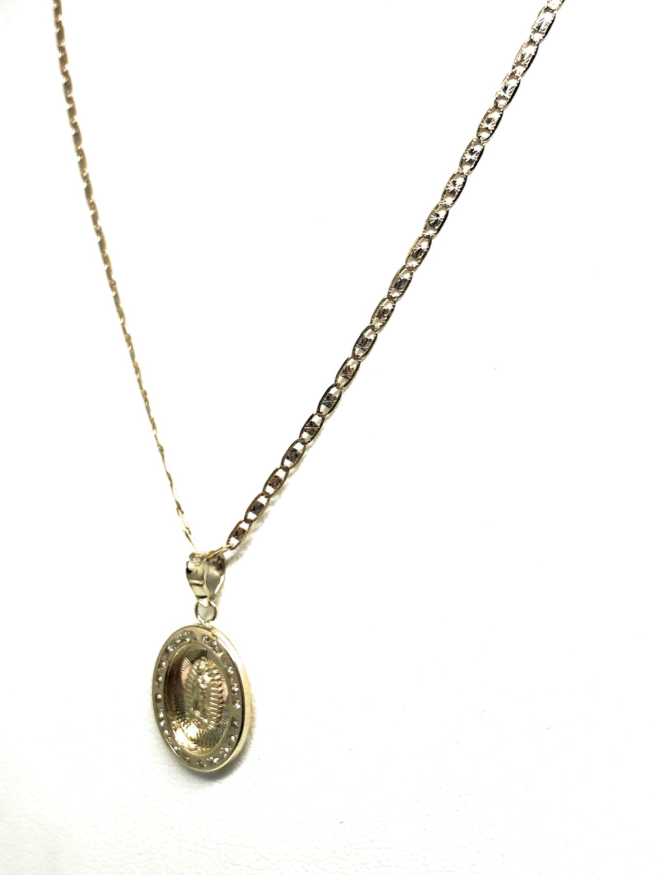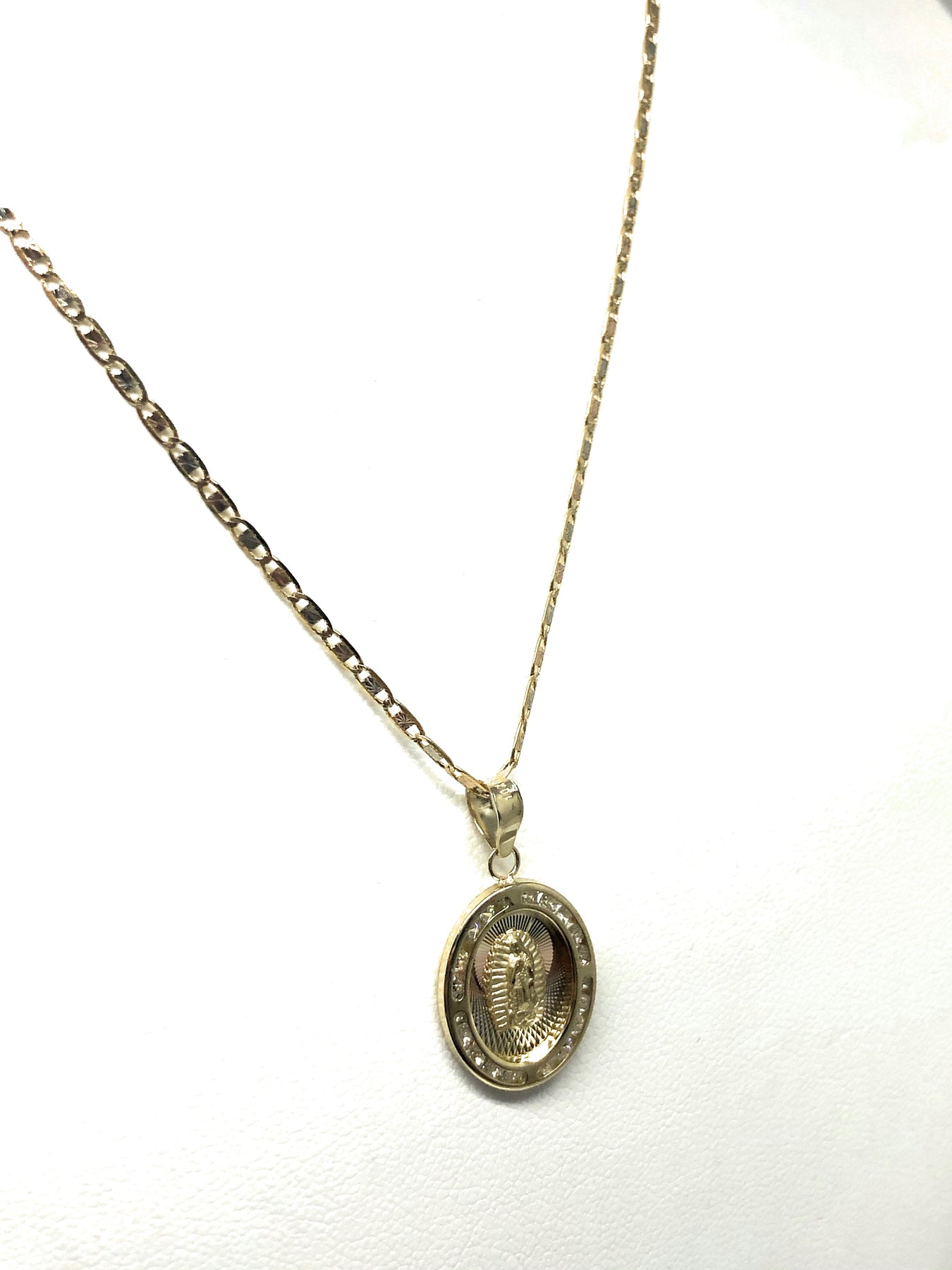 - Virgin Mary oval pendant and chain and 10k solid gold guaranteed.