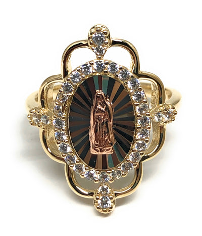 10k Solid Gold Tri-Color Virrgin Mary CZ Ring (FC 28)