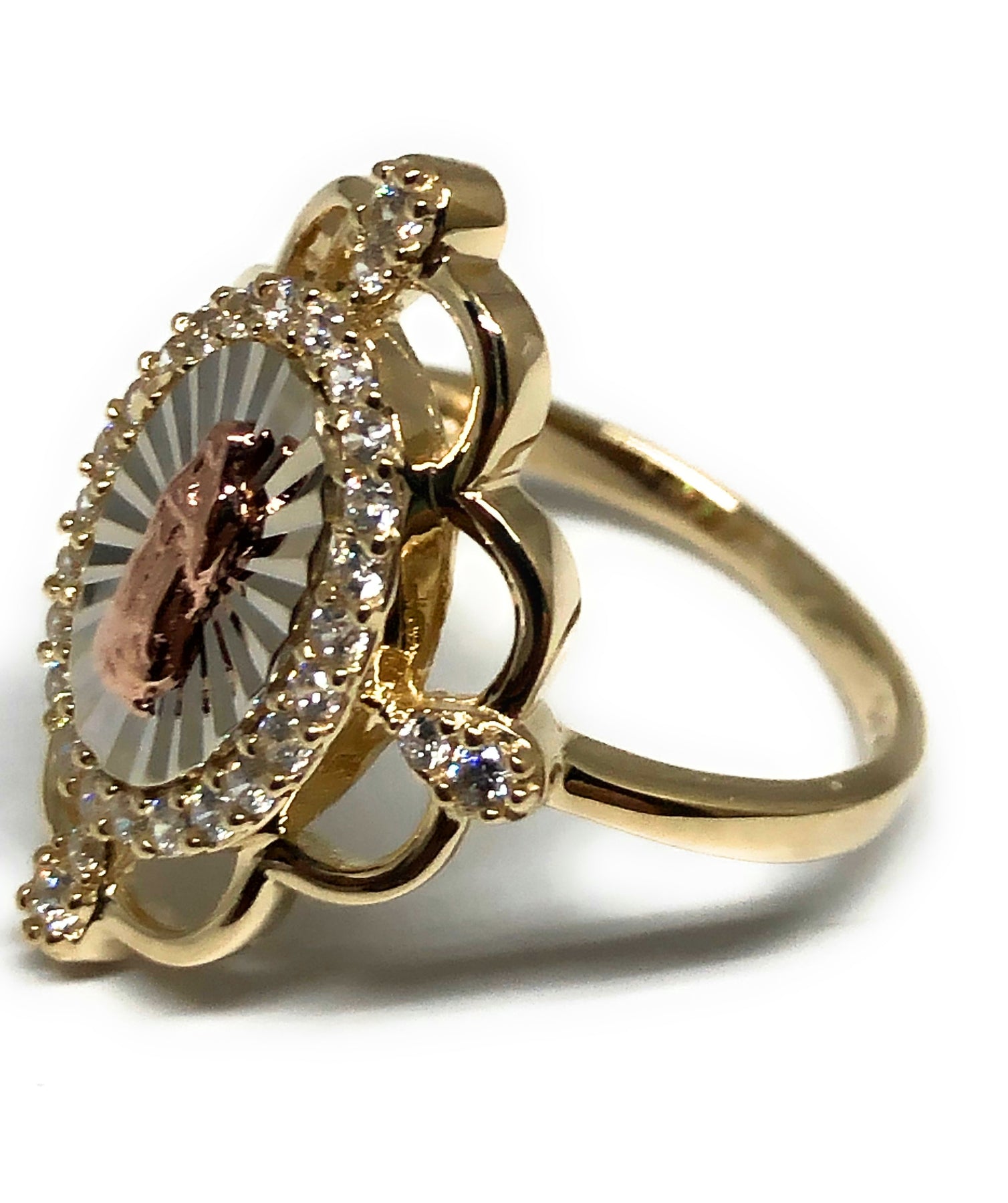 • Tri-Color Gold Virgin Mary CZ Ring 10k solid gold guaranteed.