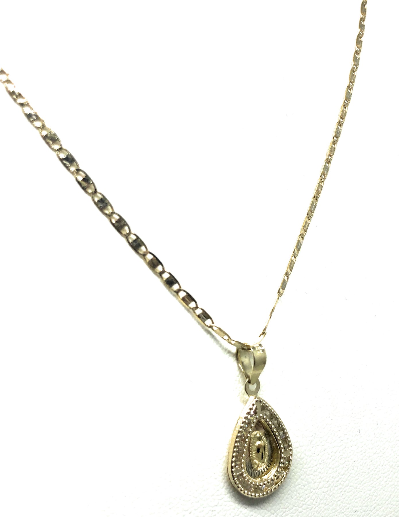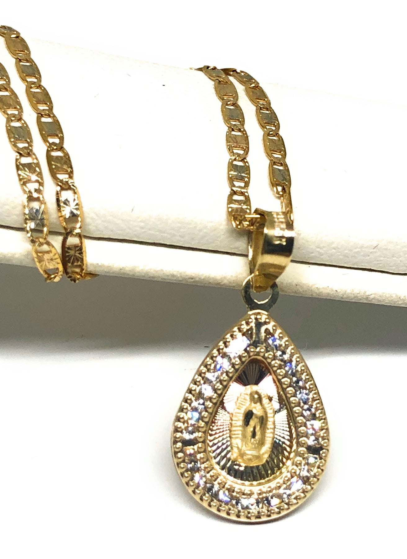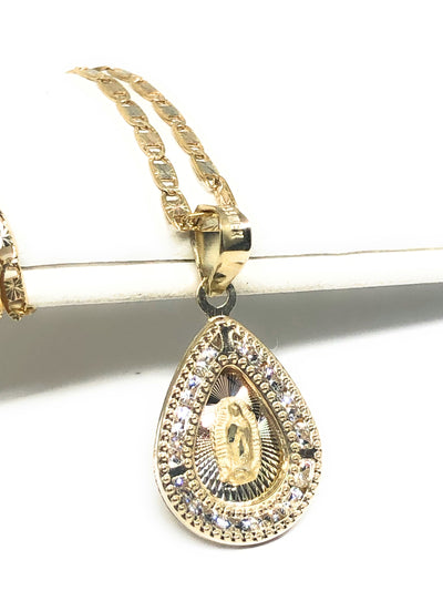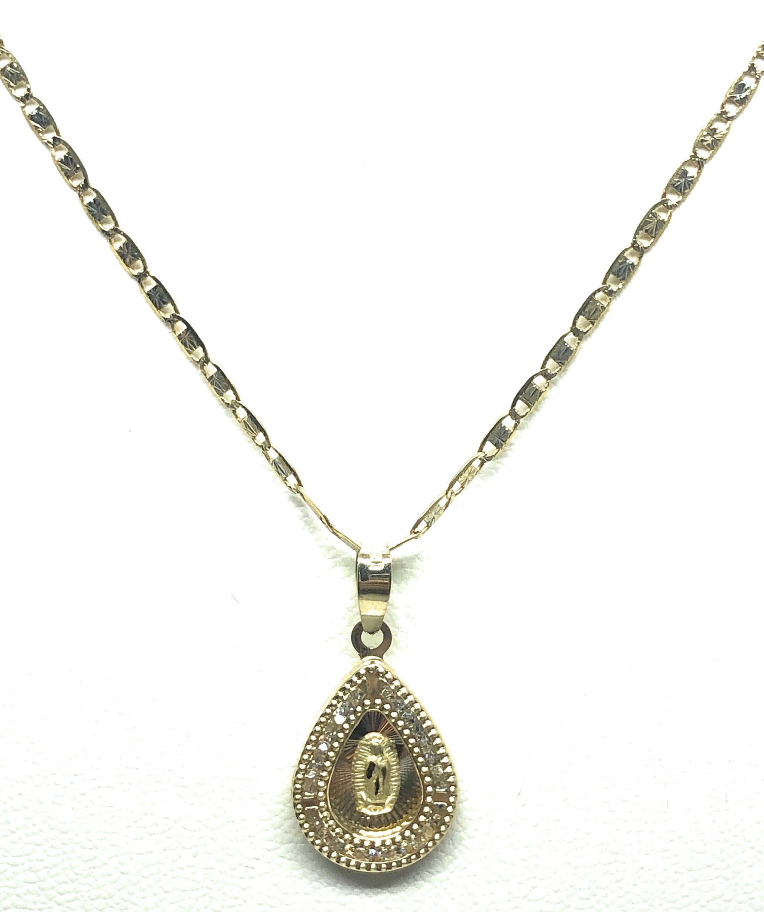 10k Solid Gold Tri-Color Virrgin Mary CZ Teardrop Pendant Necklace Virrgen Gaudalupe